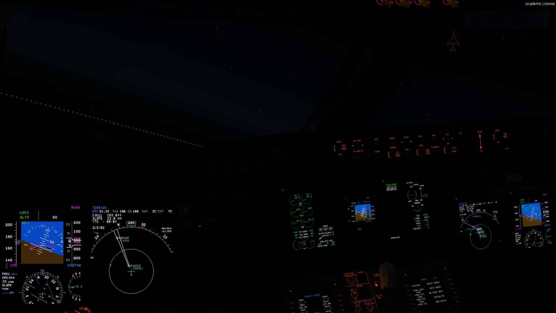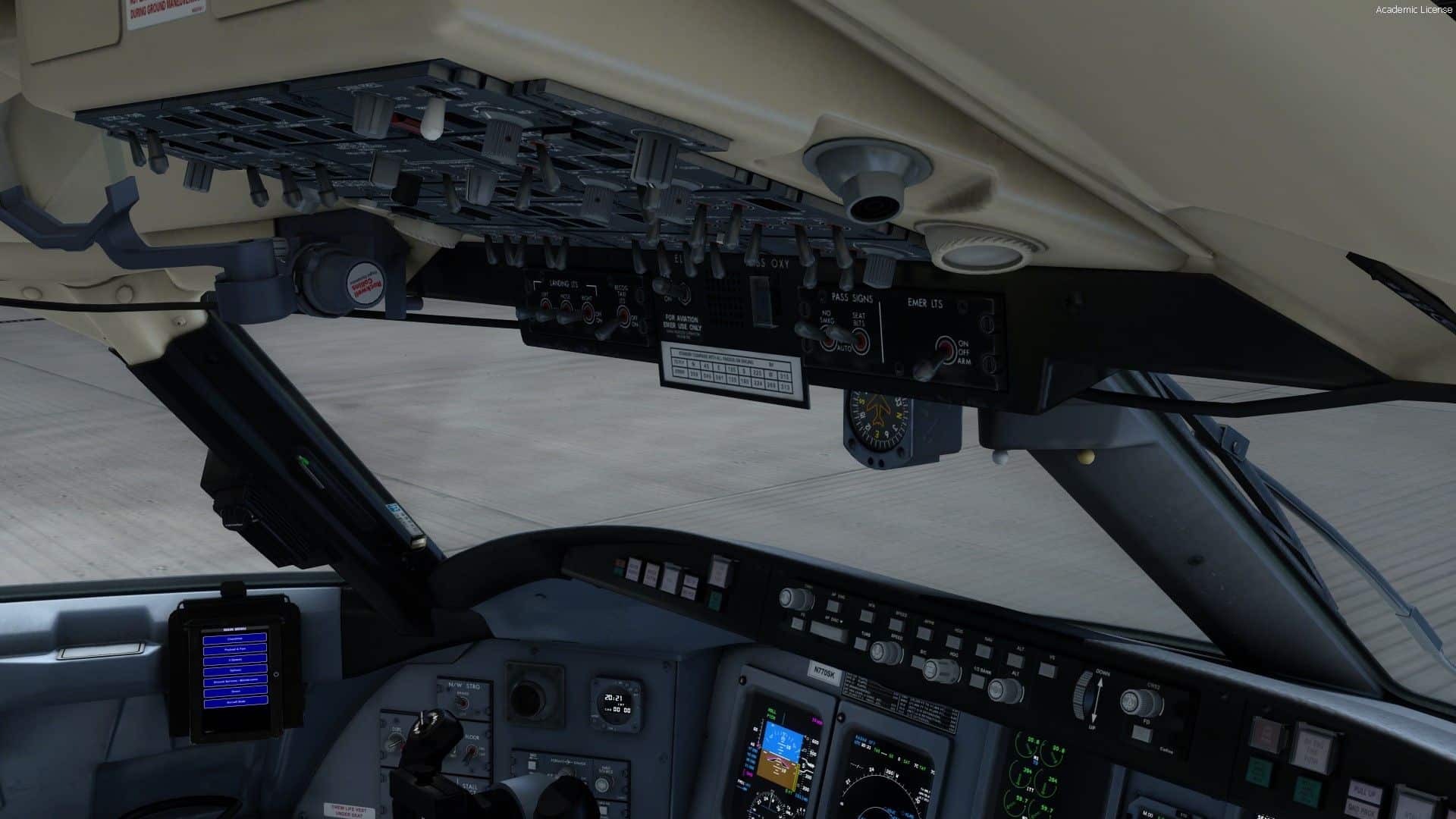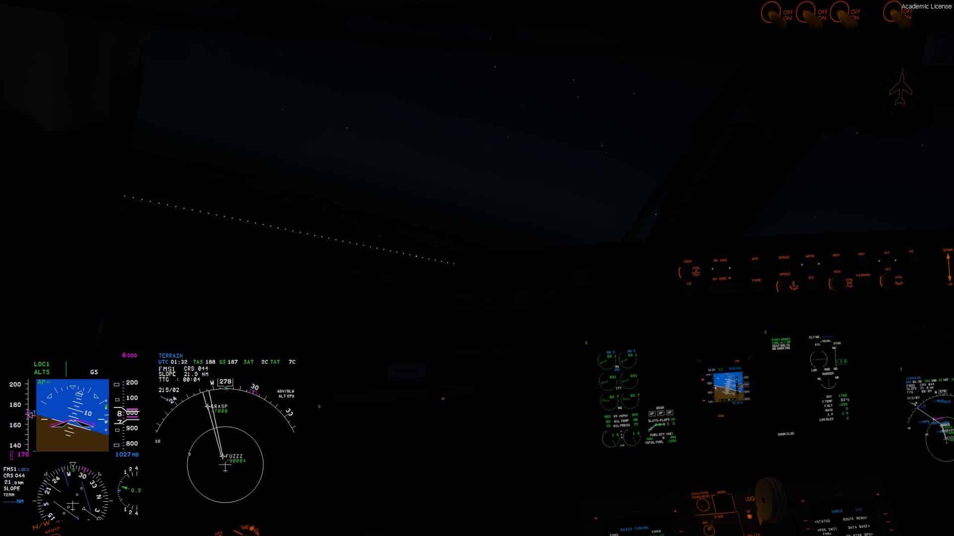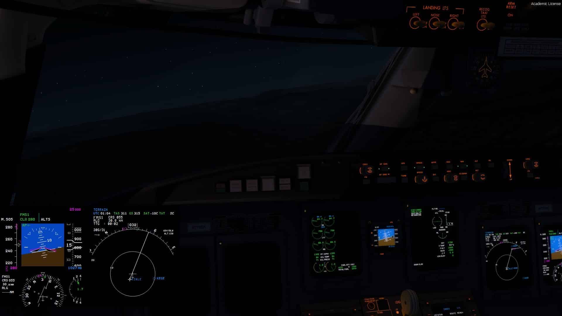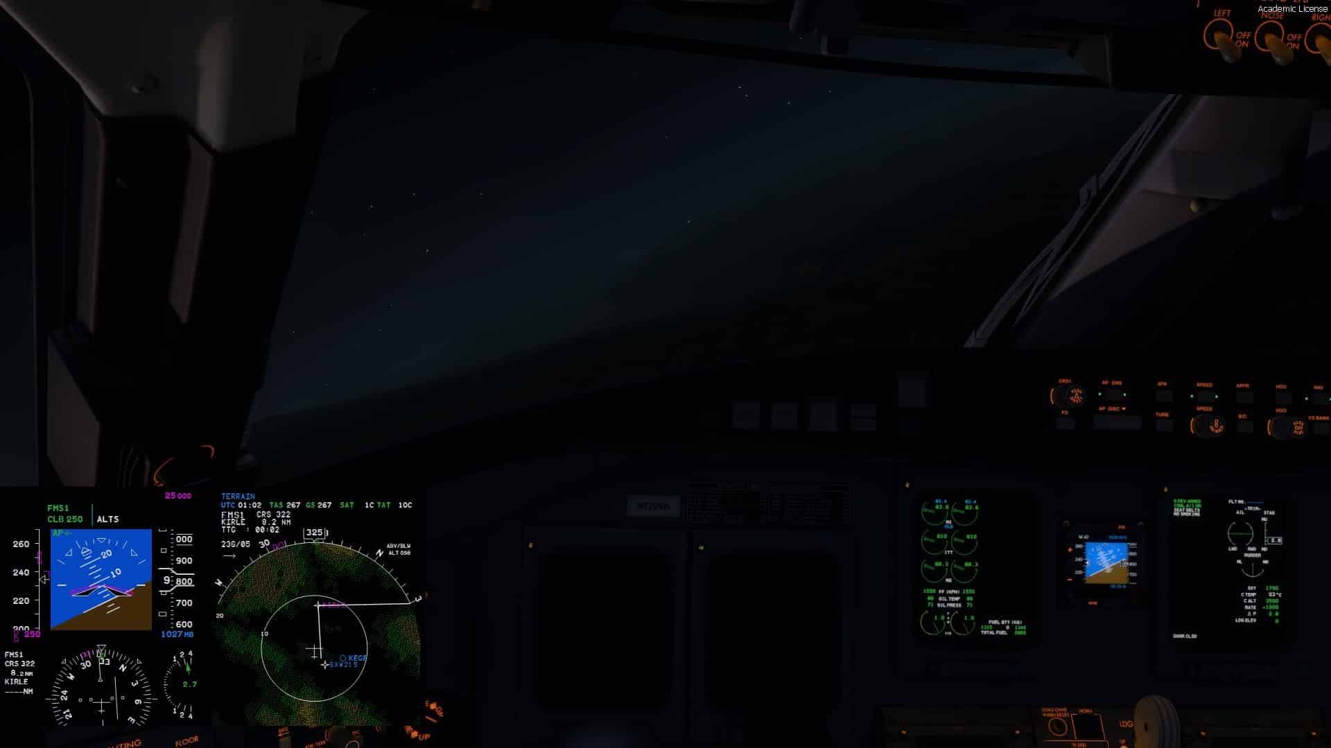 Die Innenbeleuchtung überzeugt sogar noch mehr. Durch stimmige Farben und gute Kontraste entsteht im dunklen Cockpit eine tolle Nacht-Atmosphäre. Alle Bedienelemente sind auch gut texturiert und verarbeitet, sodass man keine Probleme mit der Lesbarkeit hat. Der Workflow wird in keiner Weise gestört. Alle Lampen und Lichtquellen im Cockpit wurden von Aerosoft funktional umgesetzt. Verschiedene Dome-Lights und Leseichter sind ebenso einschaltbar, wie die Beleuchtung der Sicherungen hinter dem Sitz. Einziger Minuspunkt ist die fehlende Möglichkeit der Helligkeitsanpassung. Zwar sind die Lichter wie im Original über Drehschalter zu bedienen, allerdings gibt es nur ein An, oder Aus. Dimmen kann man das Licht nicht. Trotzdem überzeugt das CRJ-Cockpit des Nachts voll und ganz. Es sieht gut aus, schafft Atmosphäre und ist weiterhin gut zu bedienen. Da machen Nachtflüge Spaß!
