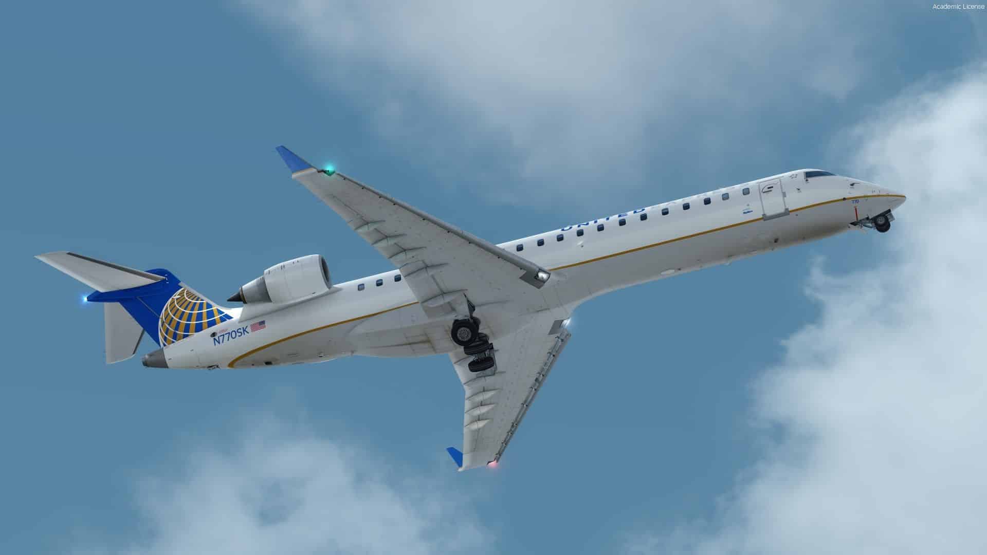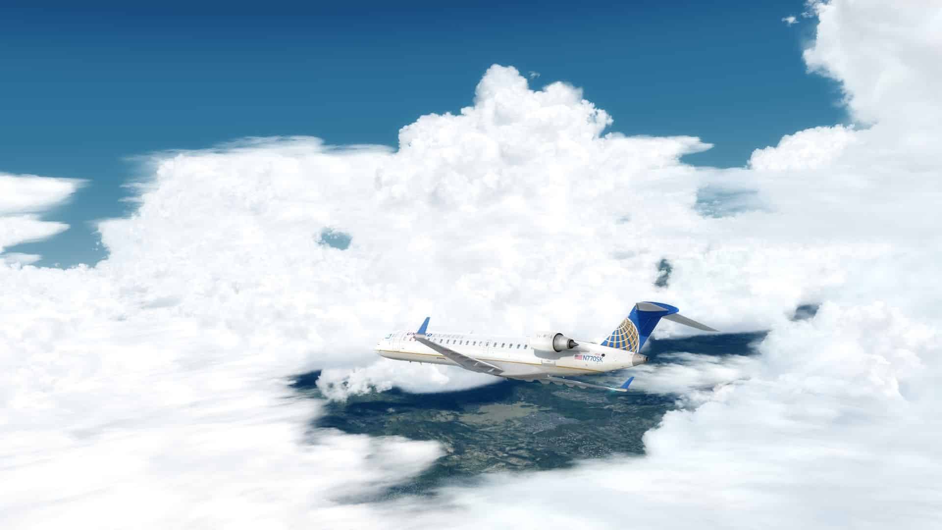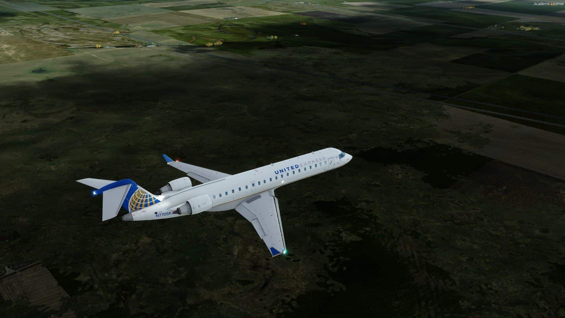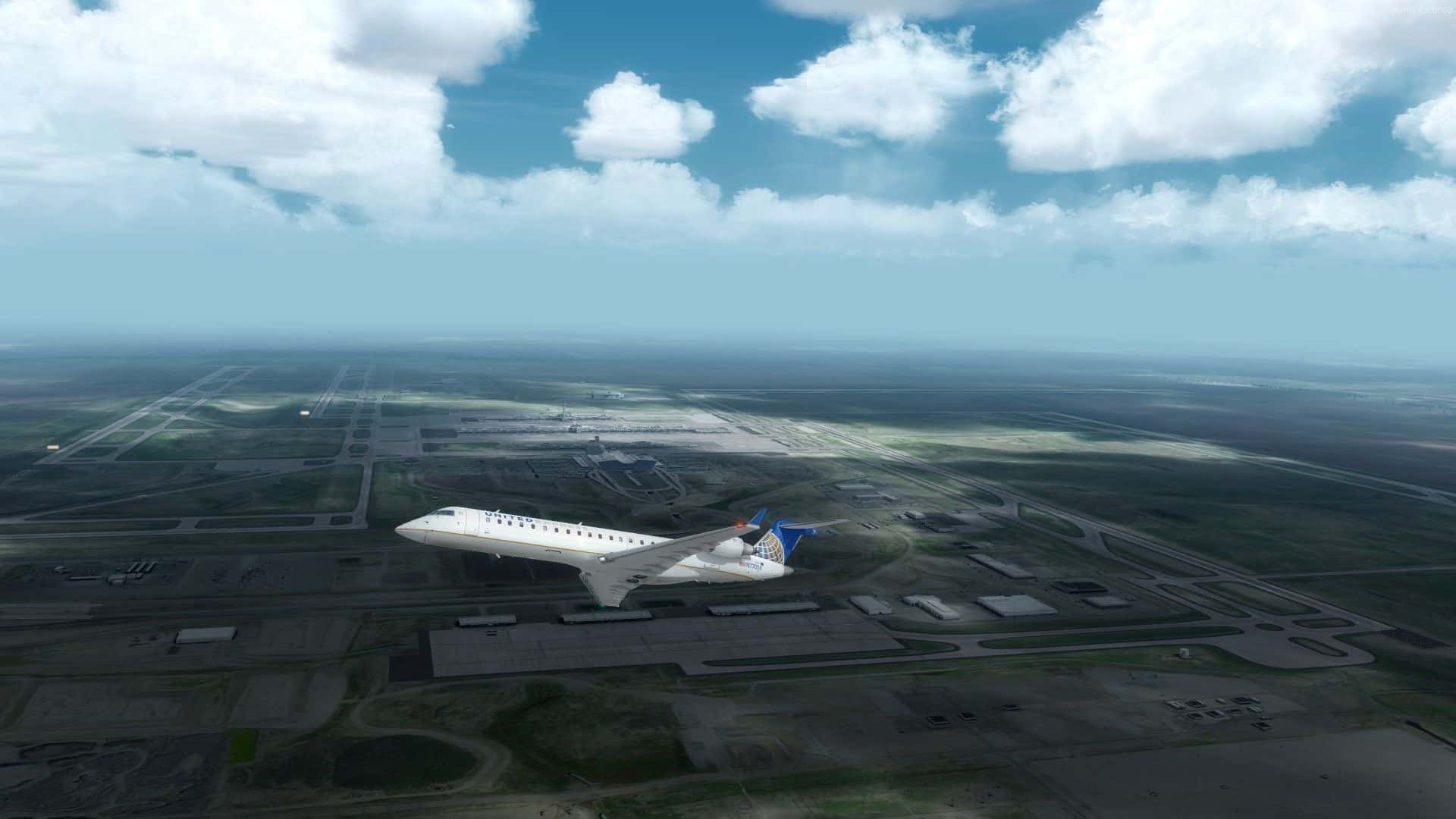 Der Start klappt gut und es geht flott in den Steigflug. Die beiden CF34 Triebwerke beschleunigen die kaum beladene Maschine ordentlich, sodass man als bald Maneuvering Speed erreicht ist und der Schub auf Manual gesetzt wird. Bereits auf den ersten Meilen macht sich die hohe Empfindlichkeit des CRJs bemerkbar. Das Flugzeug reagiert sehr direkt auf Steuereingaben und will bedacht geflogen werden. Das trifft auch auf die Trimmung zu. Da der Regionaljet über kein Fly-by-wire verfügt, muss das Flugzeug kontinuierlich getrimmt werden. Bei allen Eingaben, die ein kurzes Antippen der Trimmtaste meines Setups übersteigen, springt die Trimmung um mehrere Einheiten. Hier ist also Feinmotorik gefragt um die Maschine zu stabilisieren. Hat man sich an diesen Umstand jedoch gewöhnt, lässt sich der CRJ gut kontrollieren. Auch in Kurven verhält sich das Flugzeug schlüssig und lässt sich gut manövrieren. Generell lässt sich sagen, dass sich die (kleine) Größe des CRJs im Vergleich zu anderen Airlinern wie A320 oder gar Boeing 777 natürlich schnell bei Steuereingaben bemerkbar macht. Die Maschine reagiert schnell und ist sehr agil. Träge oder verzögerte Bewegungen kommen nicht vor. Im Gegenteil, man sollte auf der Hut sein und das Flugzeug nicht übersteuern.