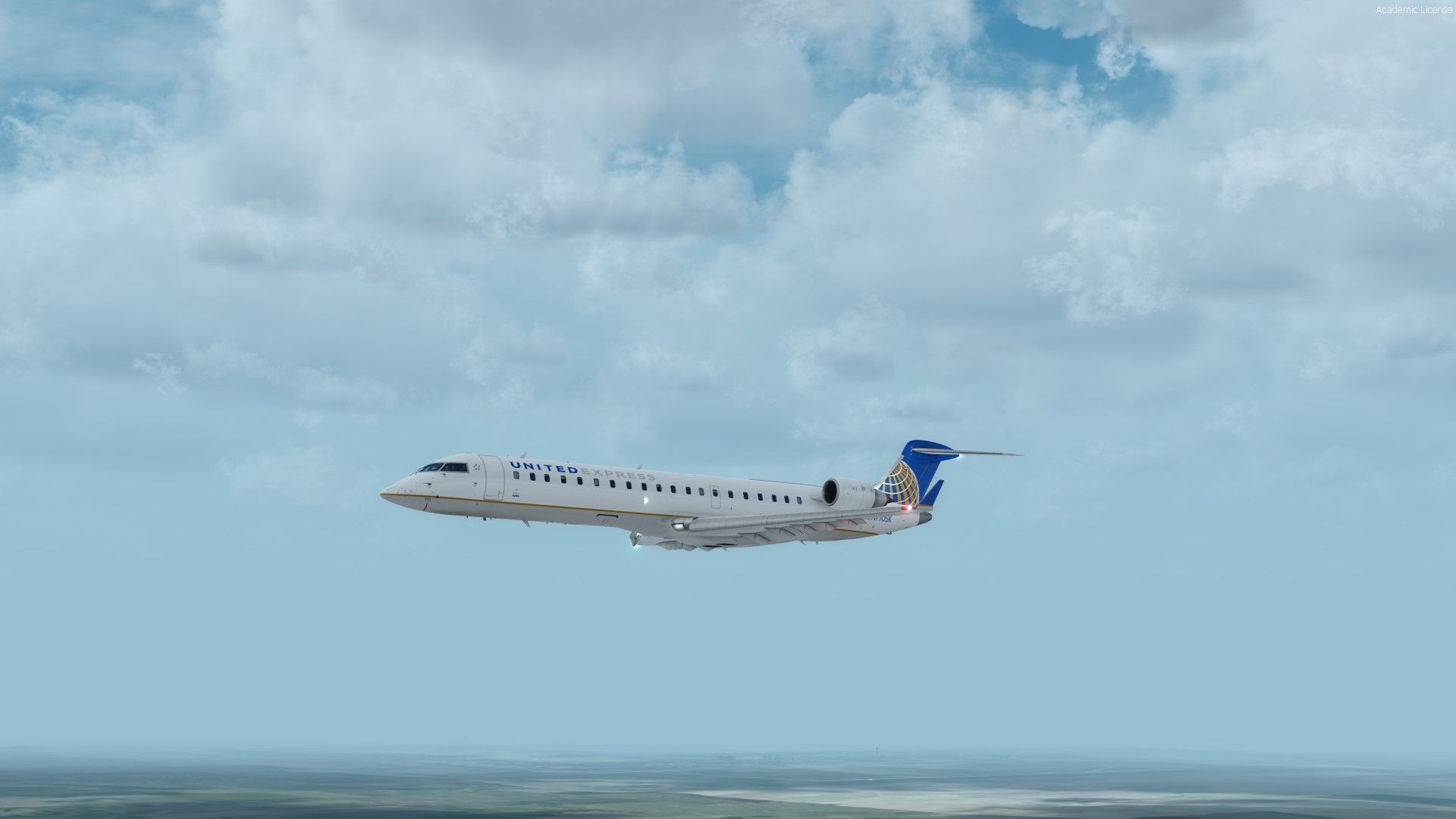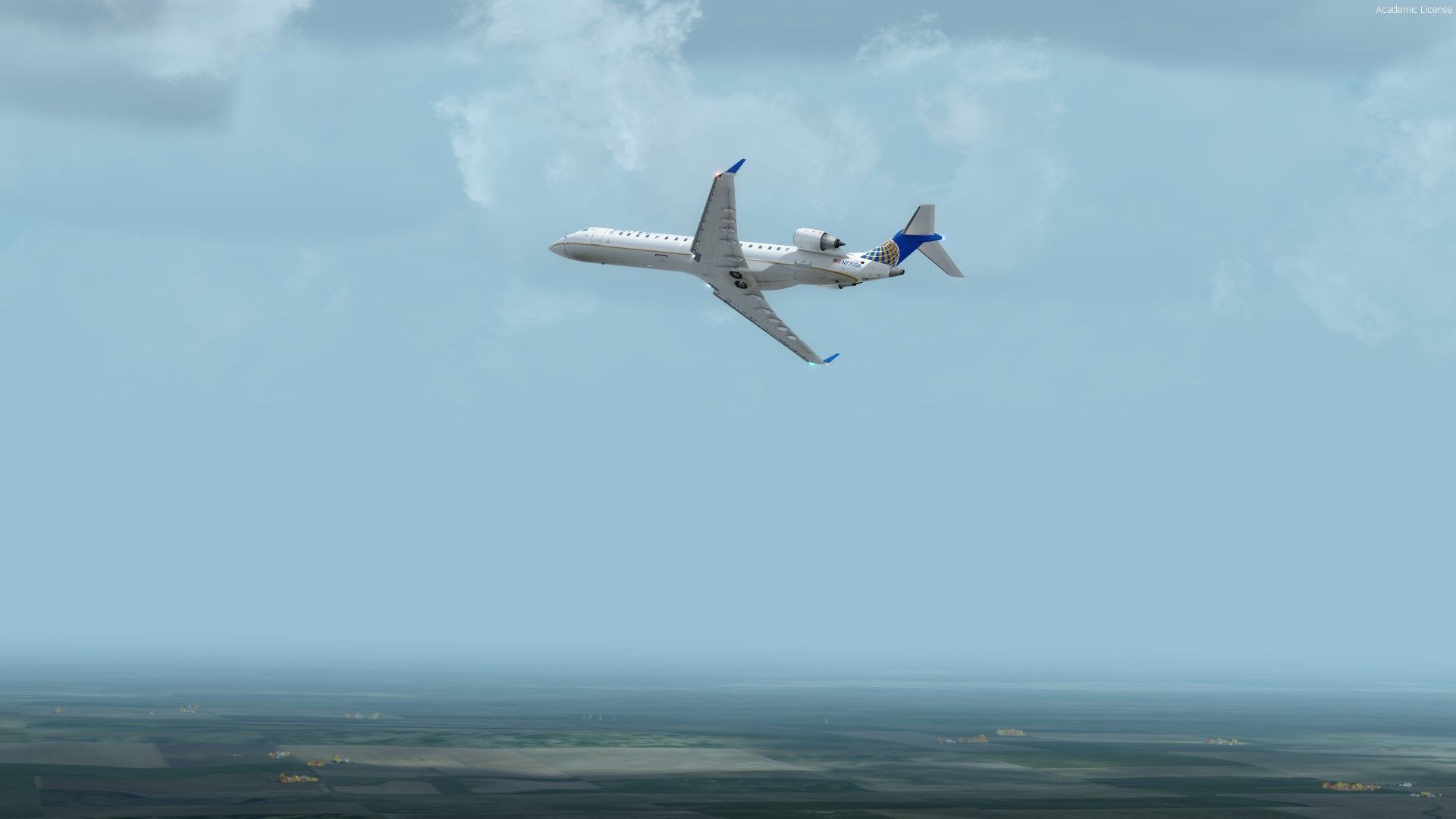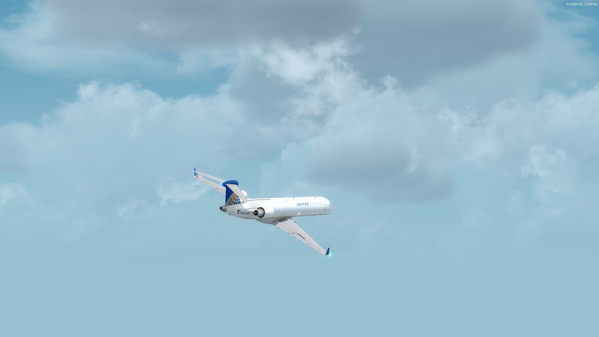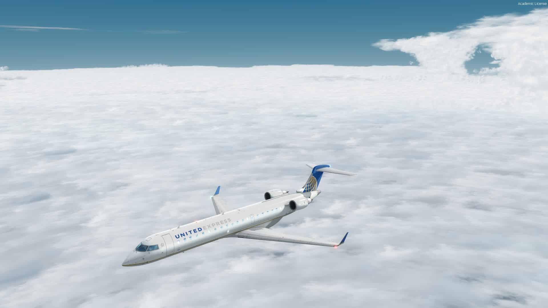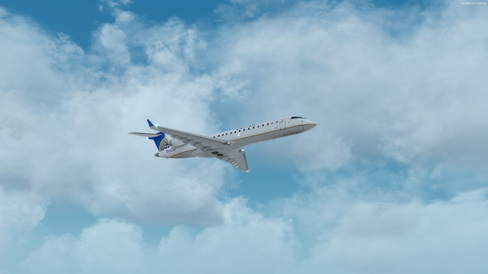 Der Start klappt gut und es geht flott in den Steigflug. Die beiden CF34 Triebwerke beschleunigen die kaum beladene Maschine ordentlich, sodass man als bald Maneuvering Speed erreicht ist und der Schub auf Manual gesetzt wird. Bereits auf den ersten Meilen macht sich die hohe Empfindlichkeit des CRJs bemerkbar. Das Flugzeug reagiert sehr direkt auf Steuereingaben und will bedacht geflogen werden. Das trifft auch auf die Trimmung zu. Da der Regionaljet über kein Fly-by-wire verfügt, muss das Flugzeug kontinuierlich getrimmt werden. Bei allen Eingaben, die ein kurzes Antippen der Trimmtaste meines Setups übersteigen, springt die Trimmung um mehrere Einheiten. Hier ist also Feinmotorik gefragt um die Maschine zu stabilisieren. Hat man sich an diesen Umstand jedoch gewöhnt, lässt sich der CRJ gut kontrollieren. Auch in Kurven verhält sich das Flugzeug schlüssig und lässt sich gut manövrieren. Generell lässt sich sagen, dass sich die (kleine) Größe des CRJs im Vergleich zu anderen Airlinern wie A320 oder gar Boeing 777 natürlich schnell bei Steuereingaben bemerkbar macht. Die Maschine reagiert schnell und ist sehr agil. Träge oder verzögerte Bewegungen kommen nicht vor. Im Gegenteil, man sollte auf der Hut sein und das Flugzeug nicht übersteuern.