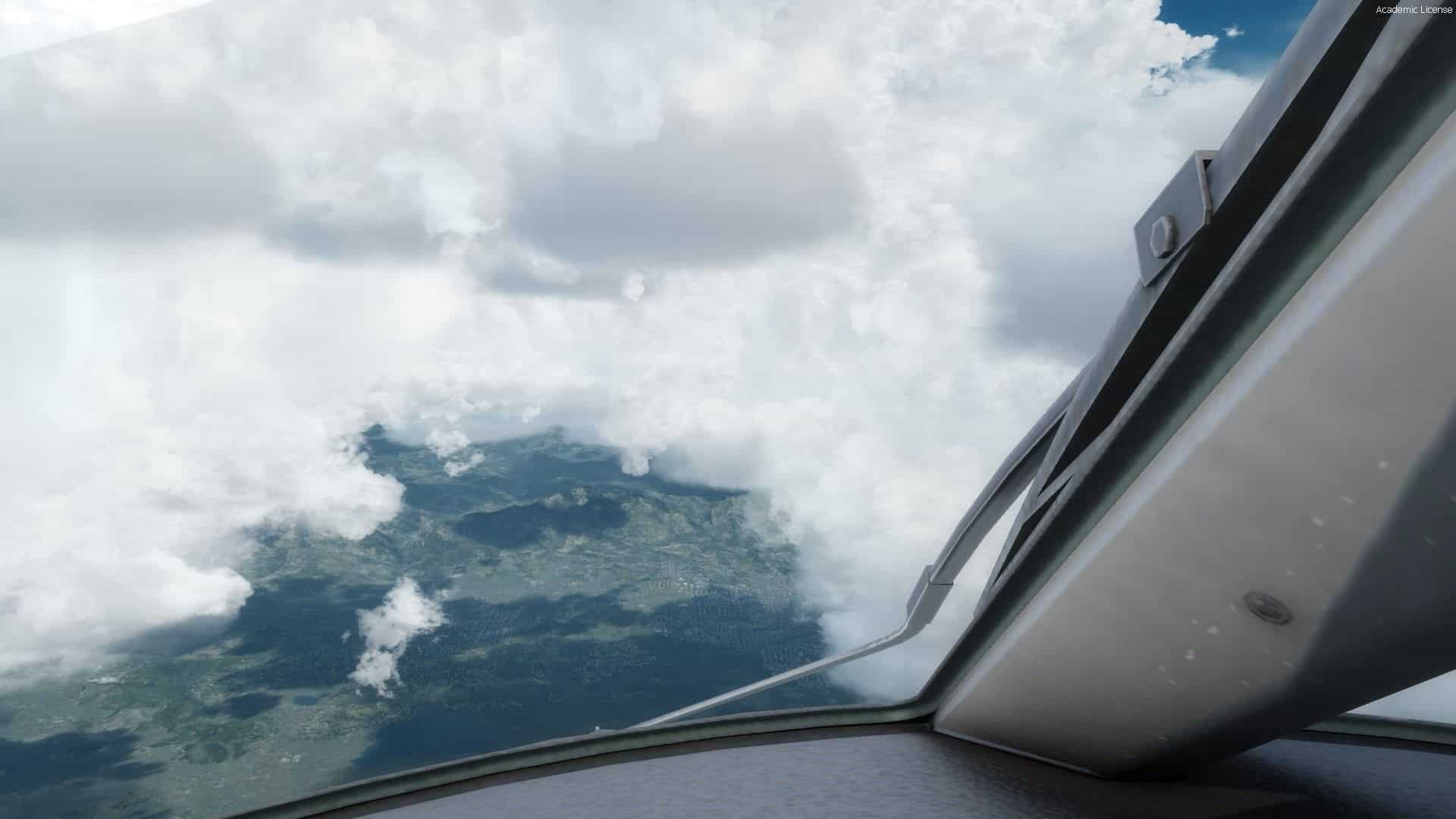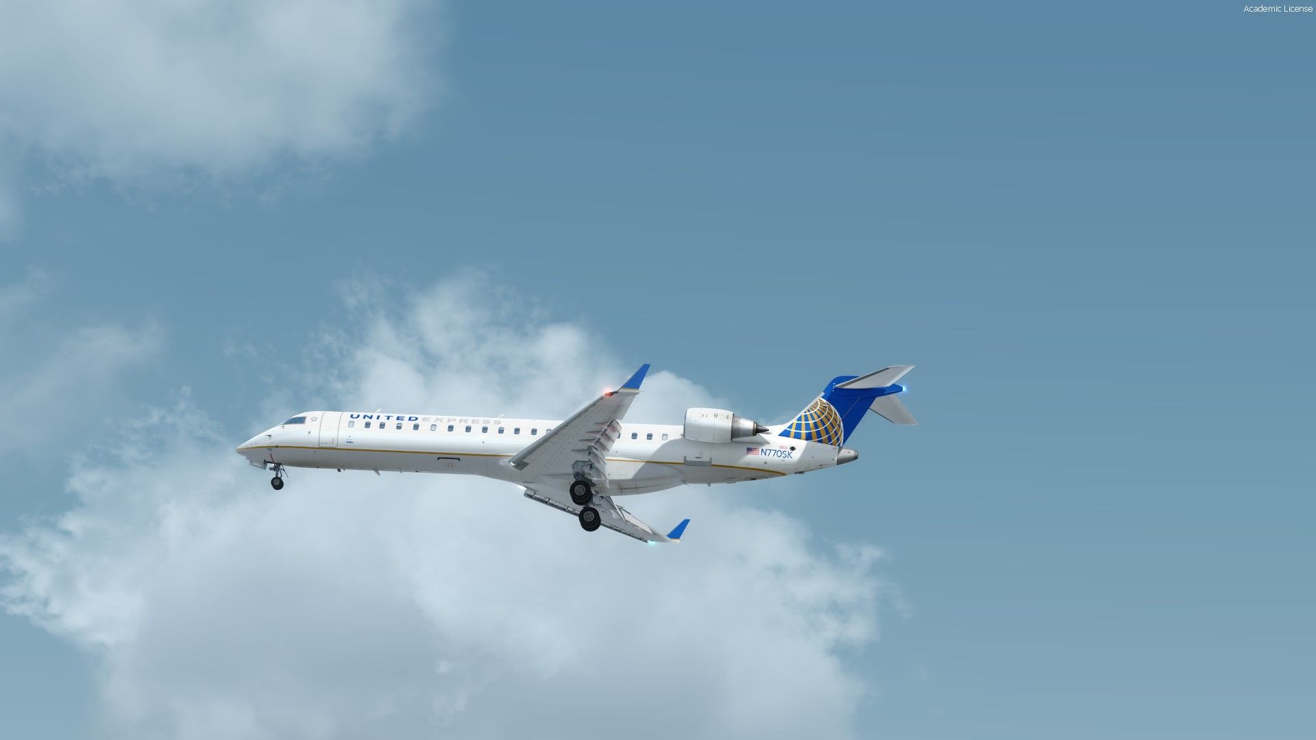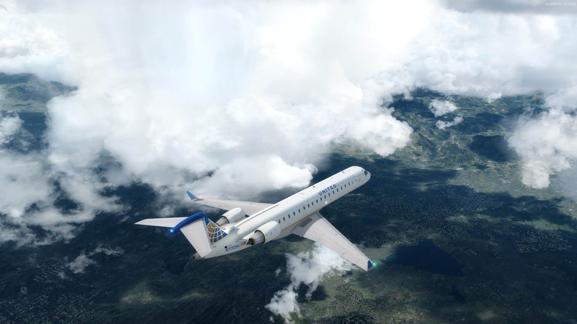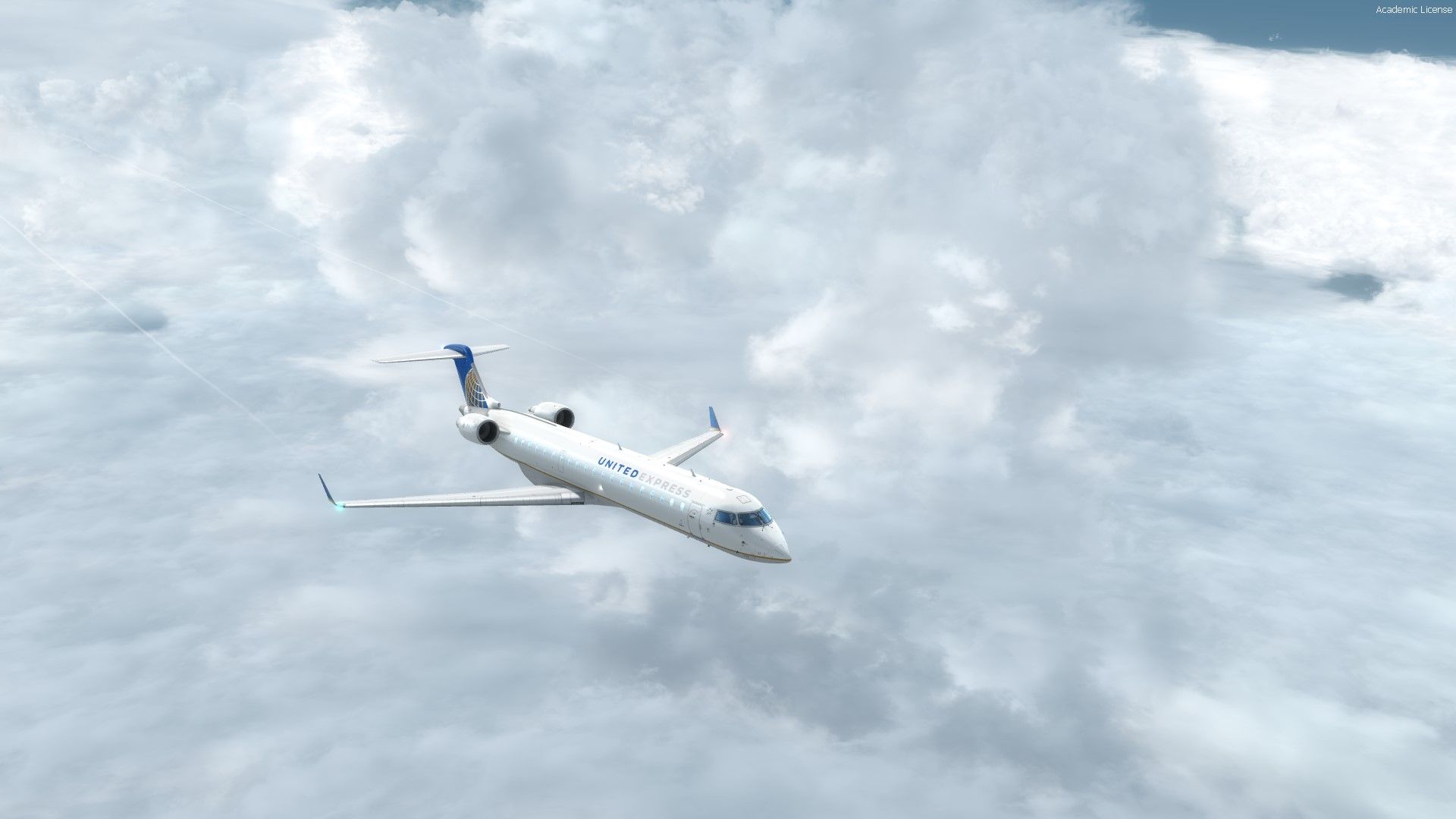 Der Start klappt gut und es geht flott in den Steigflug. Die beiden CF34 Triebwerke beschleunigen die kaum beladene Maschine ordentlich, sodass man als bald Maneuvering Speed erreicht ist und der Schub auf Manual gesetzt wird. Bereits auf den ersten Meilen macht sich die hohe Empfindlichkeit des CRJs bemerkbar. Das Flugzeug reagiert sehr direkt auf Steuereingaben und will bedacht geflogen werden. Das trifft auch auf die Trimmung zu. Da der Regionaljet über kein Fly-by-wire verfügt, muss das Flugzeug kontinuierlich getrimmt werden. Bei allen Eingaben, die ein kurzes Antippen der Trimmtaste meines Setups übersteigen, springt die Trimmung um mehrere Einheiten. Hier ist also Feinmotorik gefragt um die Maschine zu stabilisieren. Hat man sich an diesen Umstand jedoch gewöhnt, lässt sich der CRJ gut kontrollieren. Auch in Kurven verhält sich das Flugzeug schlüssig und lässt sich gut manövrieren. Generell lässt sich sagen, dass sich die (kleine) Größe des CRJs im Vergleich zu anderen Airlinern wie A320 oder gar Boeing 777 natürlich schnell bei Steuereingaben bemerkbar macht. Die Maschine reagiert schnell und ist sehr agil. Träge oder verzögerte Bewegungen kommen nicht vor. Im Gegenteil, man sollte auf der Hut sein und das Flugzeug nicht übersteuern.