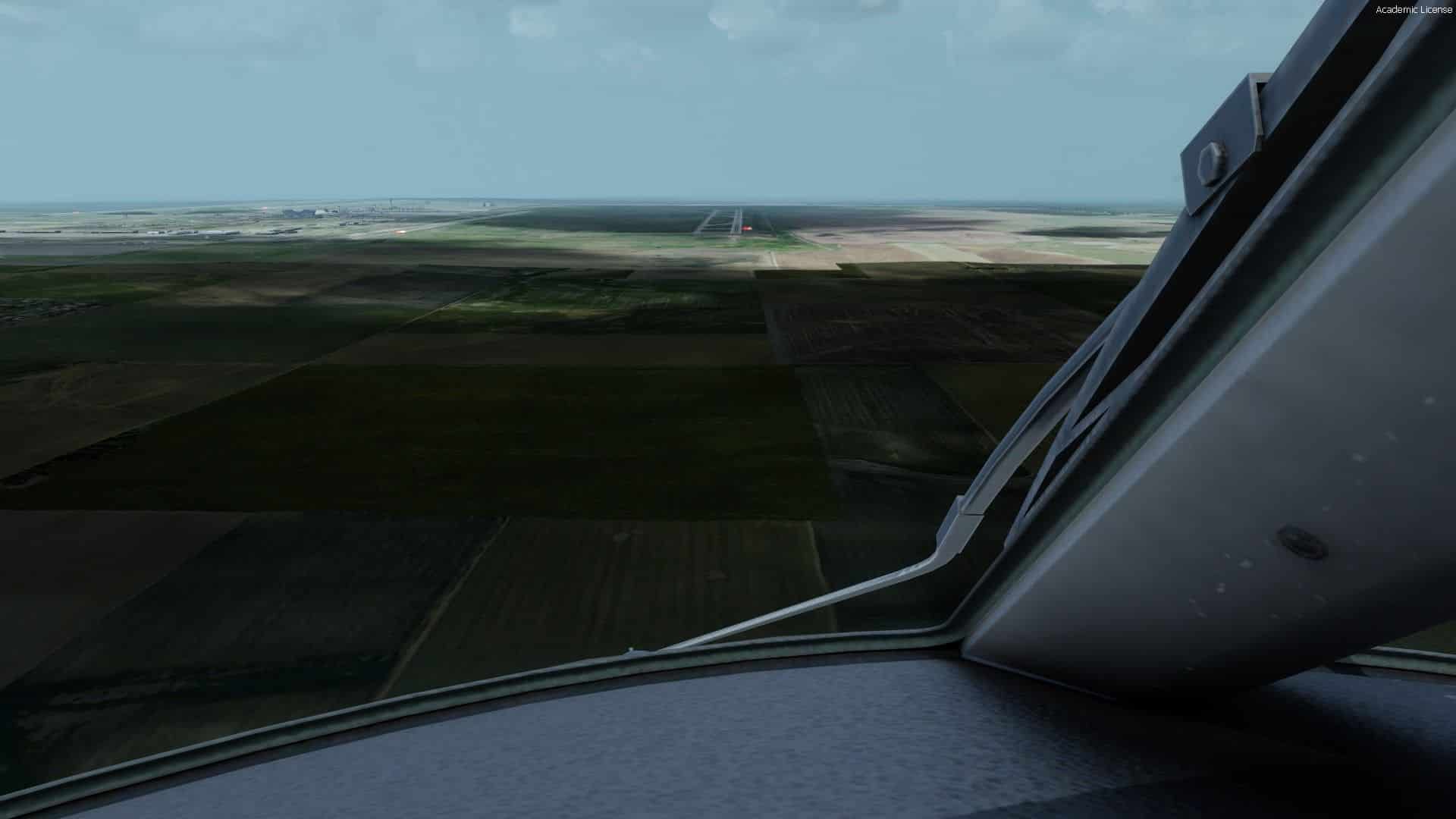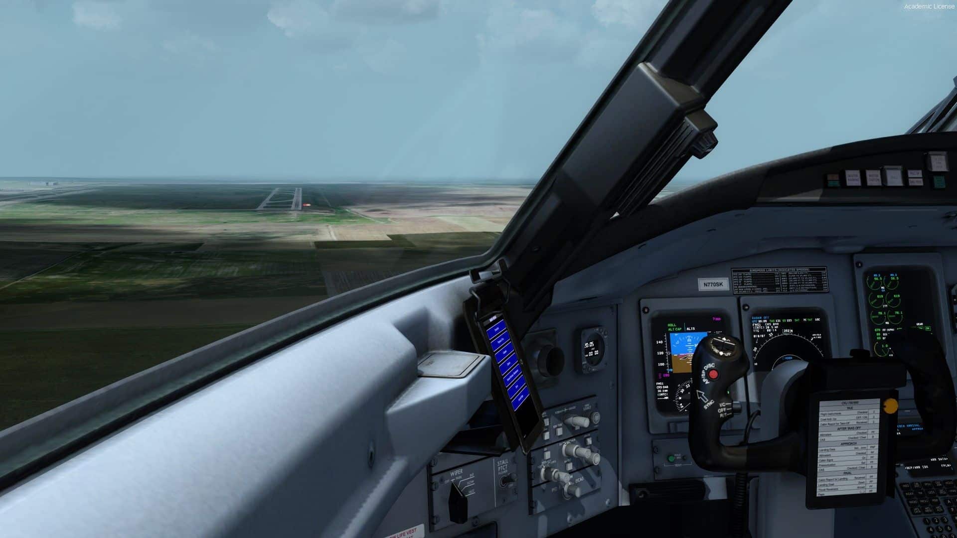 Das Verlangsamen und Sinken für den ersten Touch and Go funktioniert gut. Spoiler brauche ich nicht, die Reduzierung des Schubs langt um den CRJ auf Approach Speed zu bringen. Die genaue Geschwindigkeit zu erkennen, ist jedoch gar nicht so einfach. Mir persönlich sind PFD und Navigationsdisplay mit ihrer Fülle an Informationen auf meinem 24-Zoll Monitor zu klein. Das liegt aber nicht an Aerosoft; es ist ganz einfach dem kleinen Bombardier-Cockpit geschuldet, das eben nur Platz für kleine Bildschirme hat, die viele Informationen ausgeben müssen. In der Dash habe ich regelmäßig das gleiche Problem und nutze ganz einfach Pop-Ups. Das geht im CRJ auch.