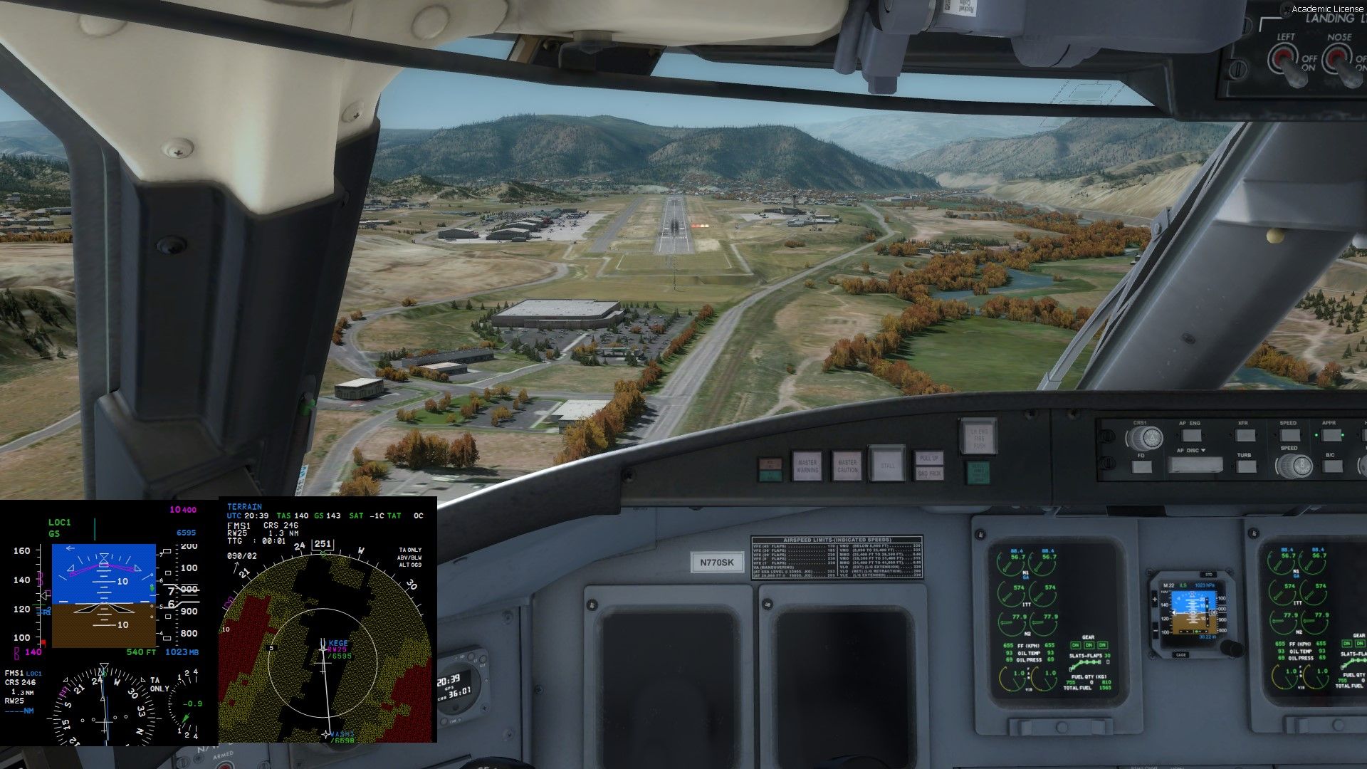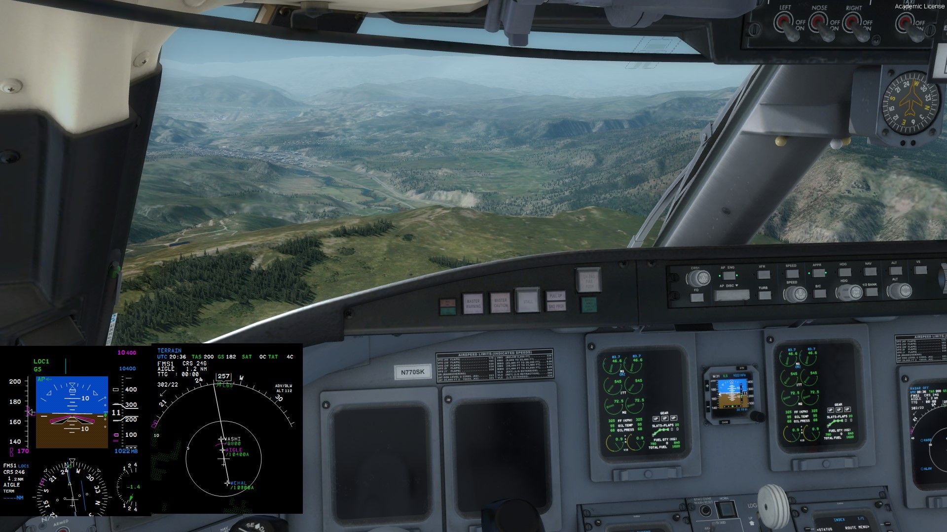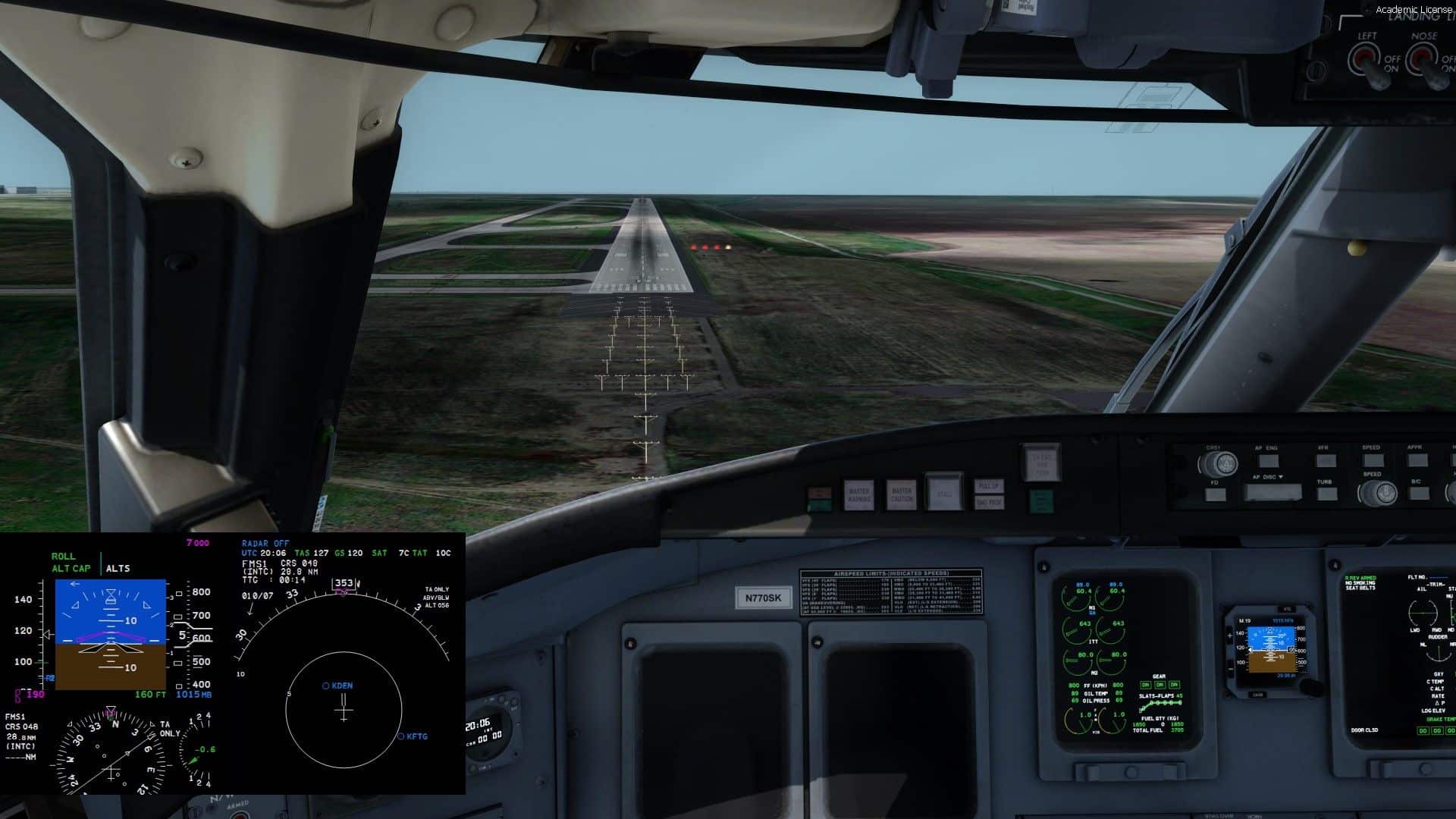 Ich fliege den Descent zur Zeit immer im VS-Modus. So kann ich den Sinkflug selbst gestalten und ich habe im Blick wann ich welche Höhe erreicht habe. In Kurven ist währenddessen verstärkt auf die Geschwindigkeit zu achten. Sind Sinkrate und Geschwindigkeit hier sprunghaft, kommt der Autopilot manchmal mit dem Turn nicht nach und überfliegt die Kurve. Auch hier haben die bisherigen Updates aber schon viel verbessert. Auf dem Flug von Vail nach Denver habe ich im Anflug die Route verlassen und bin über Vektoren geflogen. Alles problemlos. Manchmal spielt allerdings der Flight Director etwas verrückt. Er zieht dann stark in eine entgegengesetzte Kurve und überschreitet sogar die maximale Seitenneigung. Zwar folgt der Autopilot diesen angezeigten Steuermanövern nicht, für den Flug von Hand ist das allerdings sehr verwirrend.
