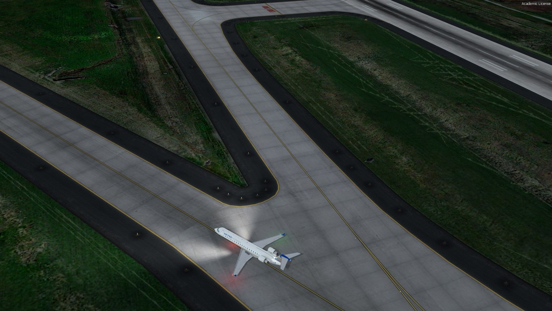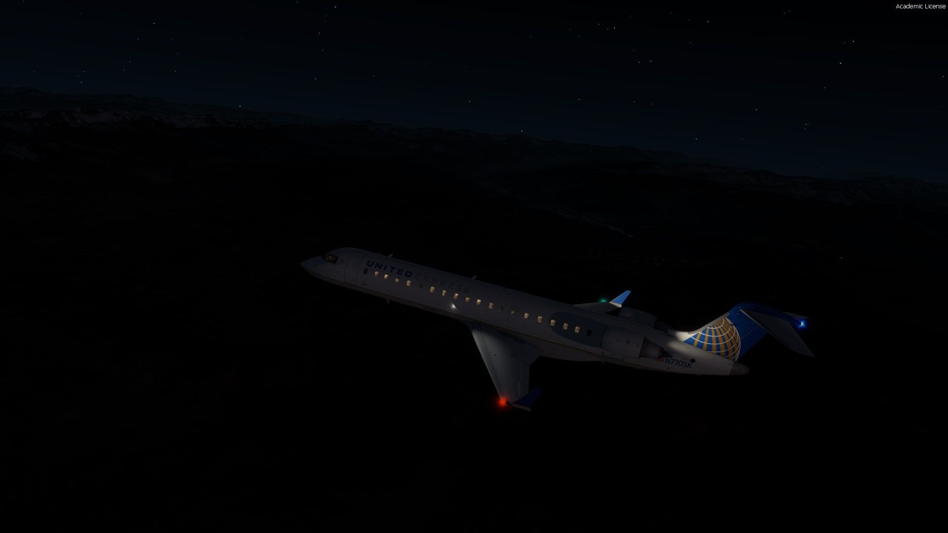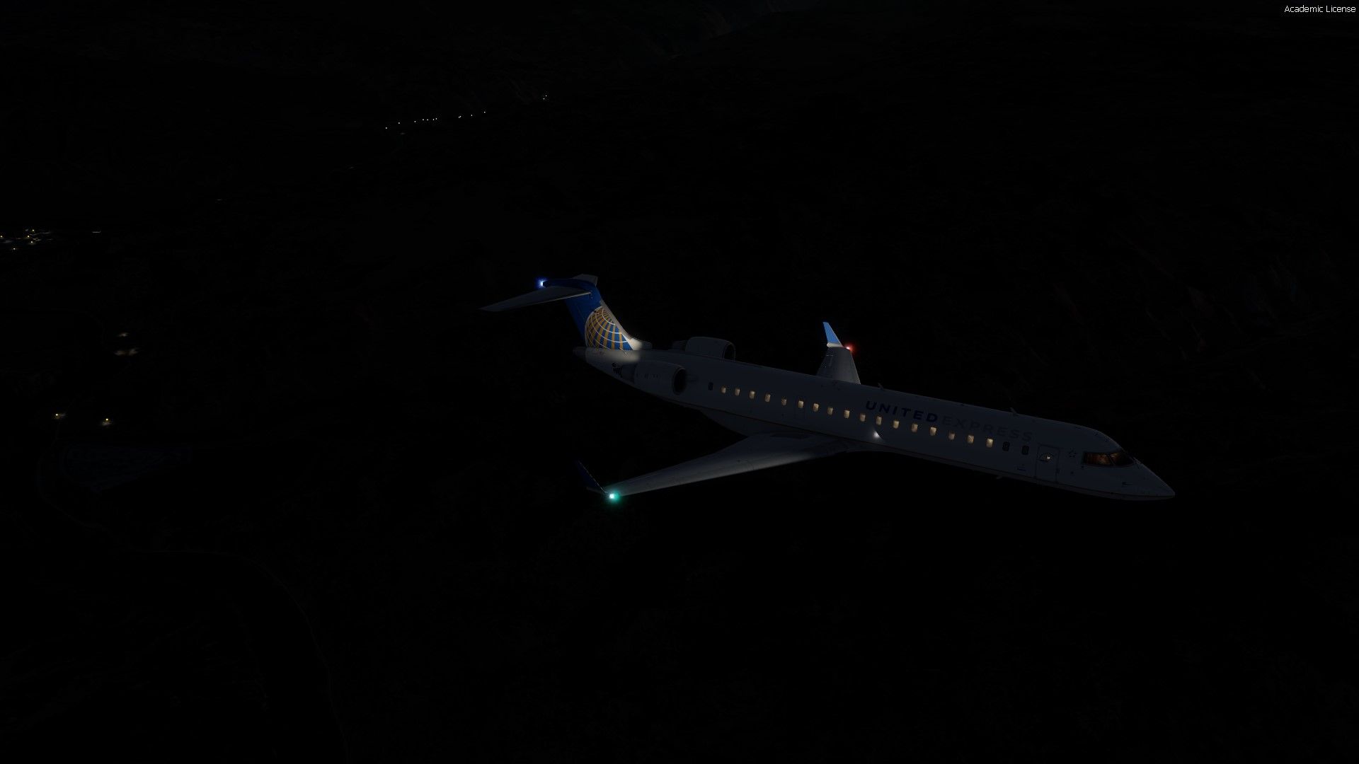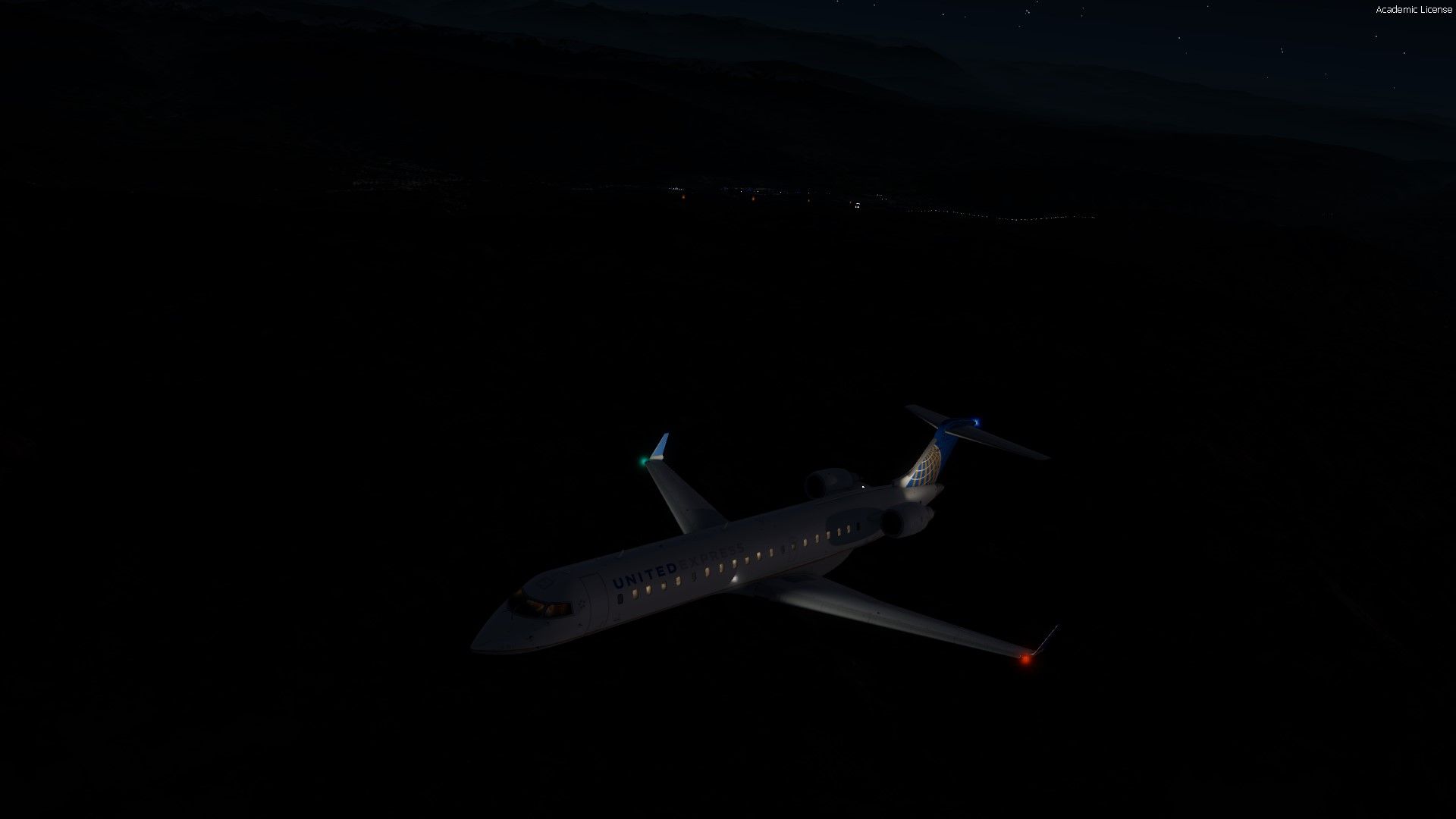 Und die ist wirklich gelungen! Das Außenmodell macht mit Prepar3Ds Dynamic Lightning ordentlich was her. Farben und Sättigungen stimmen, die Leuchtkraft der einzelnen Elemente wirkt überzeugend. Auch die Kabine ist deutlich beleuchtet. Die Scheinwerfer ermöglichen auch auf dunklen Taxiways wie in Vail (hier gibt es nur Randbefeuerung) ein vernünftiges Manövrieren. Die Beleuchtung des CRJ ist funktional und atmosphärisch zu gleich gelungen.