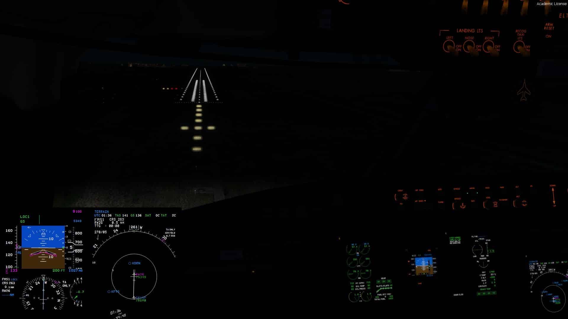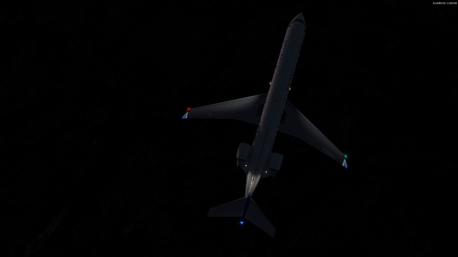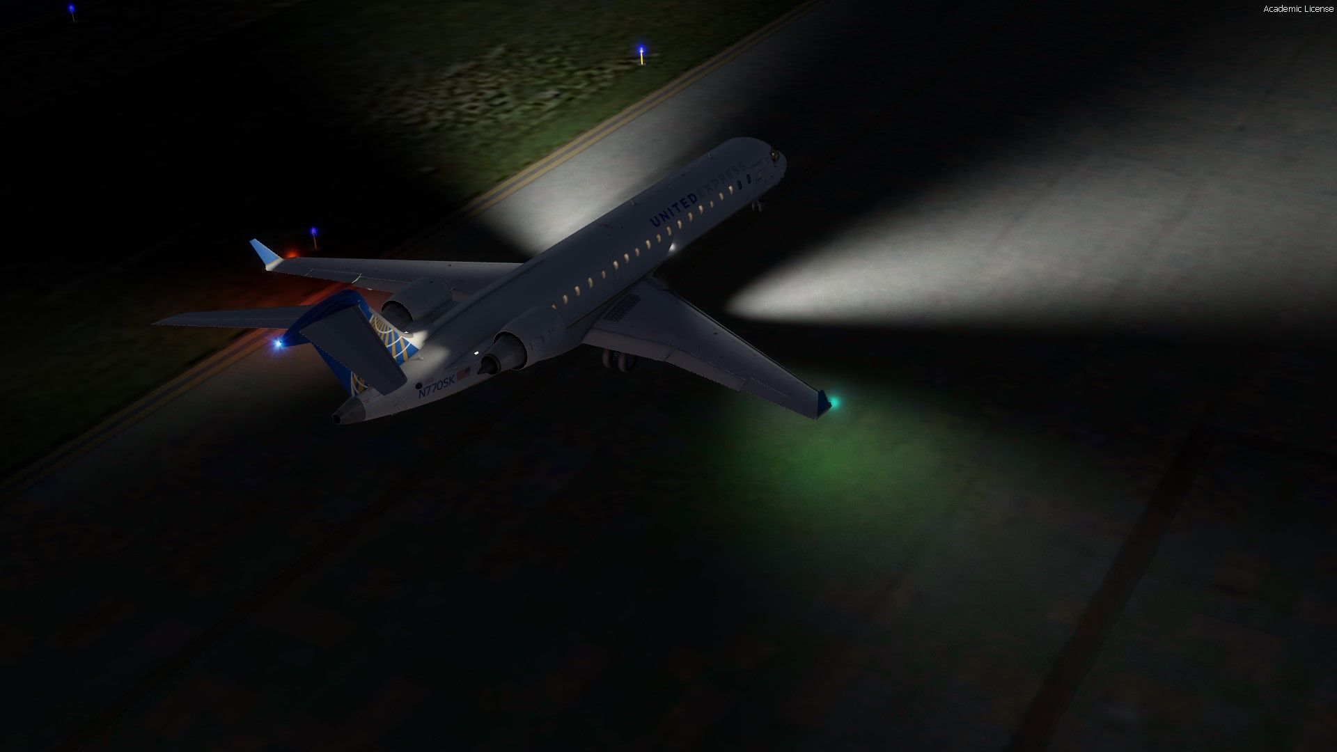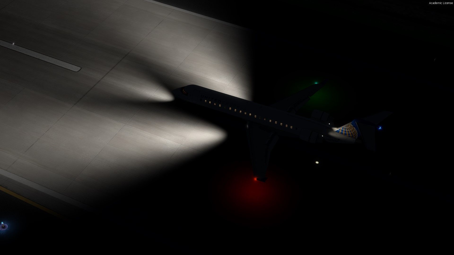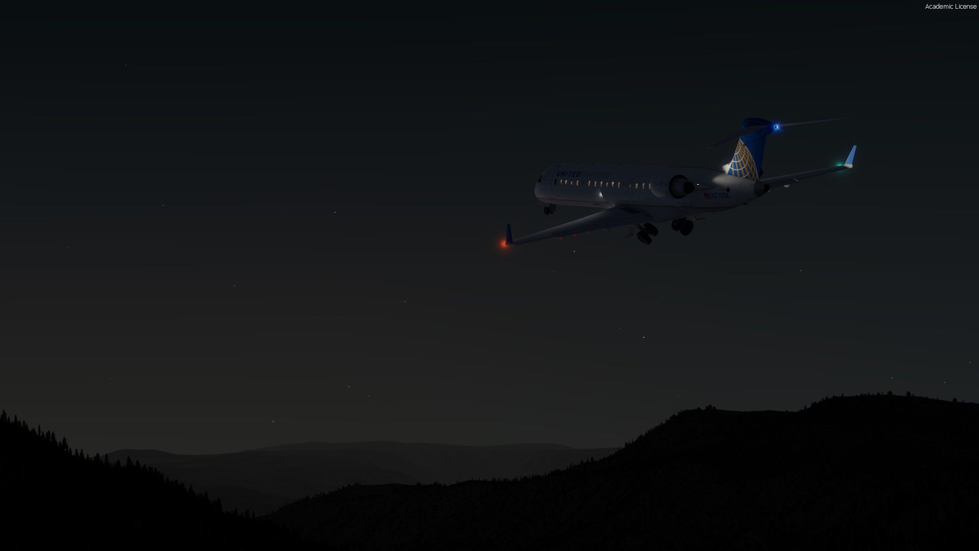 Und die ist wirklich gelungen! Das Außenmodell macht mit Prepar3Ds Dynamic Lightning ordentlich was her. Farben und Sättigungen stimmen, die Leuchtkraft der einzelnen Elemente wirkt überzeugend. Auch die Kabine ist deutlich beleuchtet. Die Scheinwerfer ermöglichen auch auf dunklen Taxiways wie in Vail (hier gibt es nur Randbefeuerung) ein vernünftiges Manövrieren. Die Beleuchtung des CRJ ist funktional und atmosphärisch zu gleich gelungen.