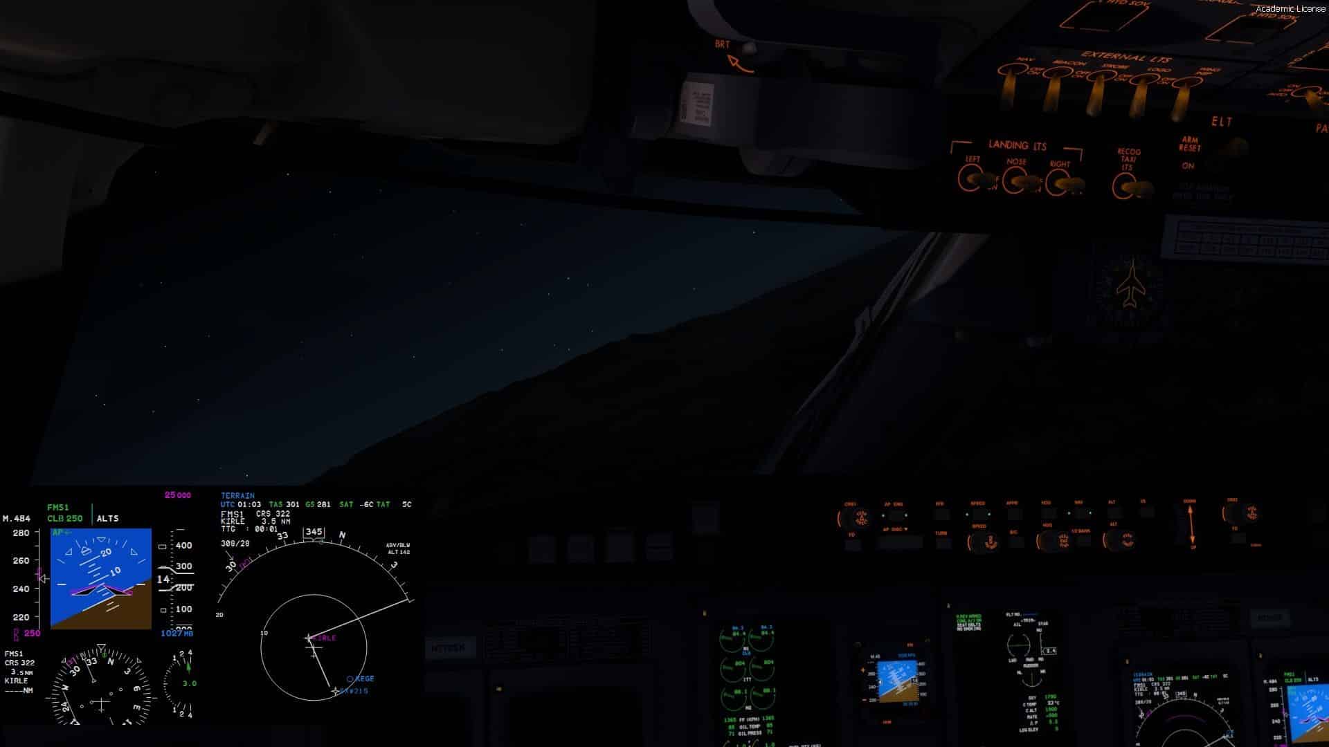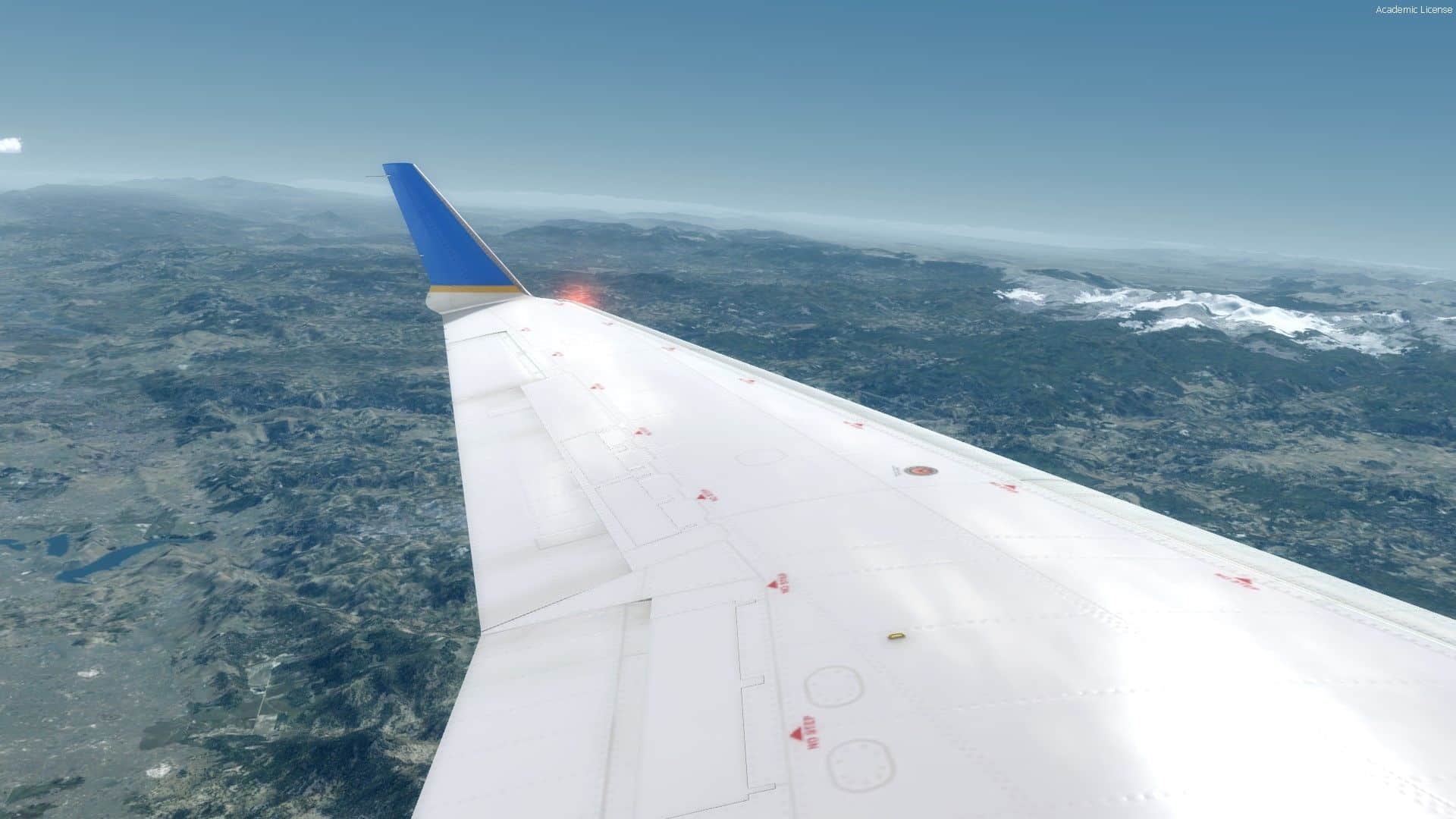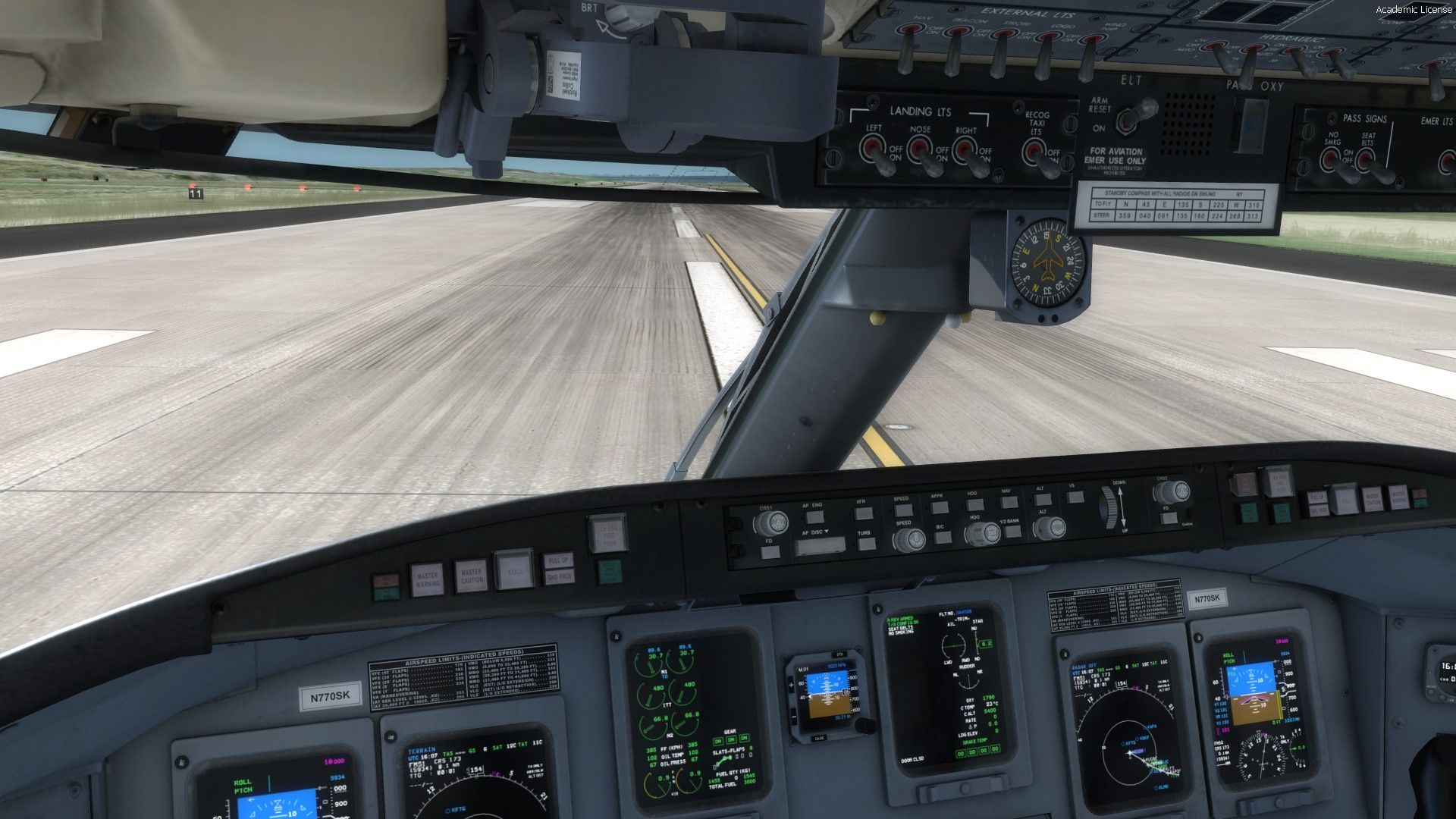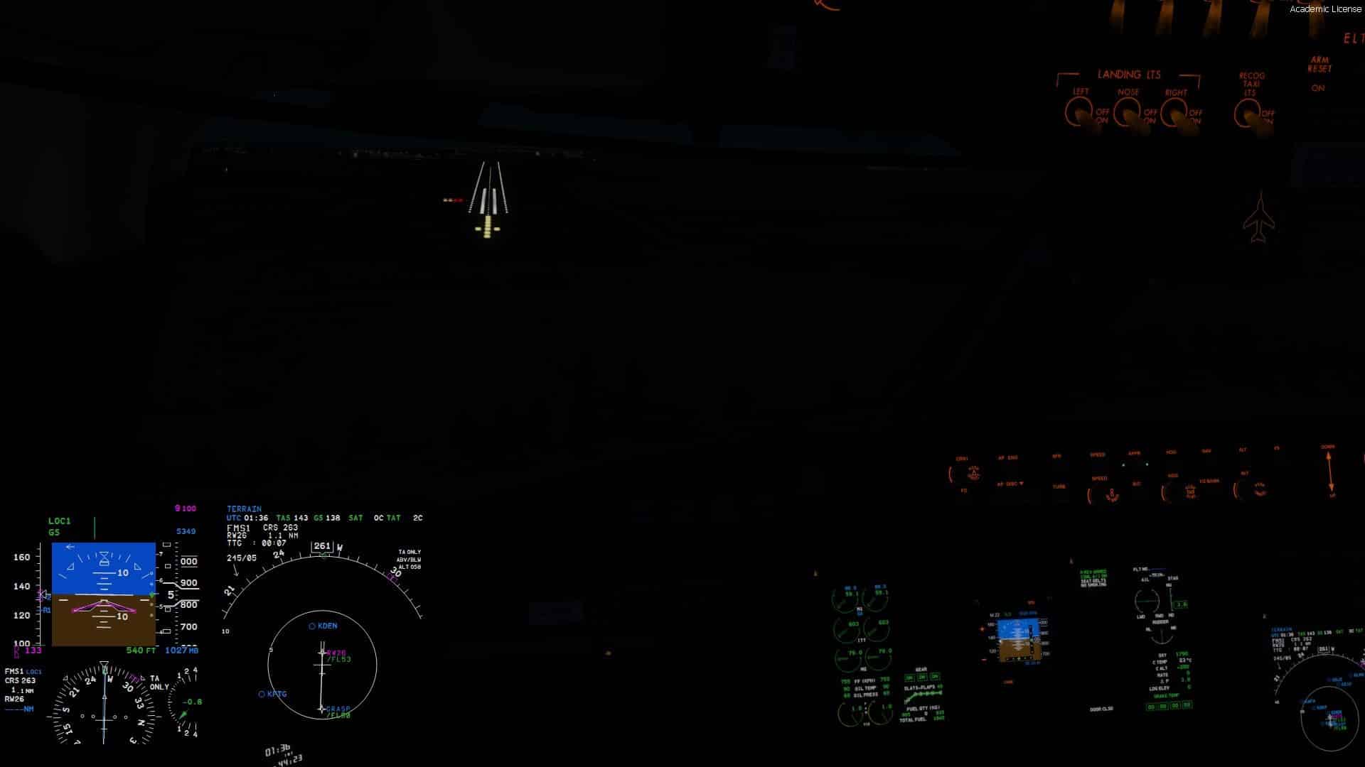 Und die ist wirklich gelungen! Das Außenmodell macht mit Prepar3Ds Dynamic Lightning ordentlich was her. Farben und Sättigungen stimmen, die Leuchtkraft der einzelnen Elemente wirkt überzeugend. Auch die Kabine ist deutlich beleuchtet. Die Scheinwerfer ermöglichen auch auf dunklen Taxiways wie in Vail (hier gibt es nur Randbefeuerung) ein vernünftiges Manövrieren. Die Beleuchtung des CRJ ist funktional und atmosphärisch zu gleich gelungen.