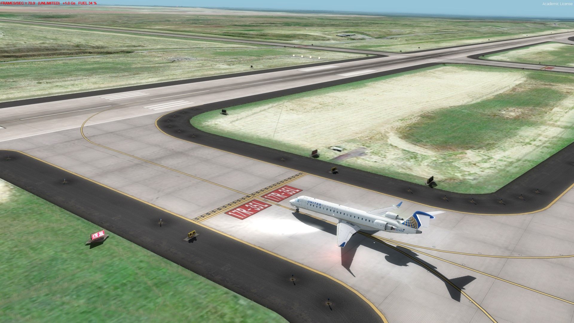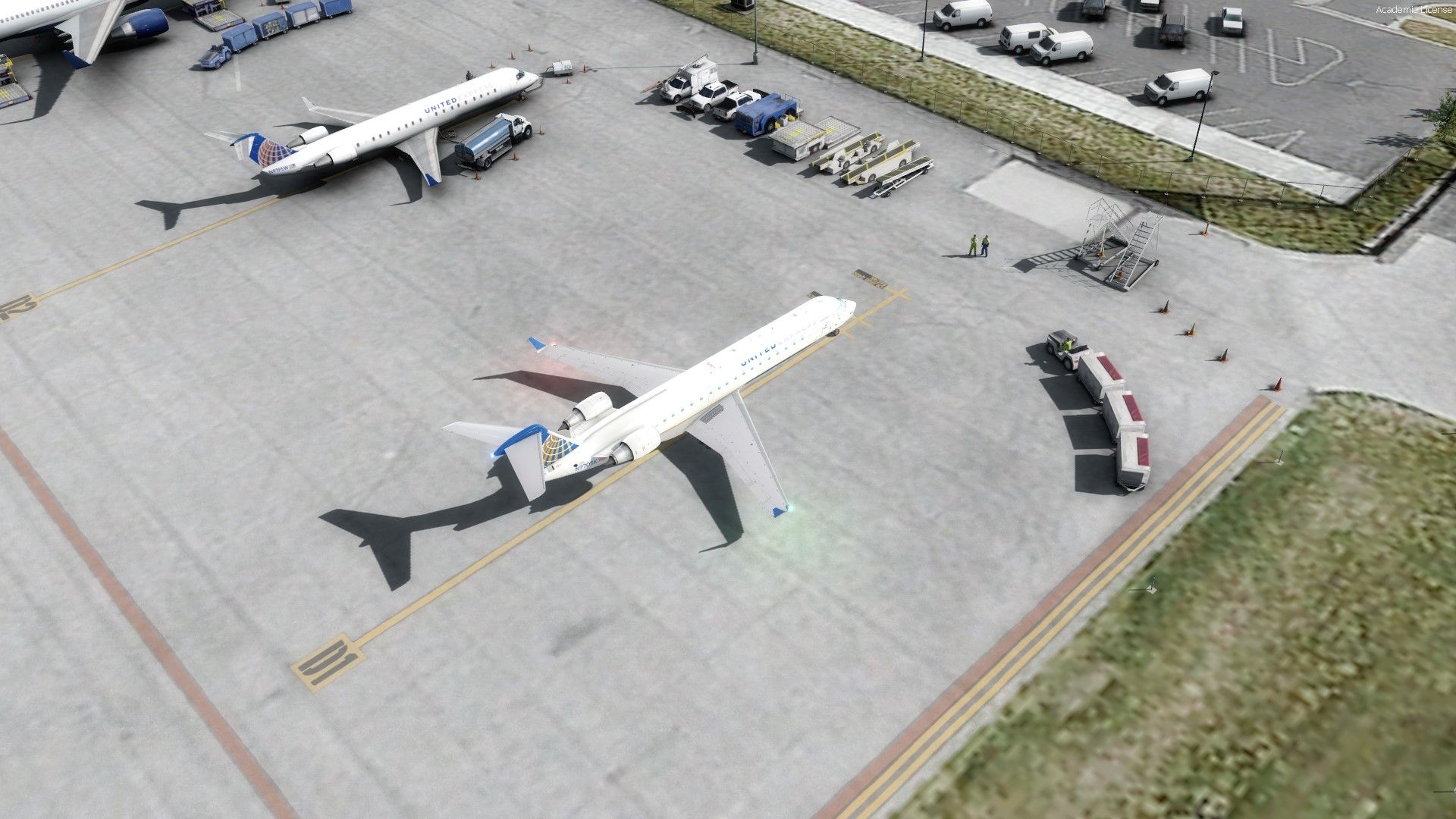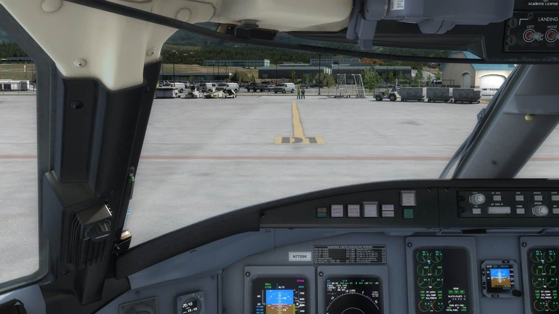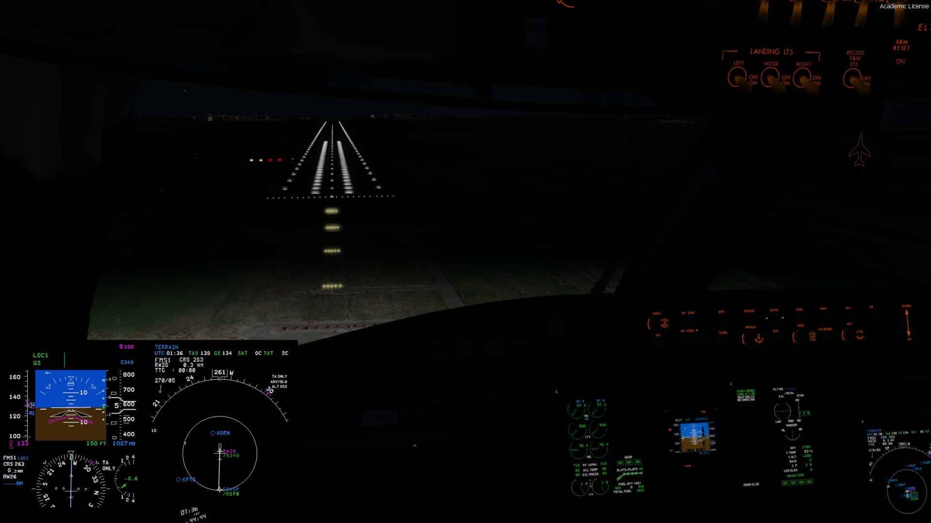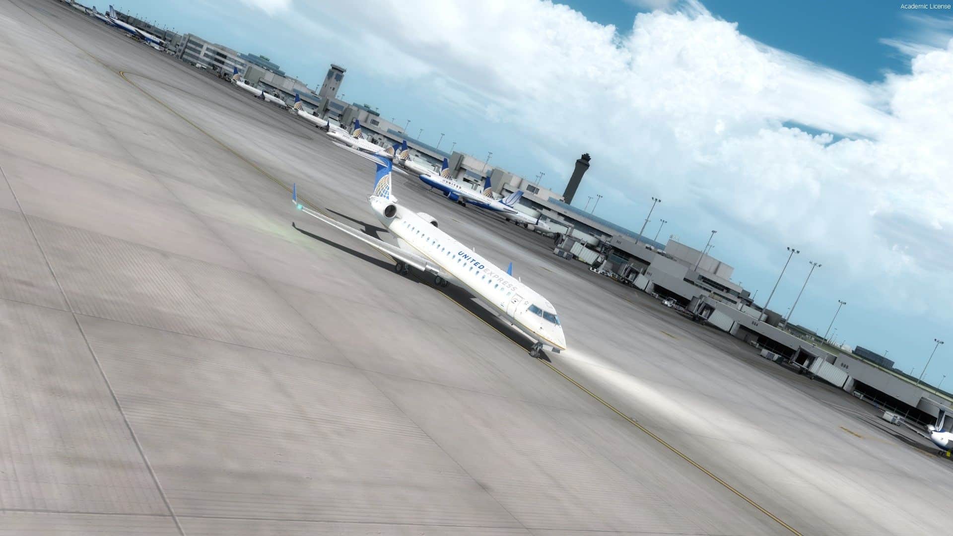Und die ist wirklich gelungen! Das Außenmodell macht mit Prepar3Ds Dynamic Lightning ordentlich was her. Farben und Sättigungen stimmen, die Leuchtkraft der einzelnen Elemente wirkt überzeugend. Auch die Kabine ist deutlich beleuchtet. Die Scheinwerfer ermöglichen auch auf dunklen Taxiways wie in Vail (hier gibt es nur Randbefeuerung) ein vernünftiges Manövrieren. Die Beleuchtung des CRJ ist funktional und atmosphärisch zu gleich gelungen.