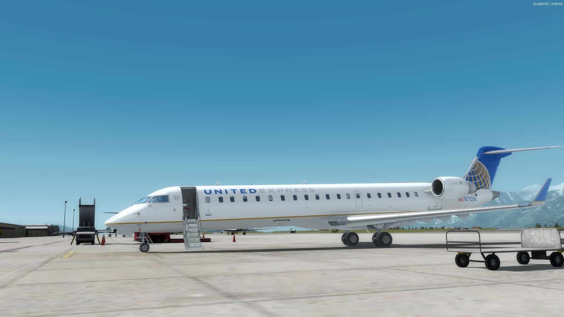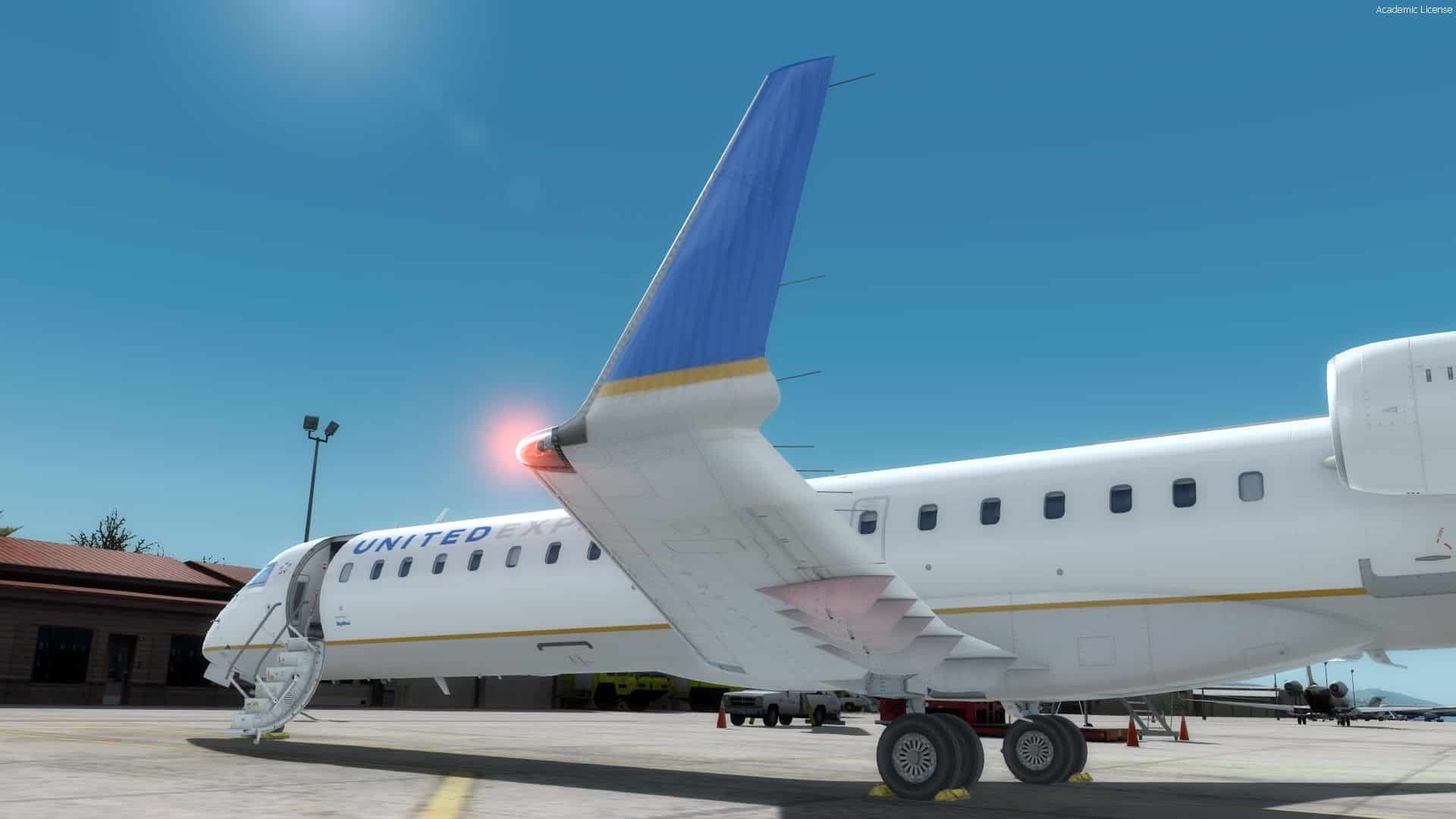 Ein letzter Flug von Jackson zurück nach Denver soll einen groben Überblick über die umgesetzten Systeme des CRJ ermöglichen. Zunächst lässt sich bei gutem Wetter während des Walk-Arounds aber noch einmal ein kurzer Blick auf das aufwendig umgesetzte Außenmodell werfen. An dieser Stelle sollen die Bilder einmal für sich selbst sprechen.