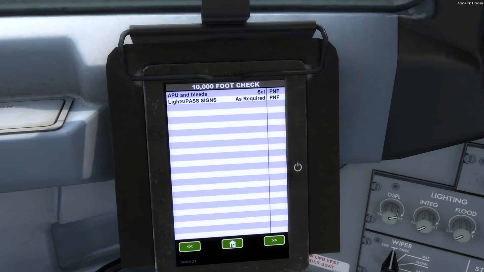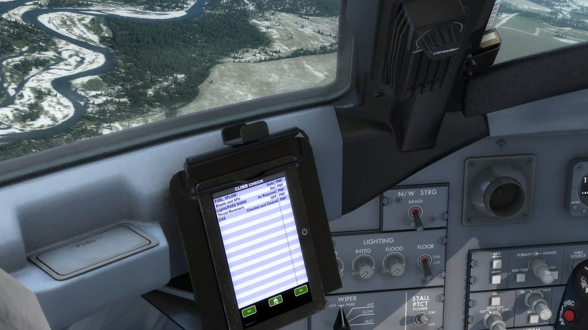 Während des Fluges hilft Dave mit seiner Checklisten-Funktion. Über das entsprechende Menü lassen sich alle Normal-Checklisten für den CRJ abrufen. Sie werden als einfache Bilddatei im Tablet dargestellt und sind nicht interaktiv – aber trotzdem ungemein praktisch, da weiteres hin- und herwechseln zwischen PDF-Viewer und Flugsimulator erspart bleibt. Anders als in Konkurrenzprodukten sind die Listen an das Format des Tablets angepasst und super gut lesbar. Eine wirklich sehr gelungene Umsetzung eines wichtigen Features!