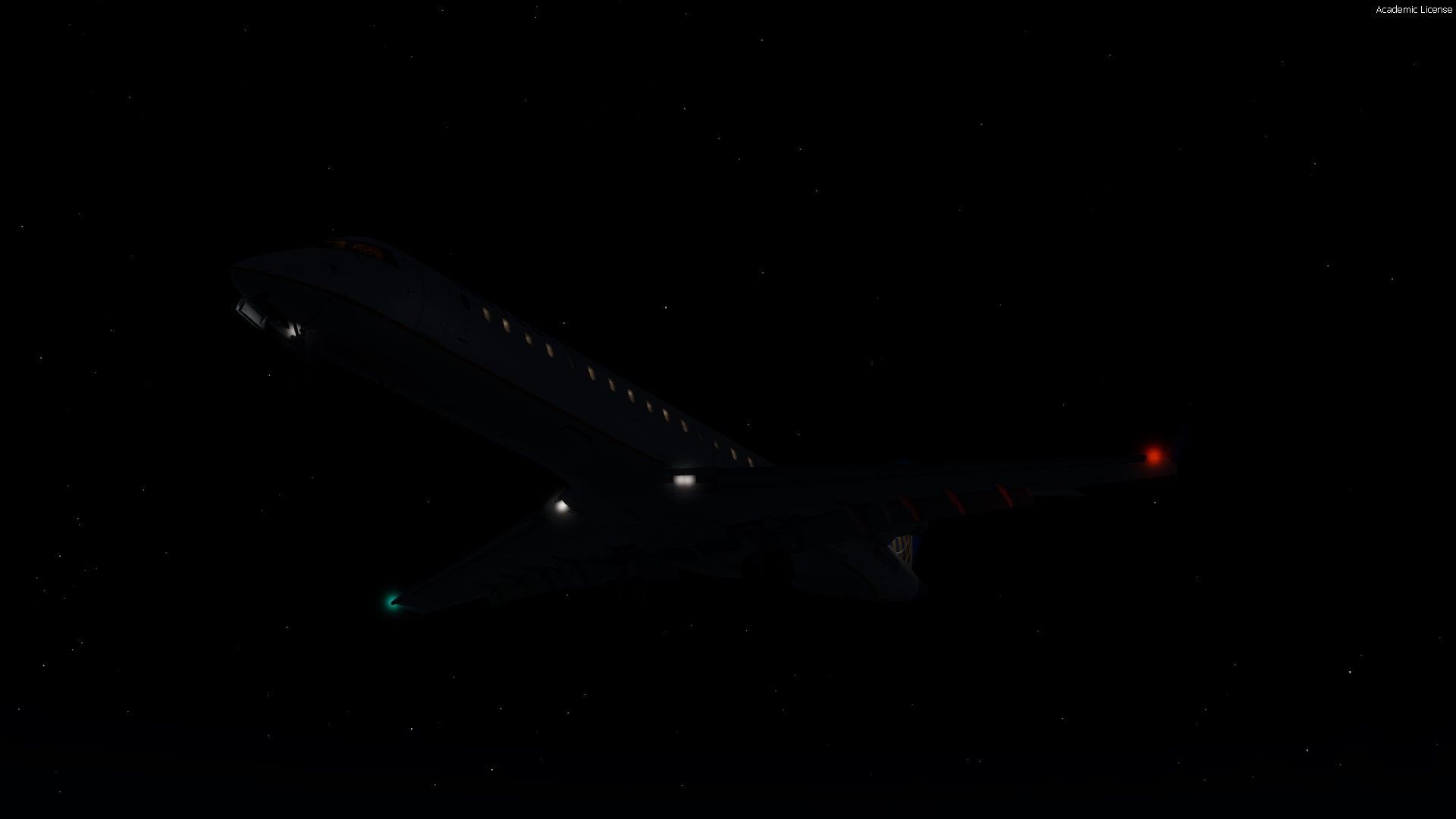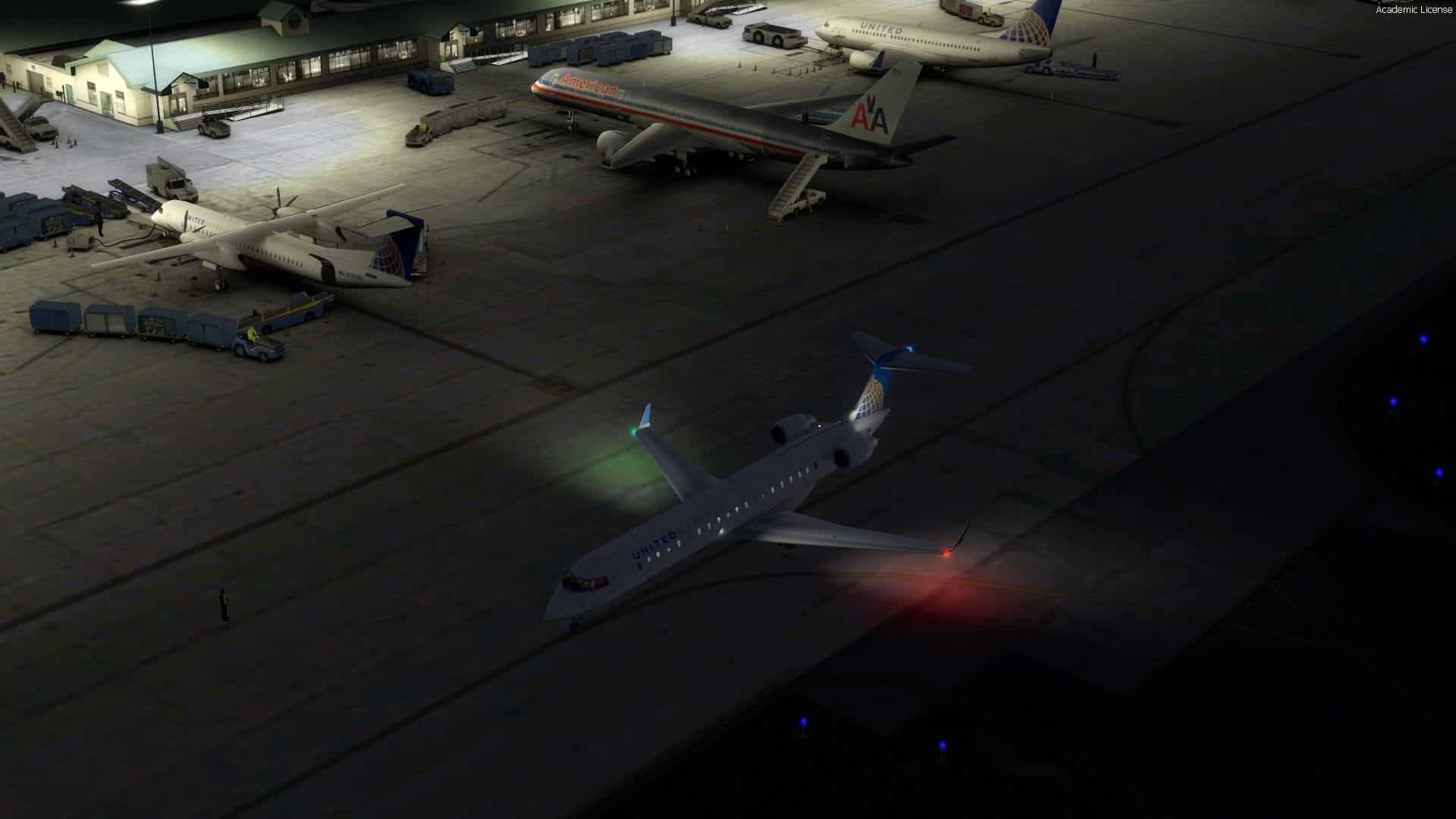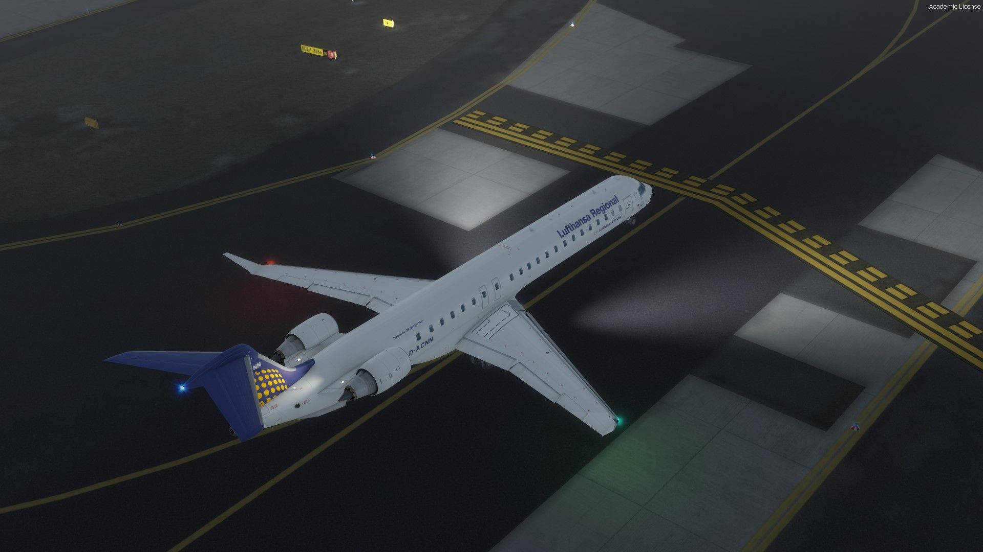 Vollkommen überzeugen kann bereits die Nachtbeleuchtung des Flugzeugs. Sowohl innen, als auch außen präsentiert sich der CRJ realistisch und überzeugend. Die Lichter sind schön dargestellt und unterstützen den Workflow zudem optimal.