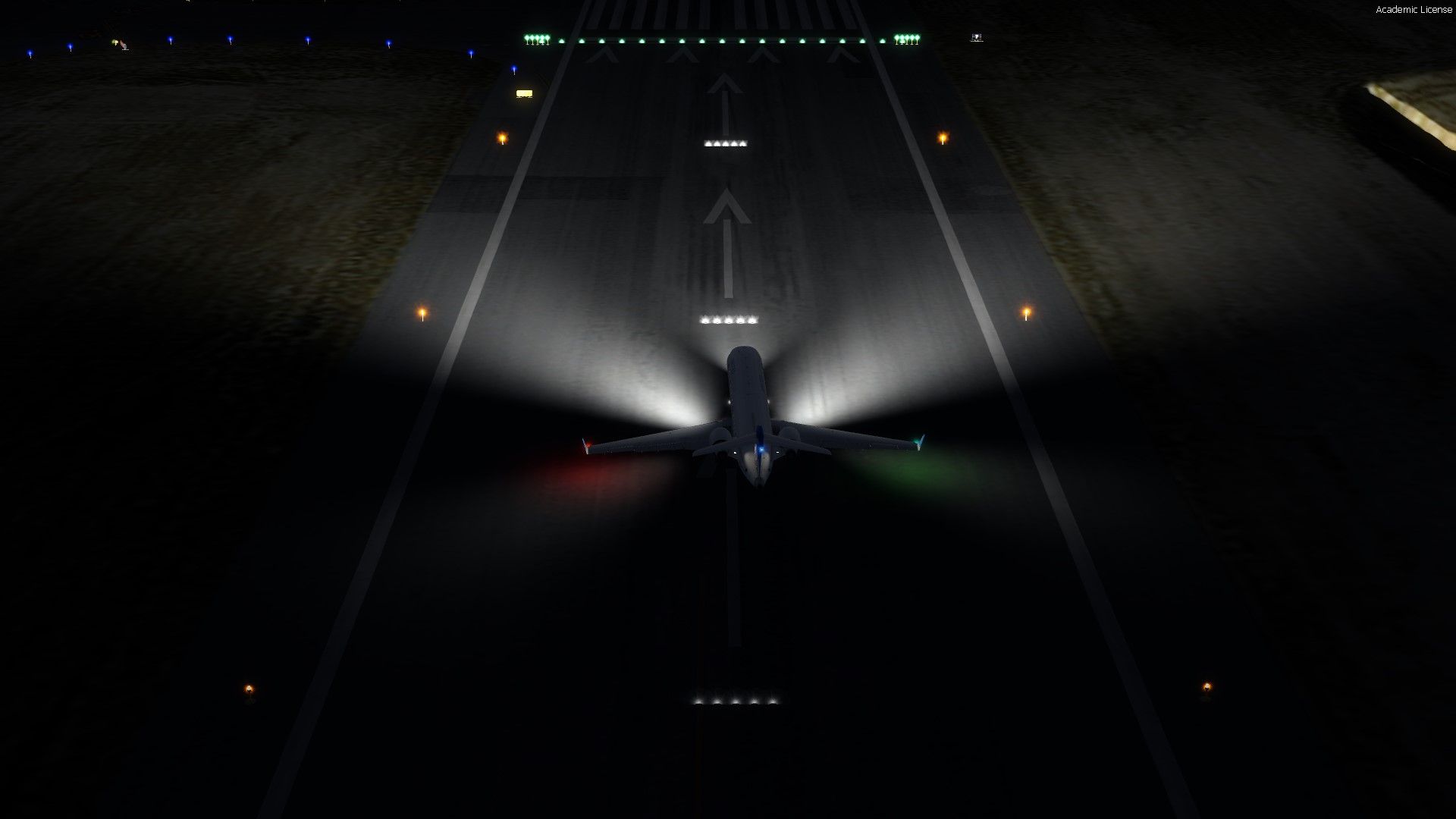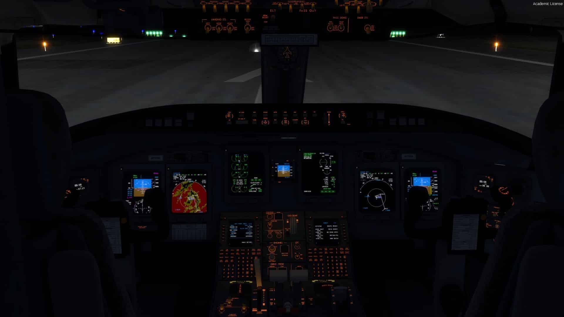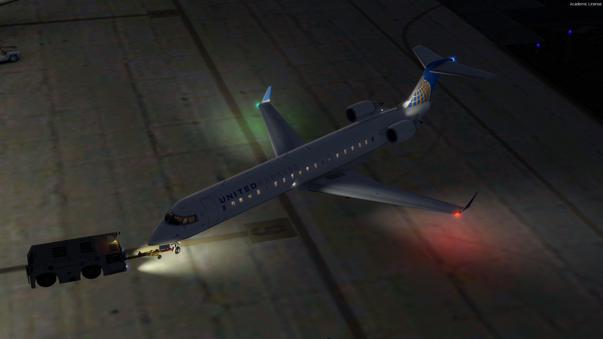 Vollkommen überzeugen kann bereits die Nachtbeleuchtung des Flugzeugs. Sowohl innen, als auch außen präsentiert sich der CRJ realistisch und überzeugend. Die Lichter sind schön dargestellt und unterstützen den Workflow zudem optimal.