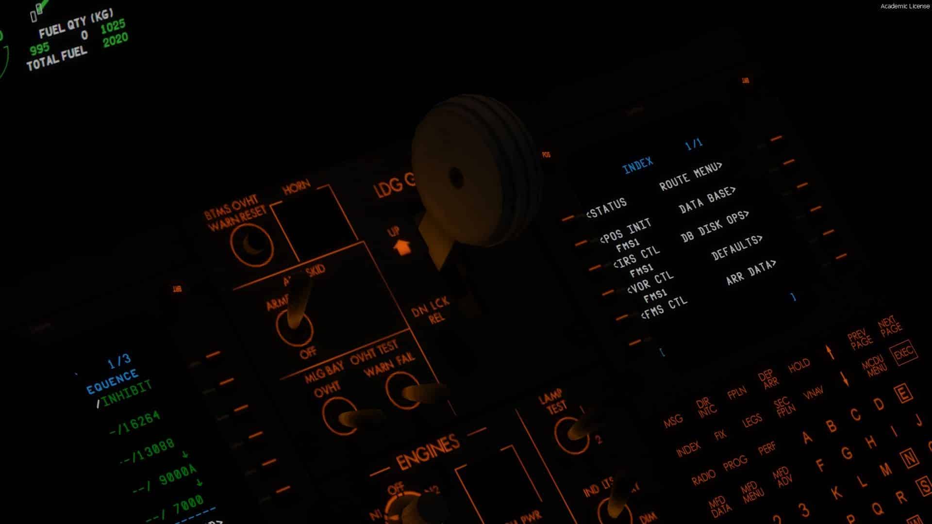 Das FMC ist zwar simpler aufgebaut als das der größeren Airliner, lässt sich jedoch intuitiver bedienen als das der Dash. Alle Seiten wurden von Aerosoft umgesetzt und sind funktionsfähig. Flugplan und Gewichte sind schnell eingegeben. Auch hier hilft die Dokumentation, falls man mal nicht weiter weiß oder ein Format unklar ist. An sich ist das System aber sehr selbsterklärend. SIDs und STARs können mit entsprechender Transition eingegeben werden, Wegpunkte werden im Flugplan nach dem gewohnten via – to – Schema eingegeben.