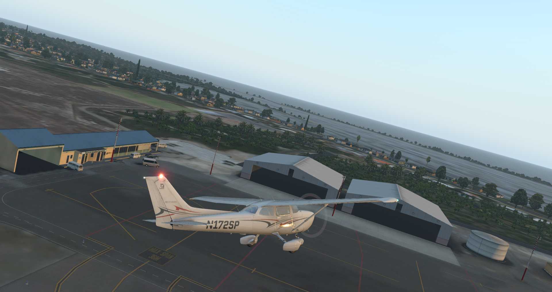Der Flughafen ist mit seinen Gebäuden und Gegenständen noch einmal eine Portion besser. Dere Flughafen ist zwar nicht besonders groß, aber dafür ausgesprochen günstig. Doch bislang ist die Szenerie nur eine Ansammlung von Einzelbildern, daher hier ein Rundflug mit der Cessna 172.
