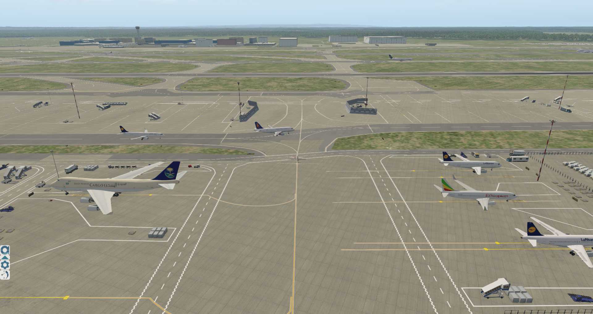 Außerdem gibt es jede Menge hauseigener statischer Flugzeuge, so dass es nicht sofort auffällt, das UK2000 immer noch nicht in der Lage ist die Rampen für die X-Plane eigenen statischen Flugzeuge oder AI Flugzeuge zu konfigurieren. So stehen auch Programme wie World Traffic 3 hier auf verlorenen Posten.