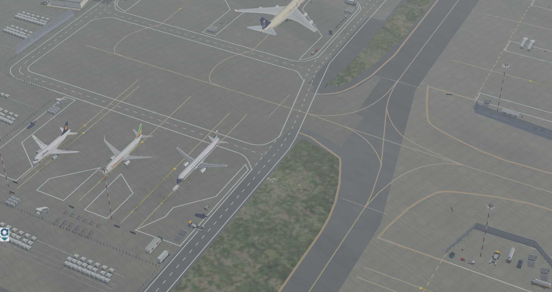 So kann zum Beispiel auch World Traffic 3 jetzt mit diesen Flughafen umgehen um statische Flugzeuge einzublenden, wodurch auch die Taxiways offenbar korrekt eingetragen wurden.