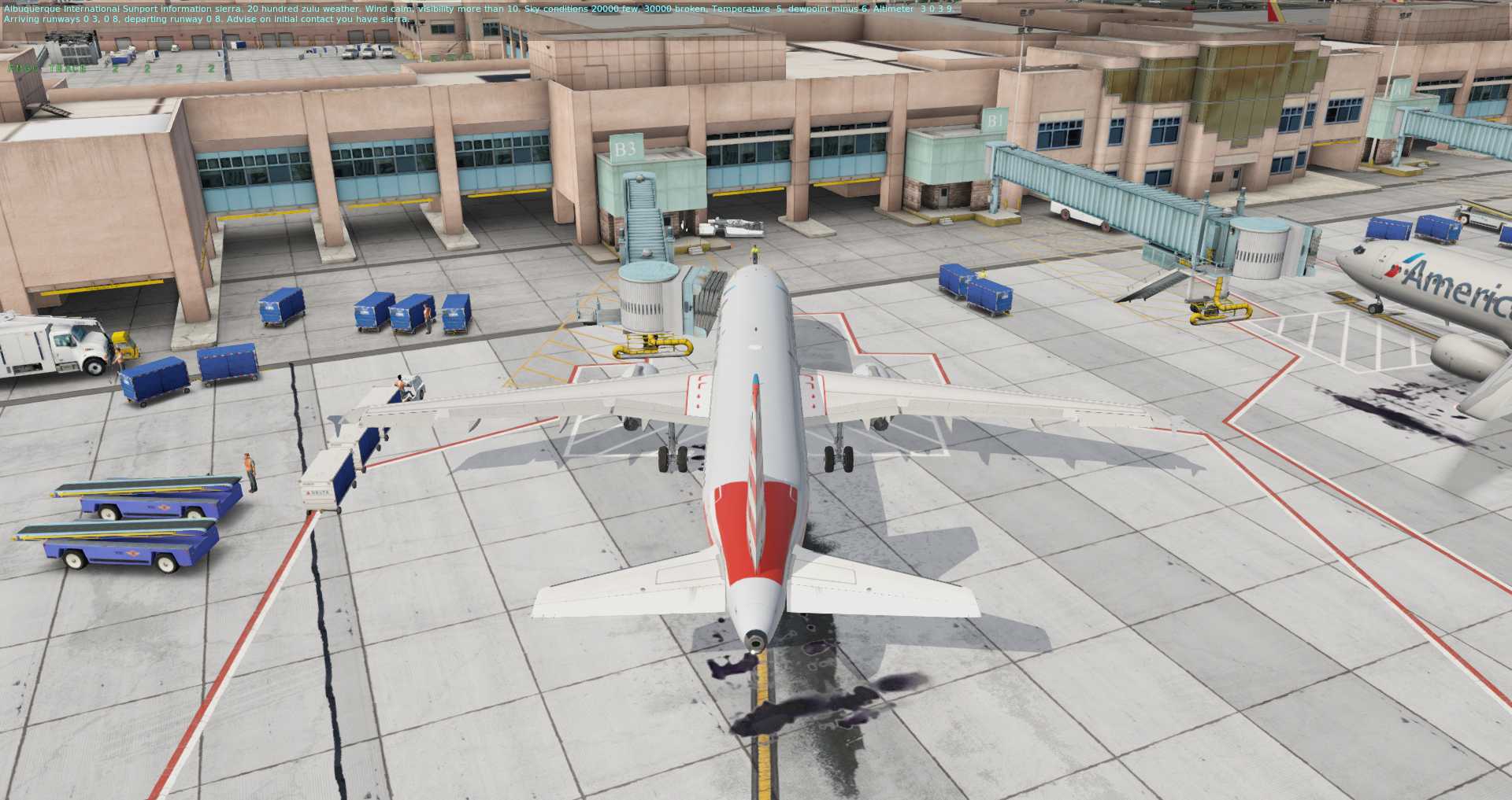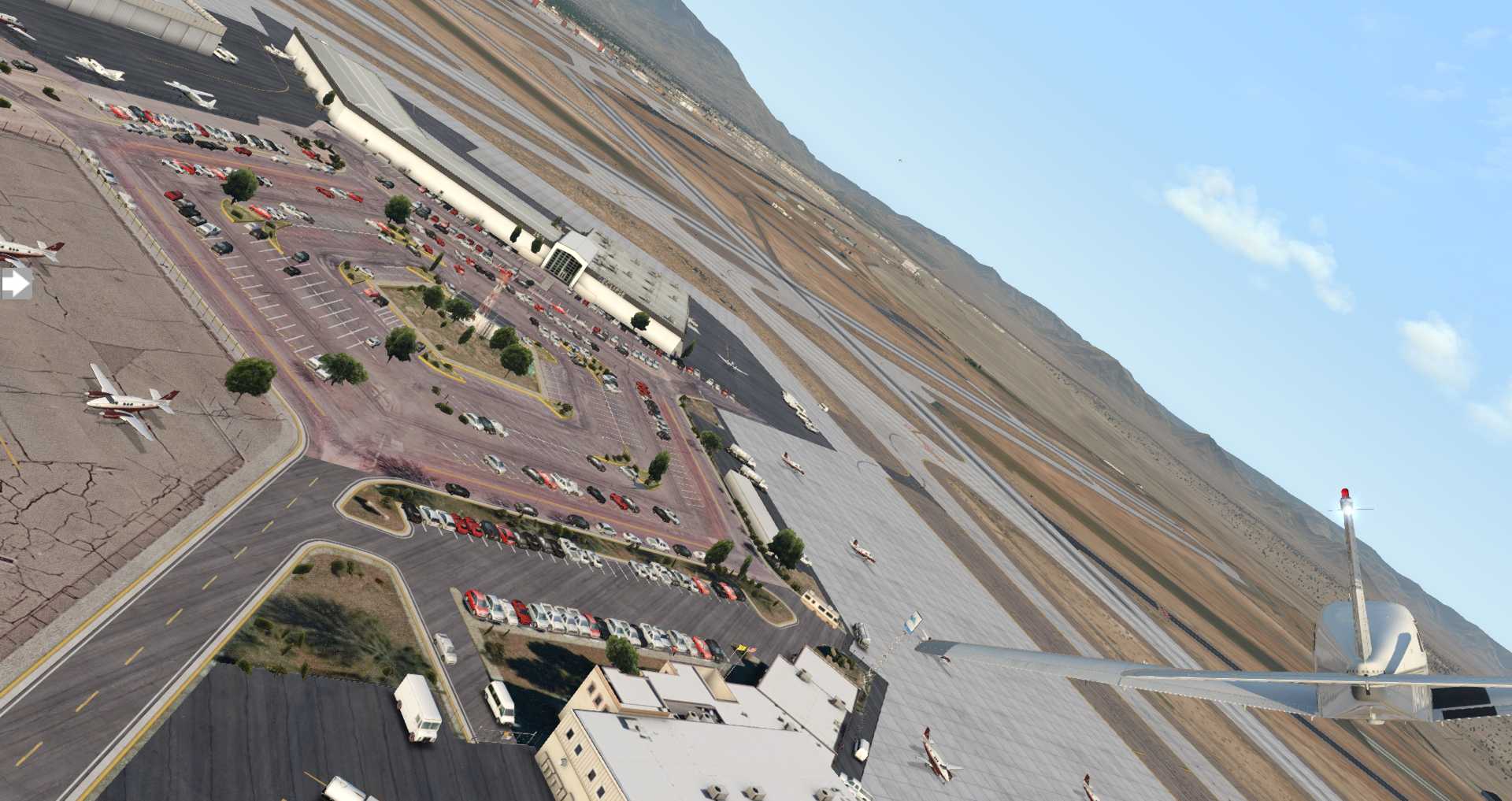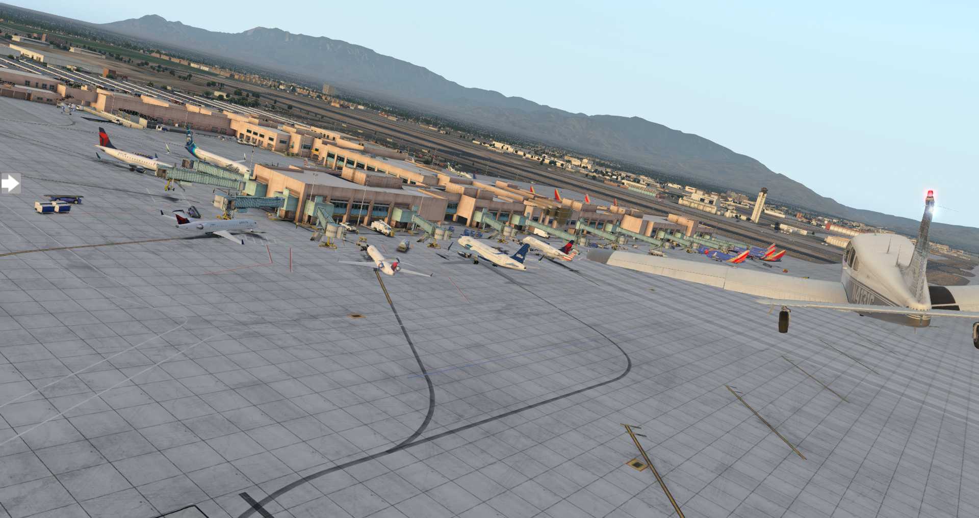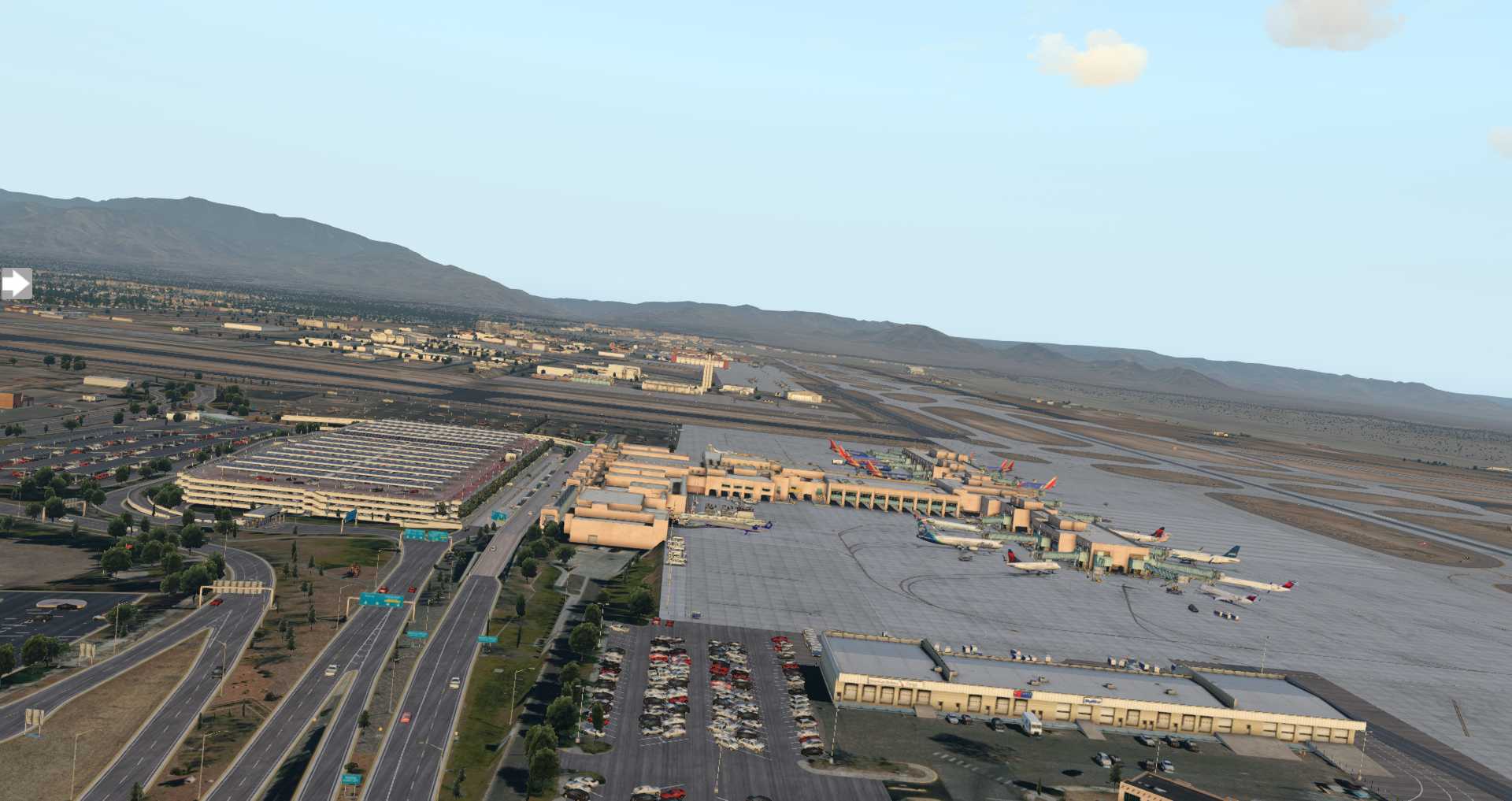 Der Flughafen besteht aus zwei Zip Dateien. Eine davon ist der Flughafen und seine Gebäude selbst in einer 640 MB großen Datei (die auf der Platte über ein GB benötigt) und einem 3,4 GB großen Mesh, das nach der Installation auch noch mal über 4 GB Platz benötigt. Doch damit hat man dann nicht nur den Flughafen selbst sondern auch noch große Teile der Stadt Albuquerque und eine detaillierte Fototextur der weiteren Umgebung inklusive eines detaillierten Mesh.