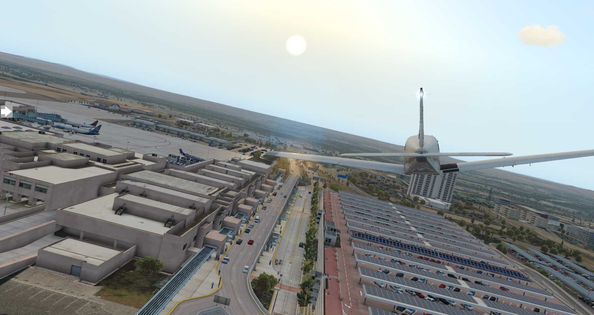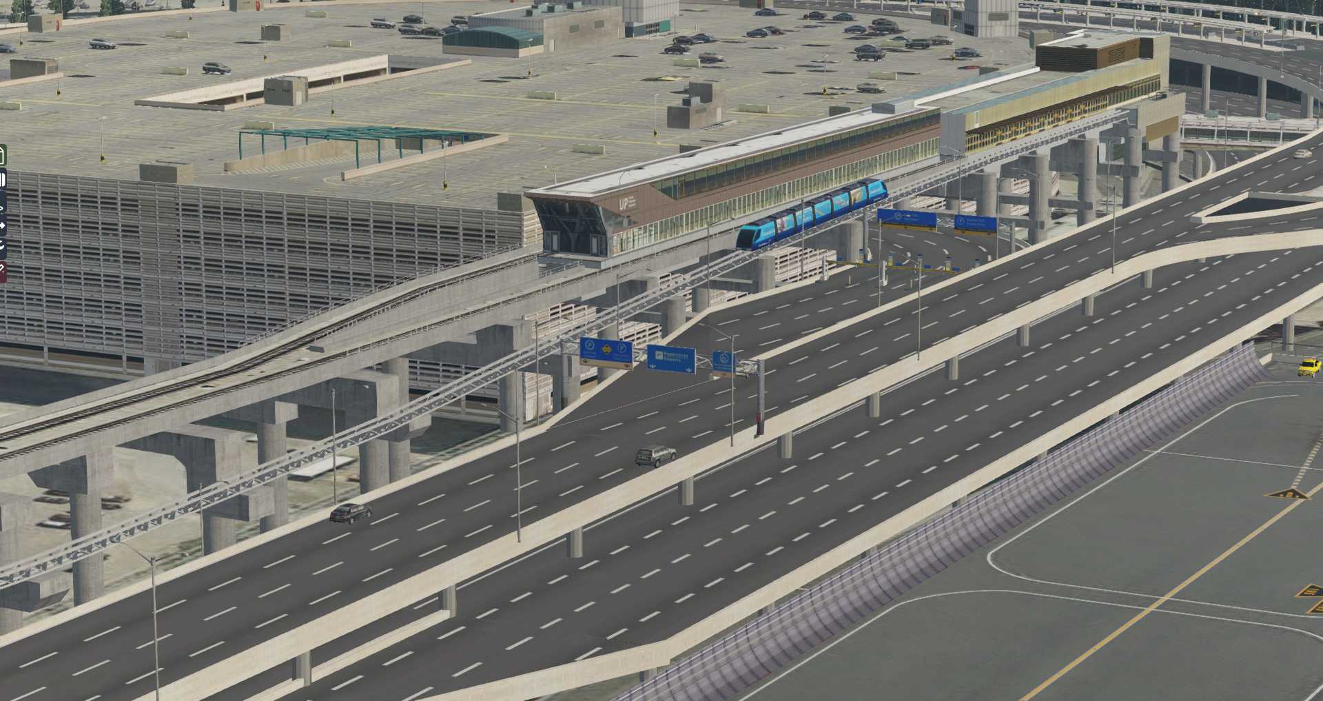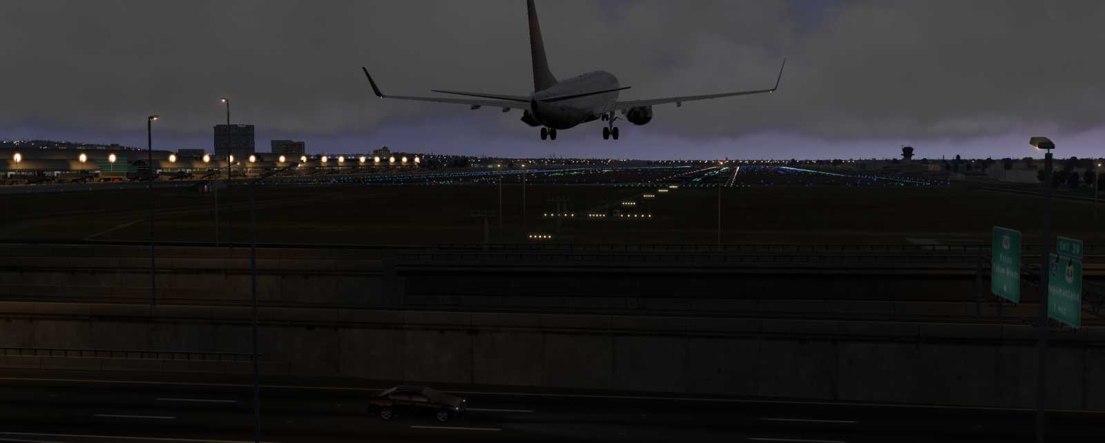Doch so einen Überflug hatte ich auch noch nie erlebt. Die Rendering Engine tut ihr bestes und dann erleben wir vor dem Flughafen fließenden Autoverkehr auf mehreren Ebenen um schließlich eine Maschine beim Landeanflug zu beobachten.