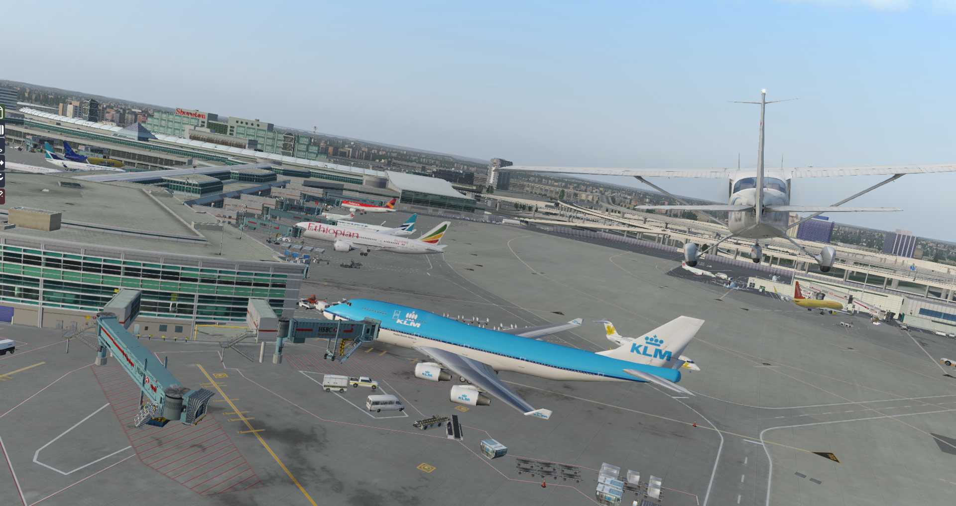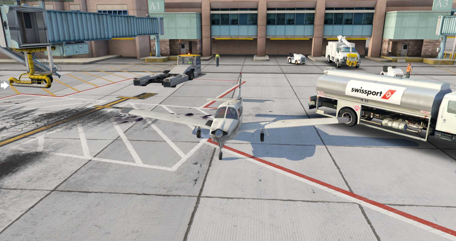 Es gibt Bodenfahrzeuge, die Flughafeneigene Bahn und natürlich den Default-Autoverkehr, doch im wesentlichen fehlt immer das gewisse Etwas. Das größte Problem ist jedoch einfach die Performance. Der Flughafen drückt momentan so gut wie alle Rechner an die Wand.