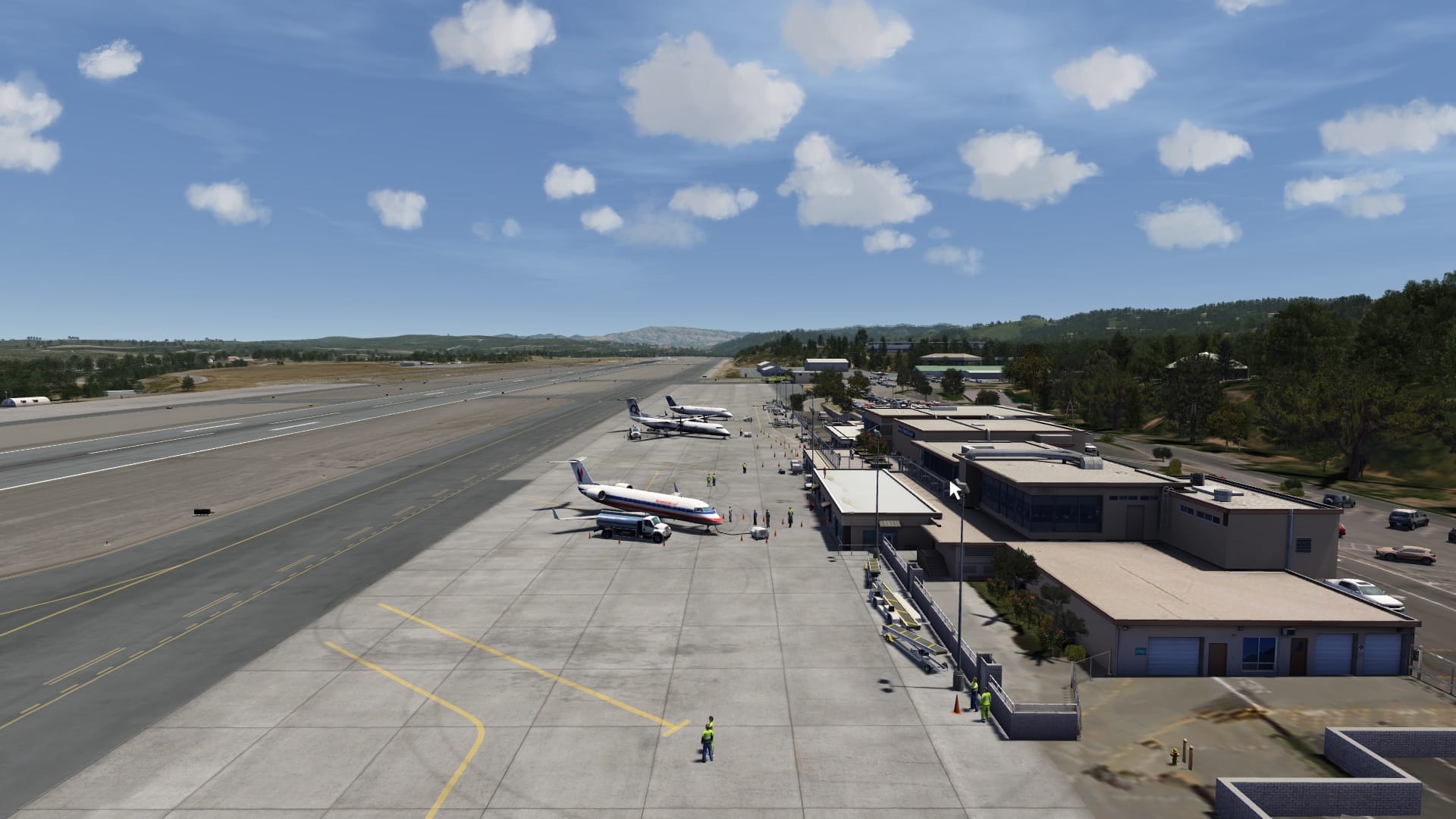 Orbx hat Aerofly FS2 mit Monterey ausgestattet! Anders als erwartet unterscheiden sich die beiden Versionen leicht: In Aerofly FS2 ist der Flugplatz etwas detaillierter, dafür ist die Umgebung etwas weniger detailliert. Auffälligster Unterschied ist die Art der Autogen-Gebäude: Bei Aerofly sind es relativ einfache rechteckige Gebäude mit roten Spitzdächern, die man so eher in Europa findet, bei Prepar3d sind die Gebäude individueller und passen besser in die USA, sind aber bei weitem nicht so dicht. Außerdem ist die Performance in Aerofly FS2 weiterhin exzellent, viel besser als in Prepar3d. Mir gefallen beide Varianten, auch wenn der Wegfall von ein paar kleineren Details gerade im Endanflug, wo sie sichtbar wären, doch Schade ist.