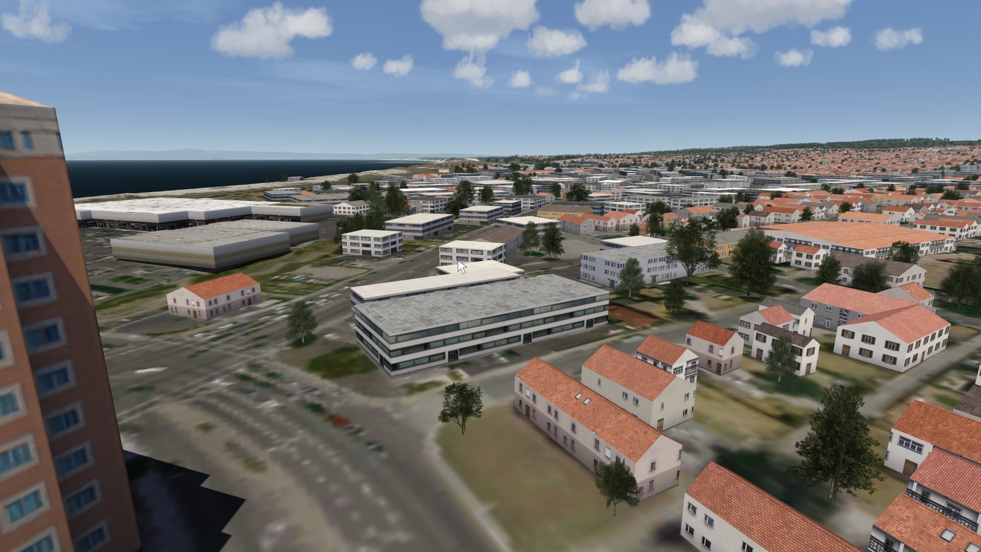 Für einen ersten Überblick hier ein Video mit Anflug und Rundflug über das Szeneriegebiet in Aerofly FS2. Es zeigt sich, dass die Performance weiterhin exzellent ist und ein Fliegen in Stereo-3D auf meinem Rechner überhaupt kein Problem darstellt – und das auf fast voller Detailstufe. Das Gebäude-Autogen ist sehr umfangreich, besteht aber im Gegensatz zur Fassung für FSX/P3D aus eher europäisch aussehenden rechteckigen Häusern mit rotem Spitzdach.