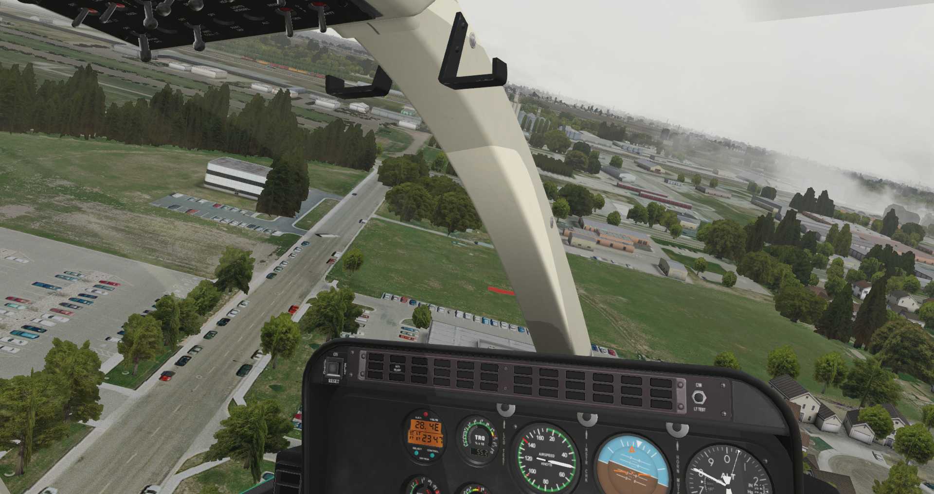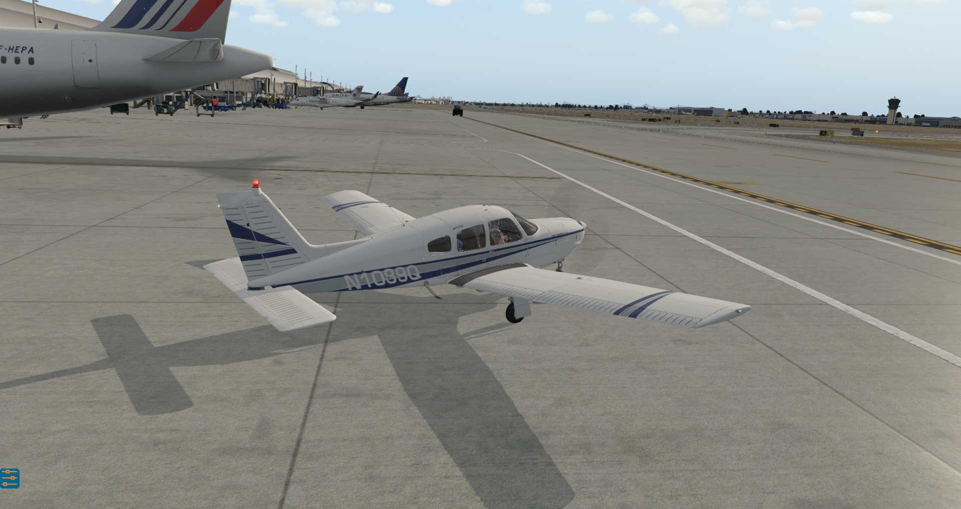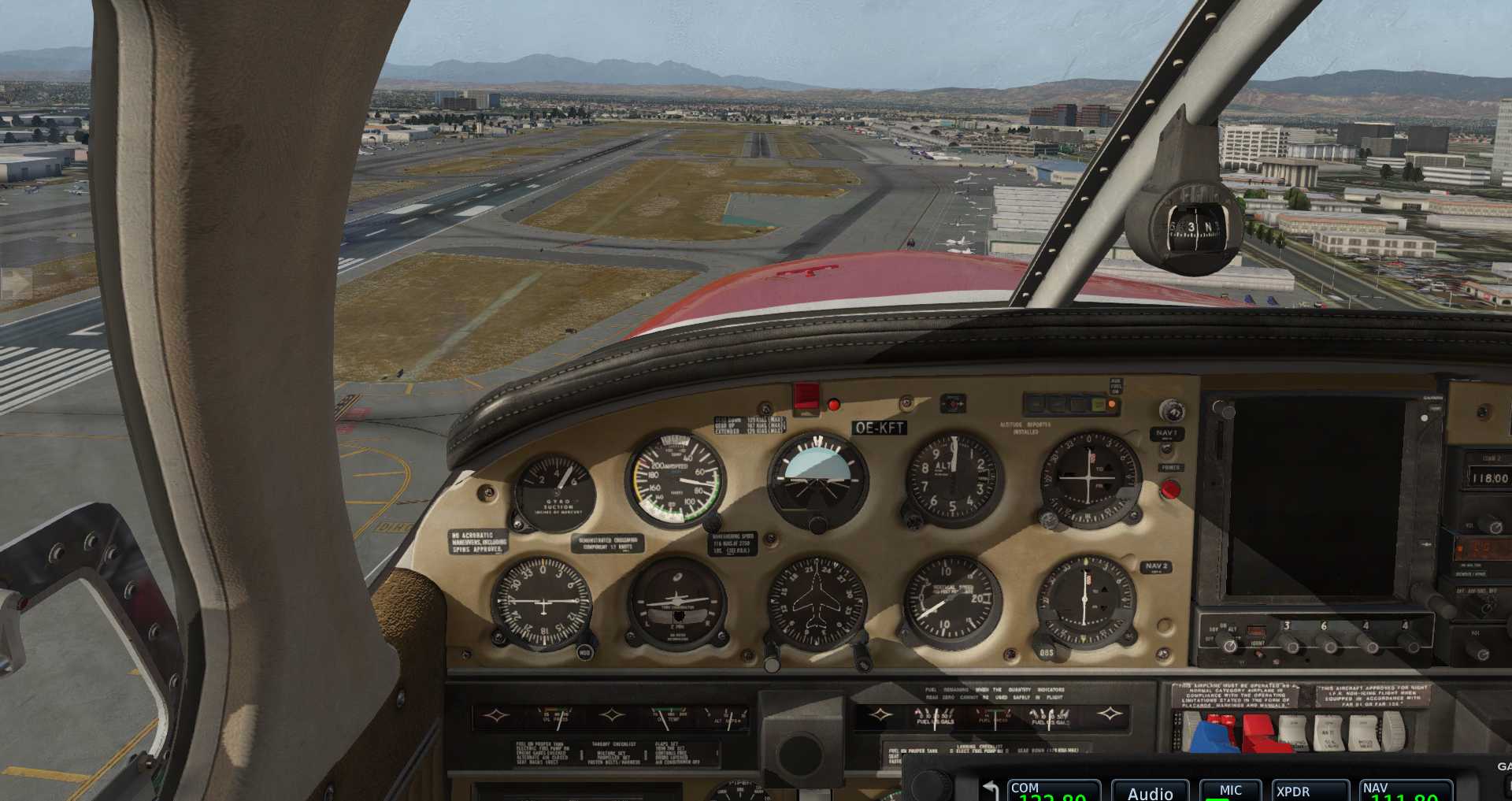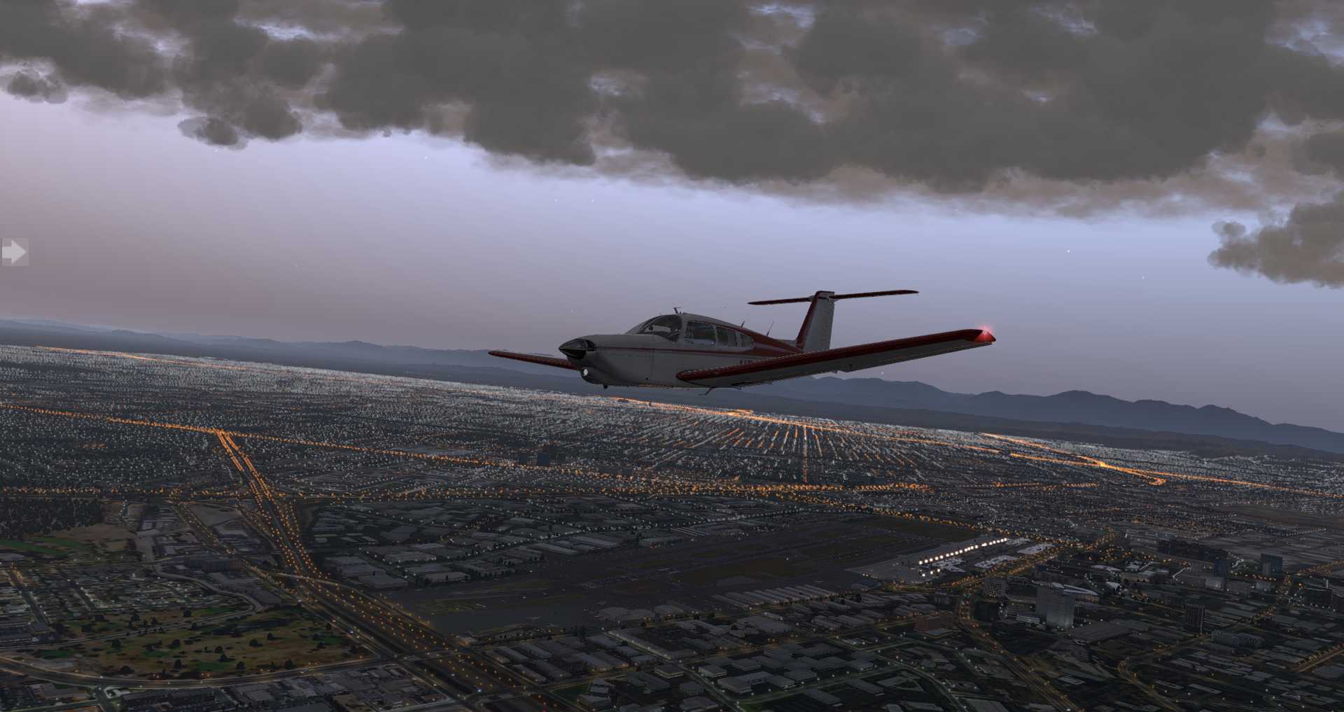 Schon im Auslieferungszustand von X-Plane 11 kann sich der Flughafen durchaus sehen lassen, wie wir hier bei einem Flug mit einer JustFlight Piper Arrow III sehen: