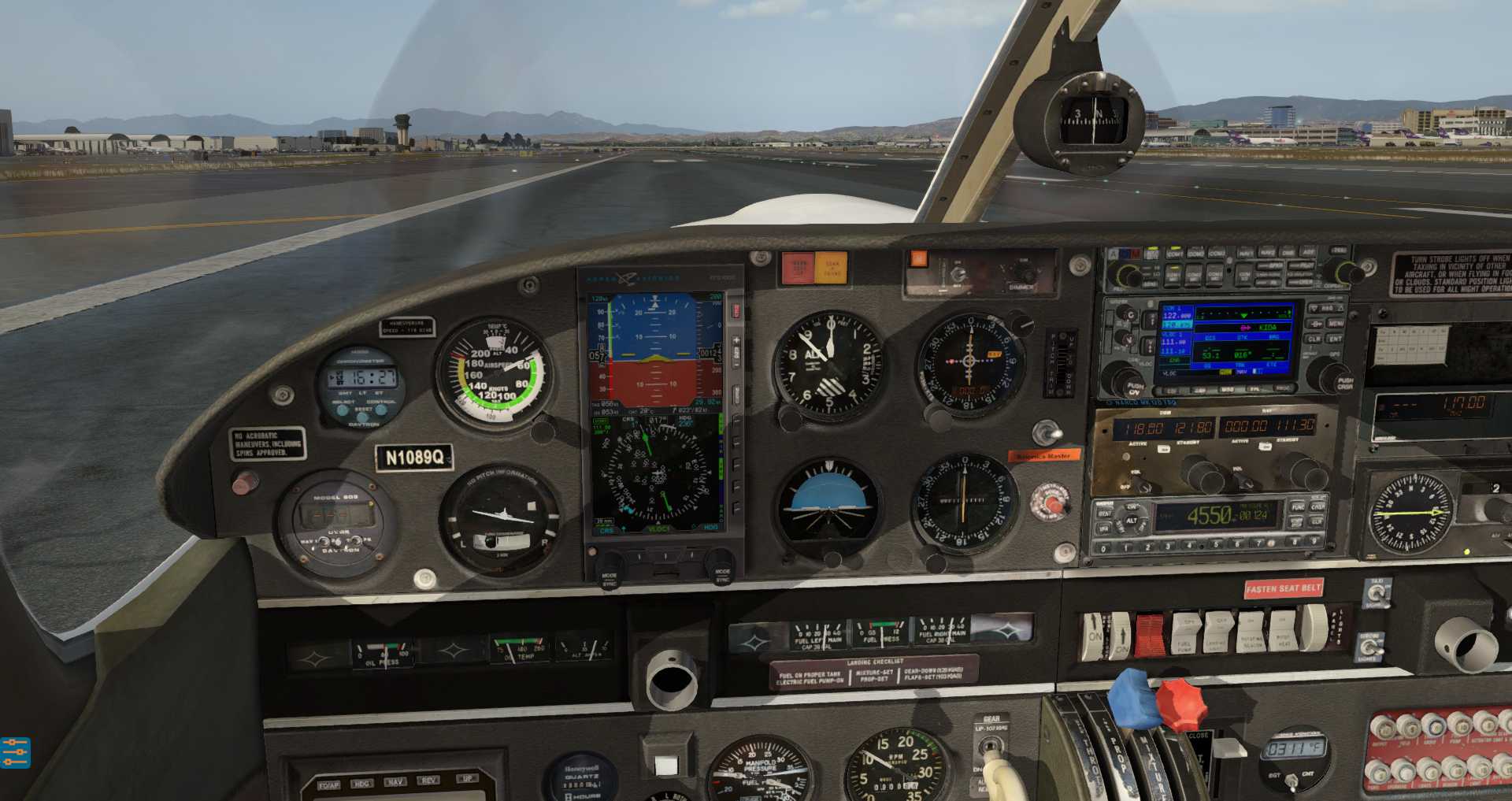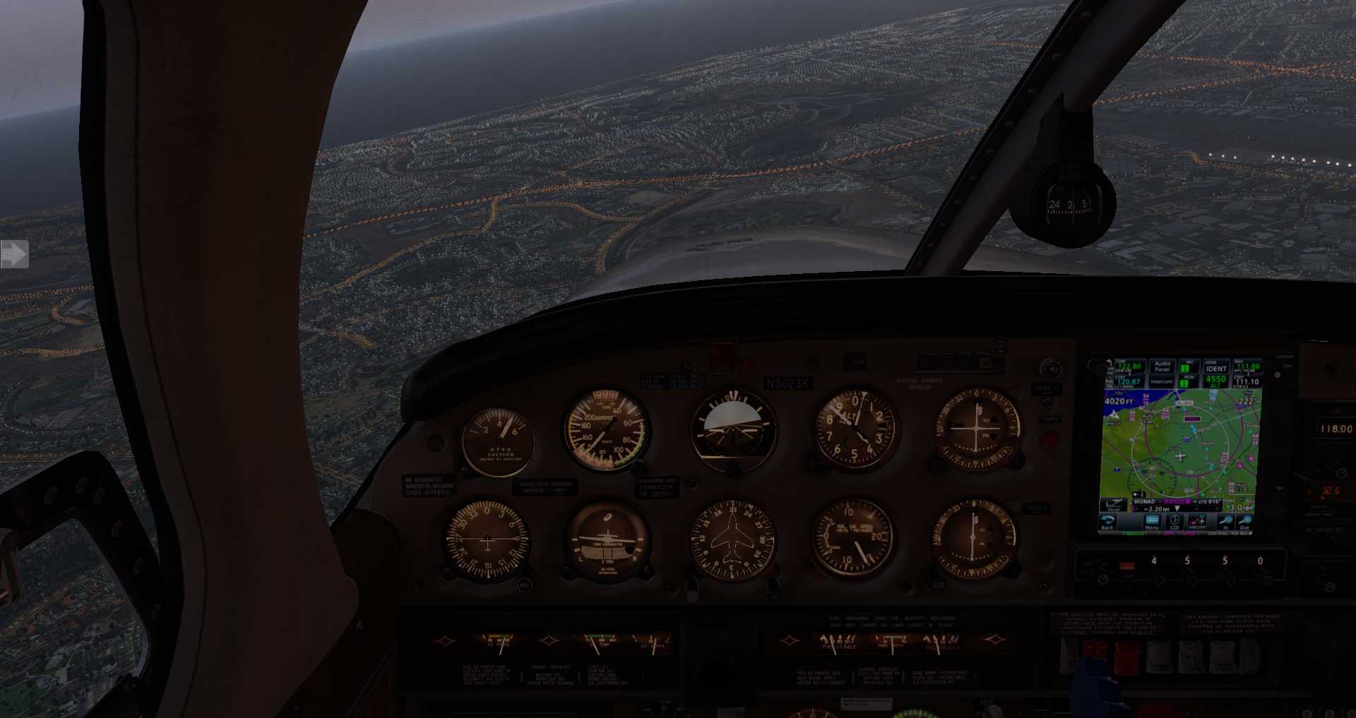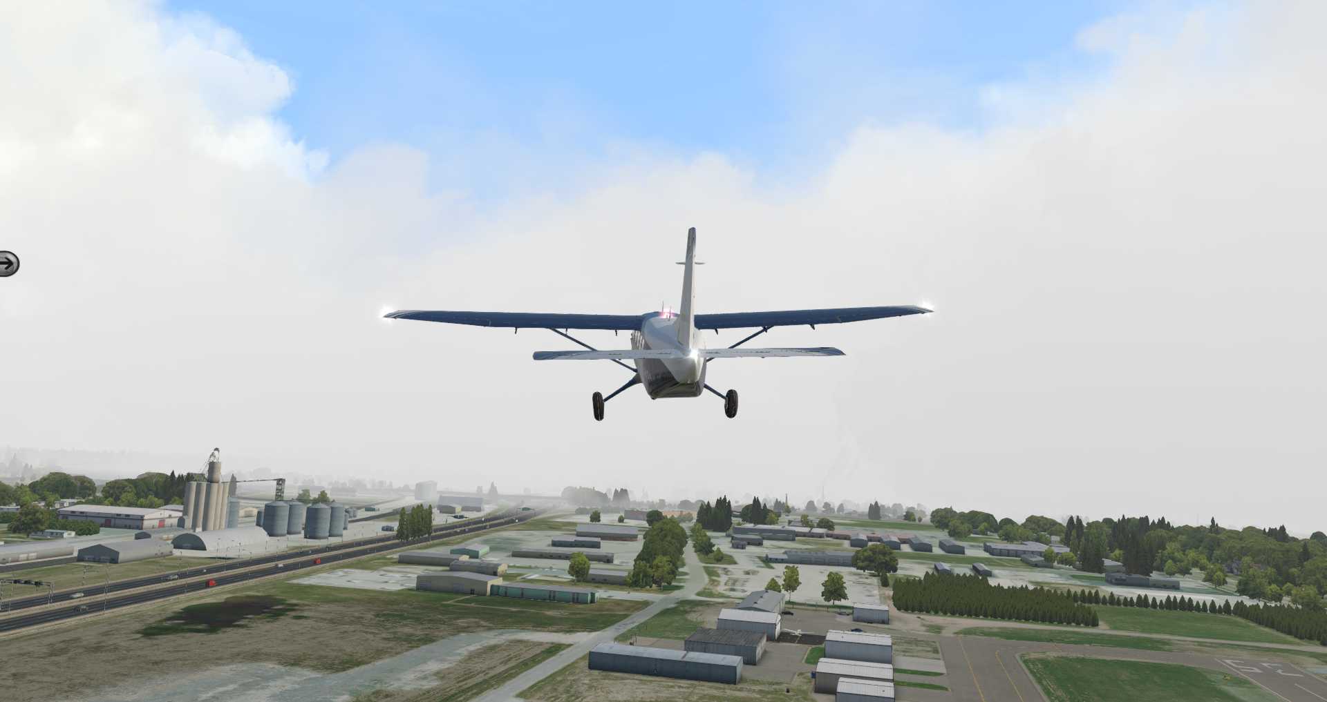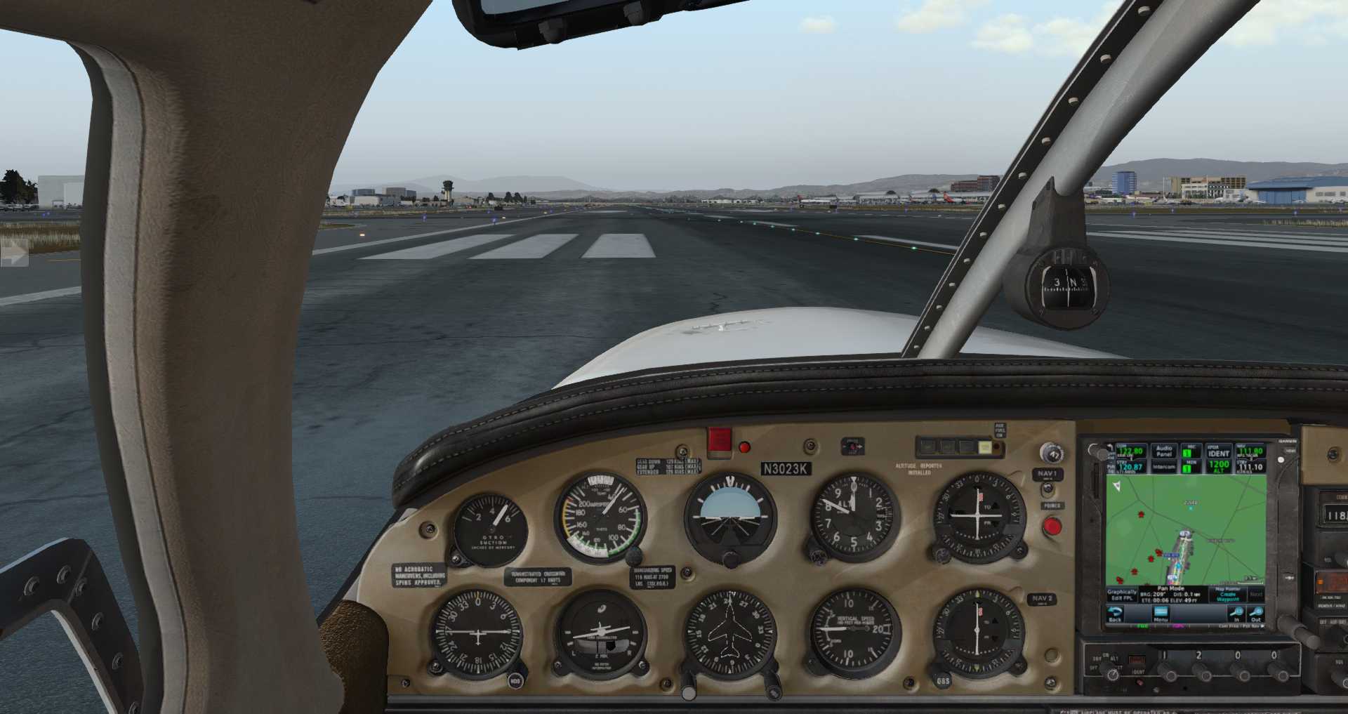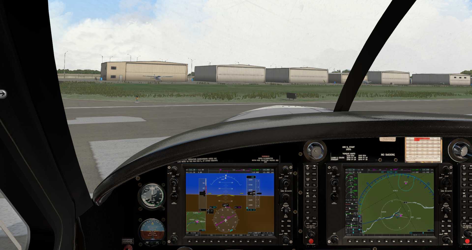 Schon im Auslieferungszustand von X-Plane 11 kann sich der Flughafen durchaus sehen lassen, wie wir hier bei einem Flug mit einer JustFlight Piper Arrow III sehen: