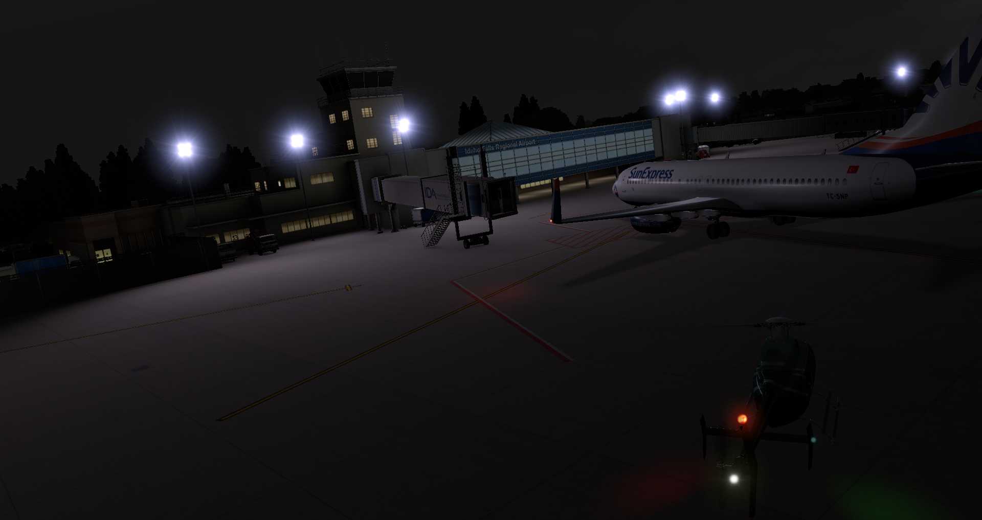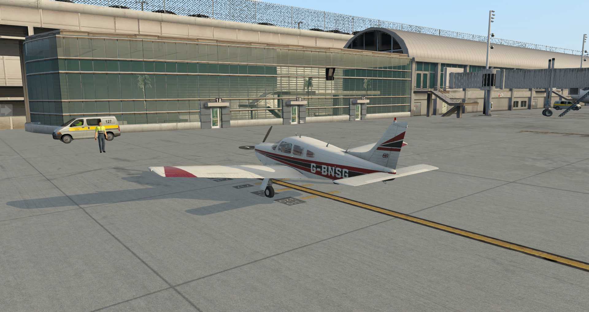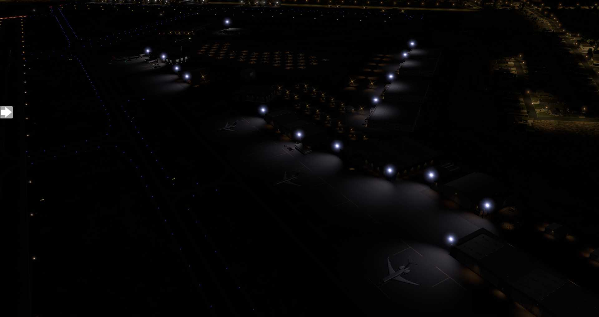 Auf den ersten Blick eher wenig. Im Vergleich zur alten Arrow III sind die PBR-Effekte noch ein wenig feiner und ausgewogener abgestimmt, auch der Schattenwurf und die Reflektionen sind besser in Szene gesetzt. Und das der Flughafen bei Nacht aufblüht ist kein Wunder, das alte Project Icarus war der Spezialist für eine ausgewogene Beleuchtung.