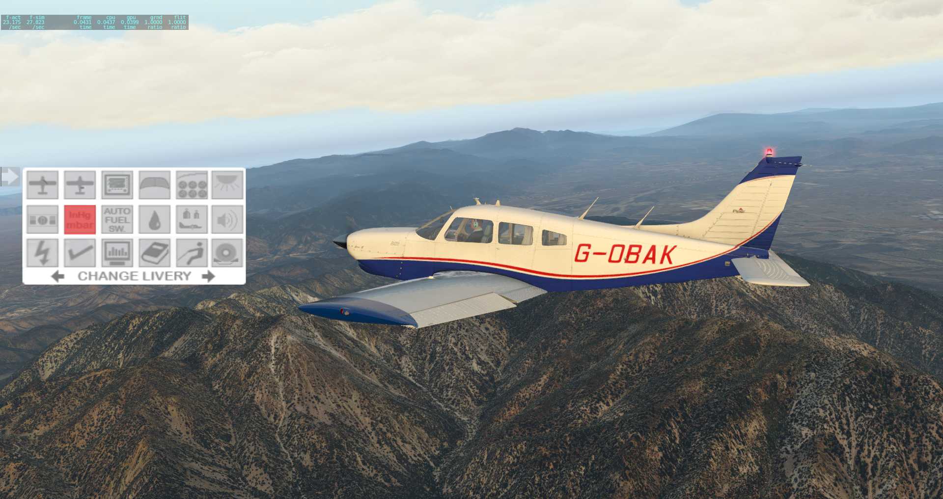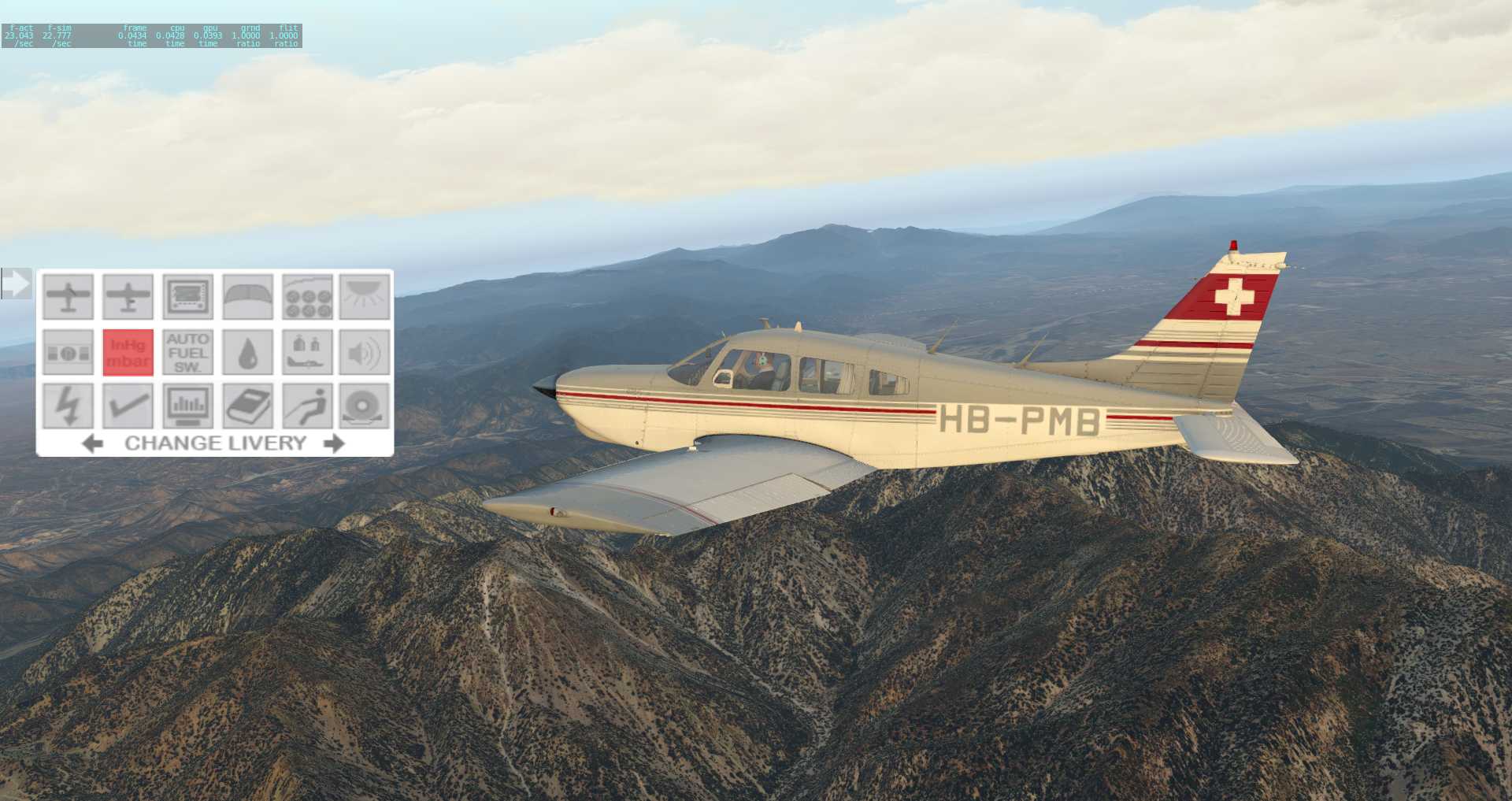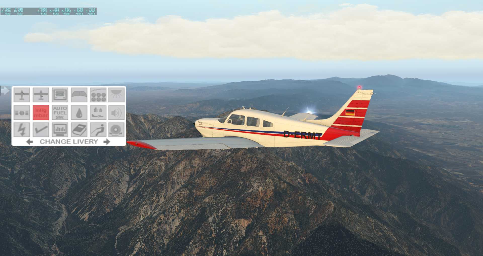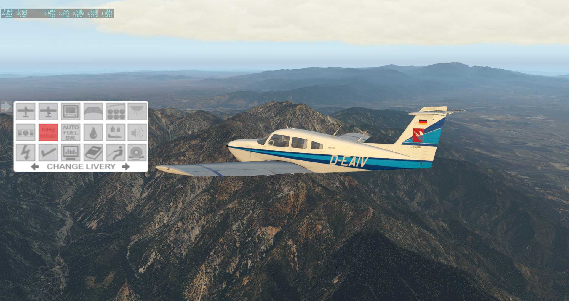 Beim Durchschalten der Liveries wird auch deutlich, wie zwischen den Turbo III und Turbo IV Varianten unterschieden wird. Anhand der Liveries. Einige der Liveries sind Turbo III und andere Liveries Turbo IV. Und diese unterscheiden sich auch tatsächlich vom Flugverhalten. Dabei kennt X-Plane von sich aus keine Möglichkeit durch das Auswechseln der Liveries auch gleich das Flugverhalten zu rekonfigurieren. Doch Thranda hat es dennoch geschafft.