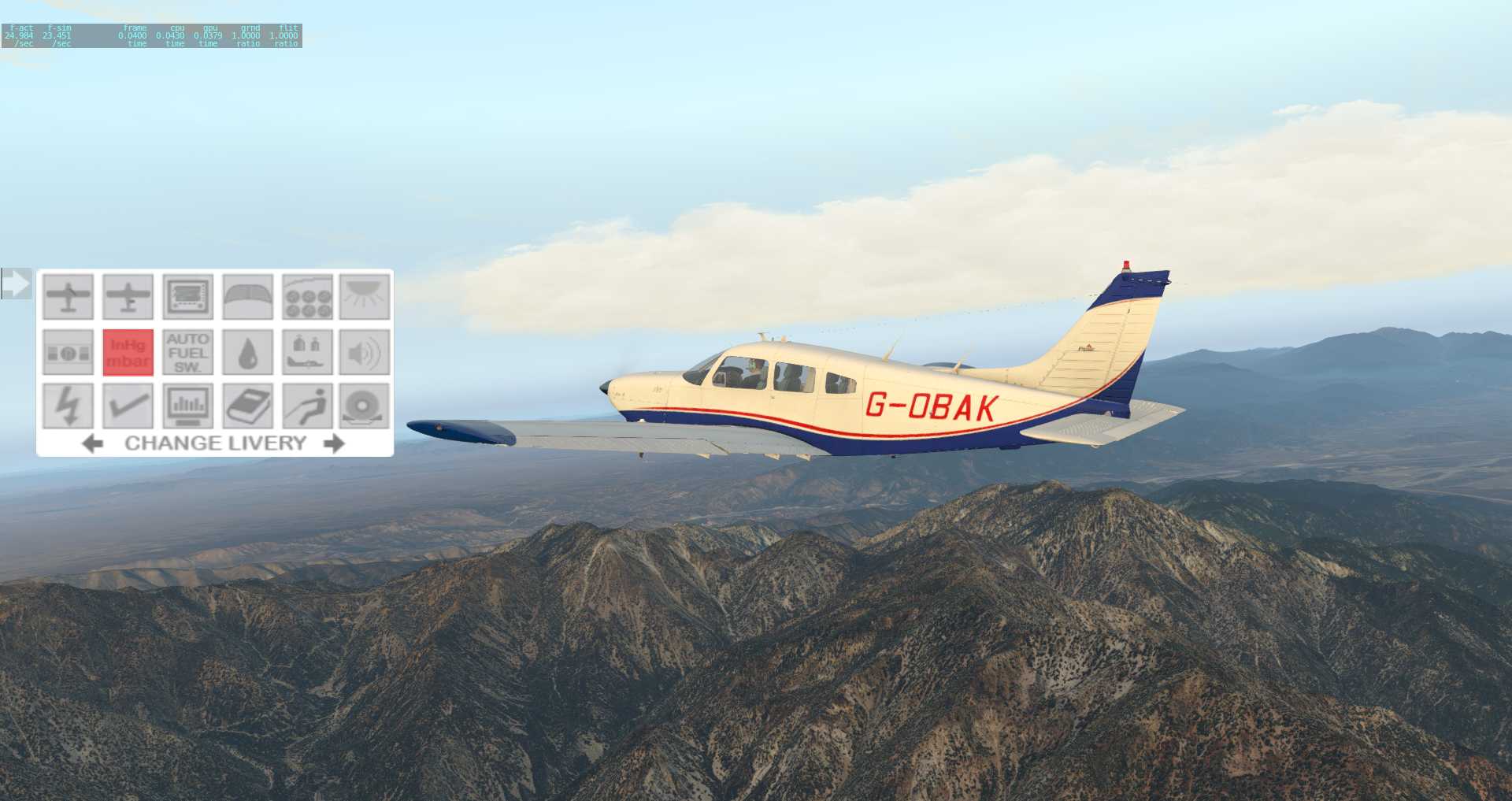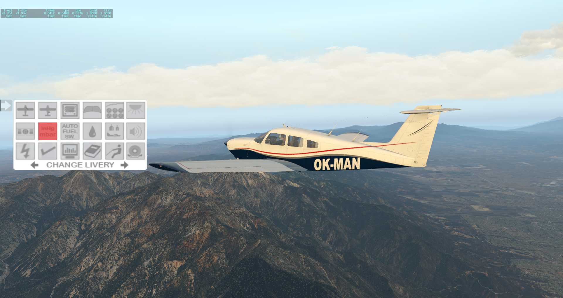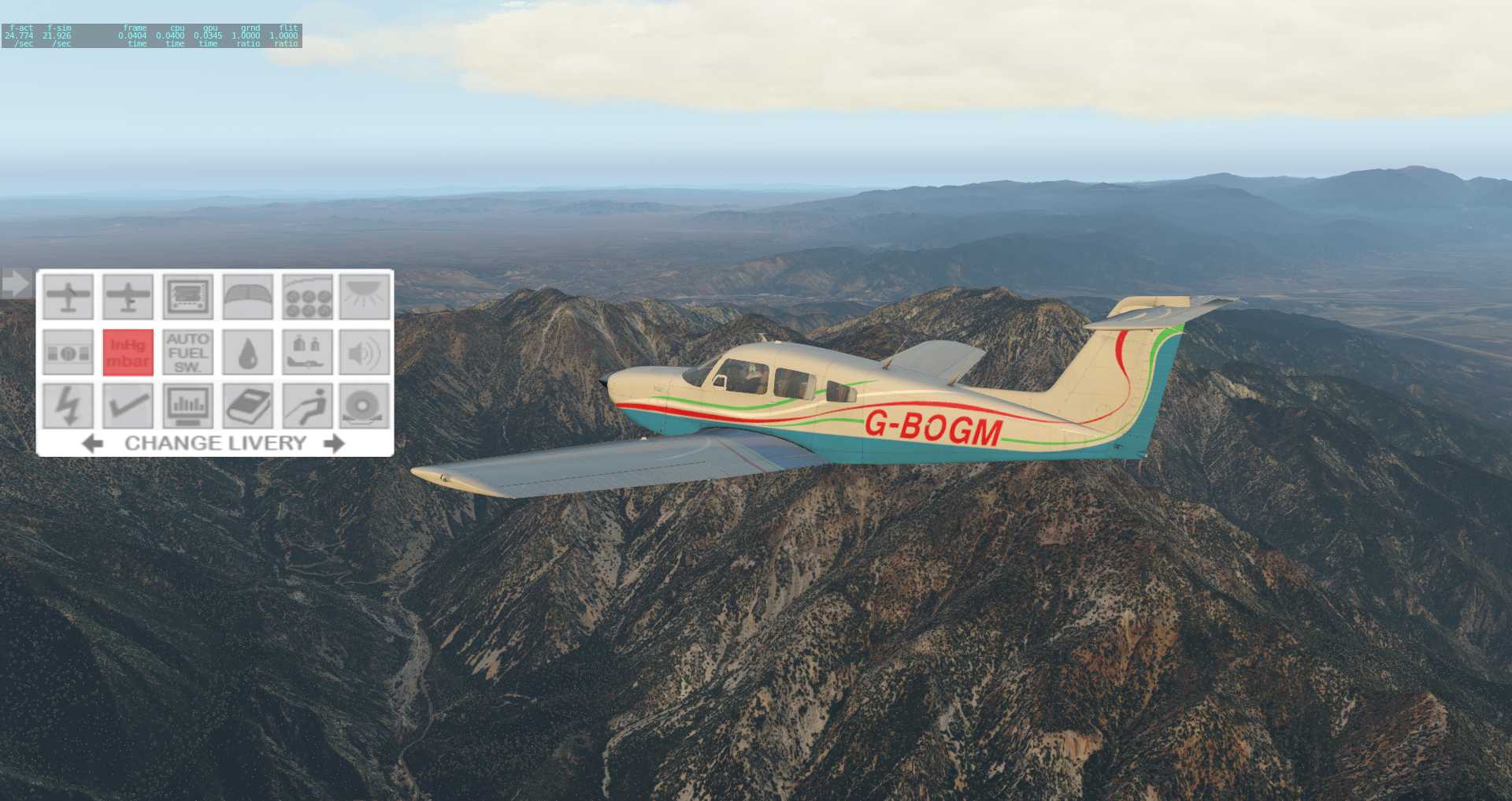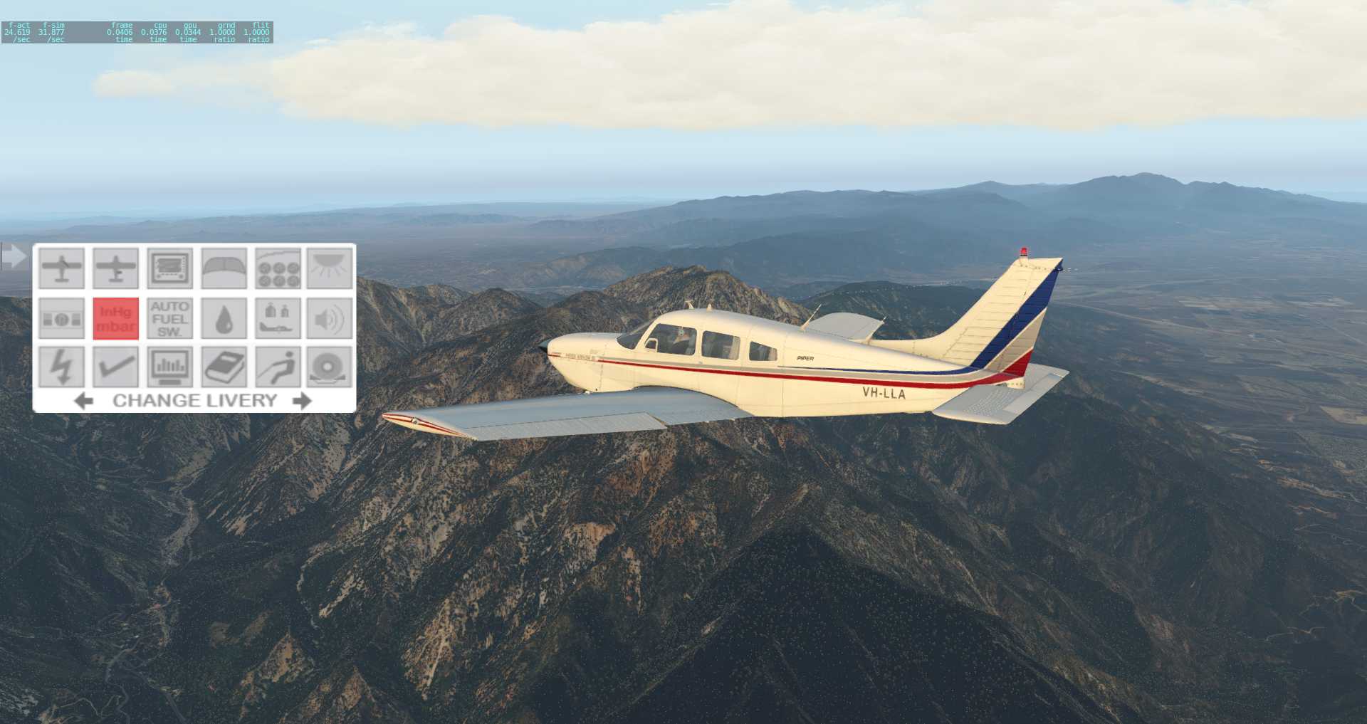 Beim Durchschalten der Liveries wird auch deutlich, wie zwischen den Turbo III und Turbo IV Varianten unterschieden wird. Anhand der Liveries. Einige der Liveries sind Turbo III und andere Liveries Turbo IV. Und diese unterscheiden sich auch tatsächlich vom Flugverhalten. Dabei kennt X-Plane von sich aus keine Möglichkeit durch das Auswechseln der Liveries auch gleich das Flugverhalten zu rekonfigurieren. Doch Thranda hat es dennoch geschafft.
