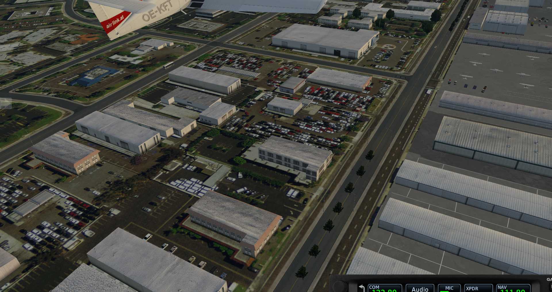 Wie man unschwer erkennt hat auch die X-Plane Fassung die 2048×2048 Texturen von P3D erhalten, wie auch die sehr ordentlichen Gebäude und Fahrzeuge.