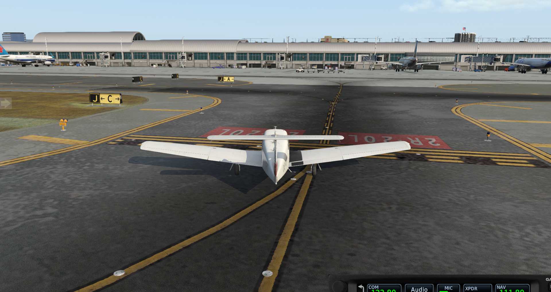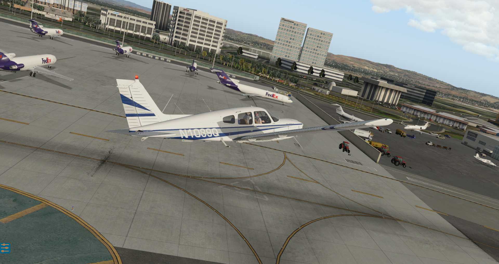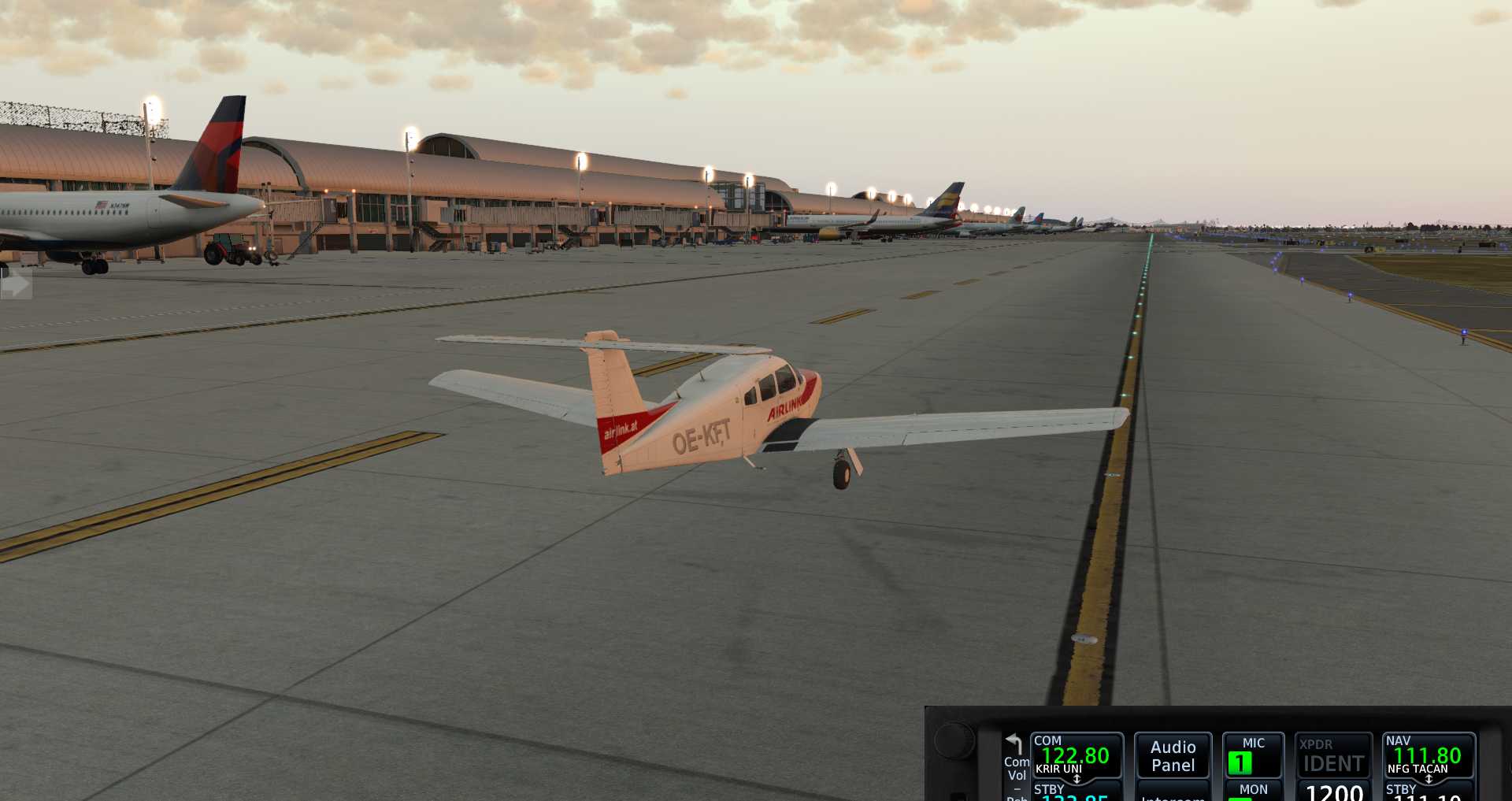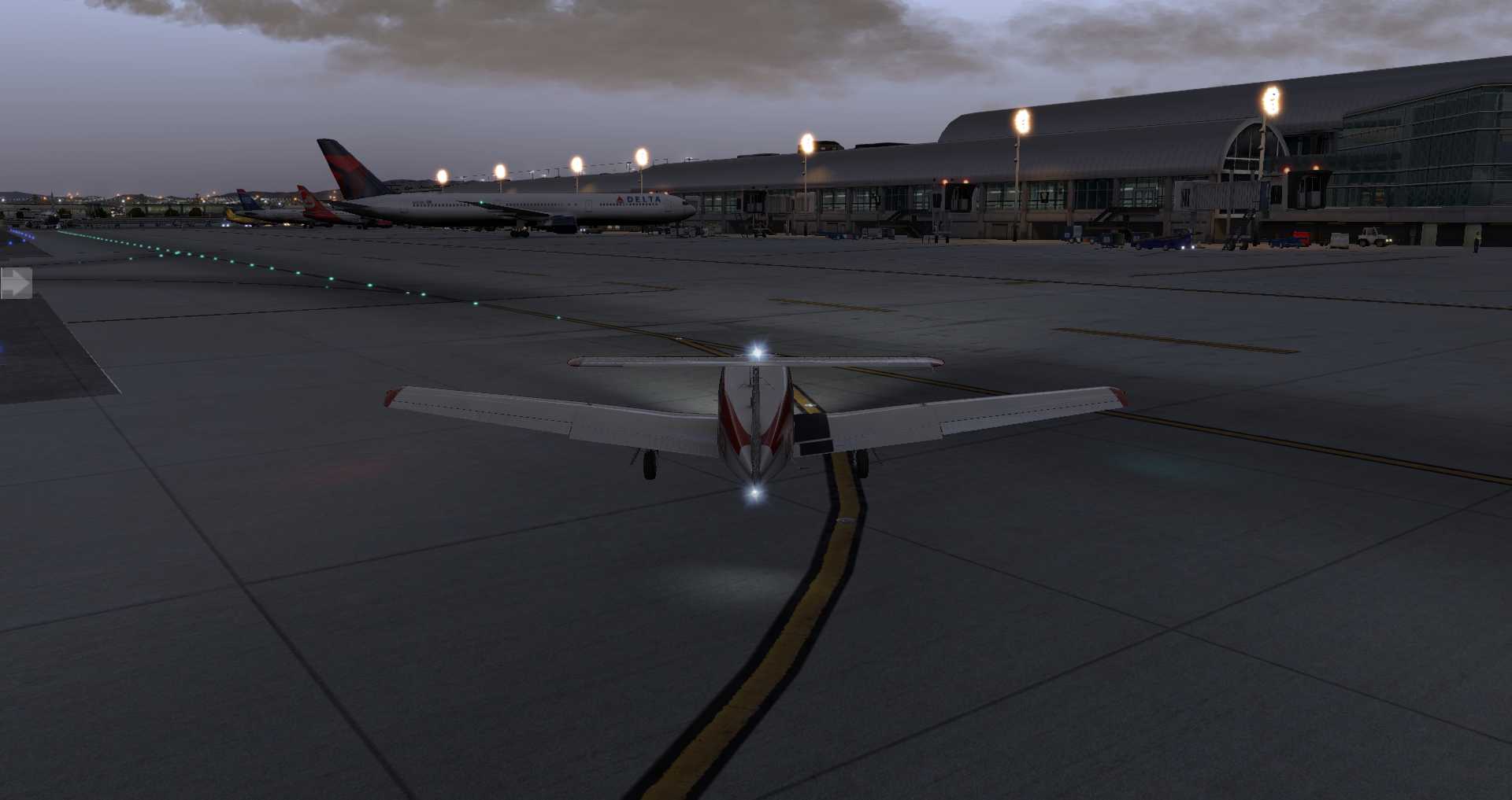 Wir starten vom gegenüberliegenden GA Terminal und auch entgegen der normalen Startrichtung, um besser das Terminal und die andere Seite des Flughafens zu sehen. Außerdem wurde der Sonnenstand korrigiert, damit wir keine starken Lichtreflektionen bekommen. Schließlich ist es teilweise bewölkt. Hier als Video: