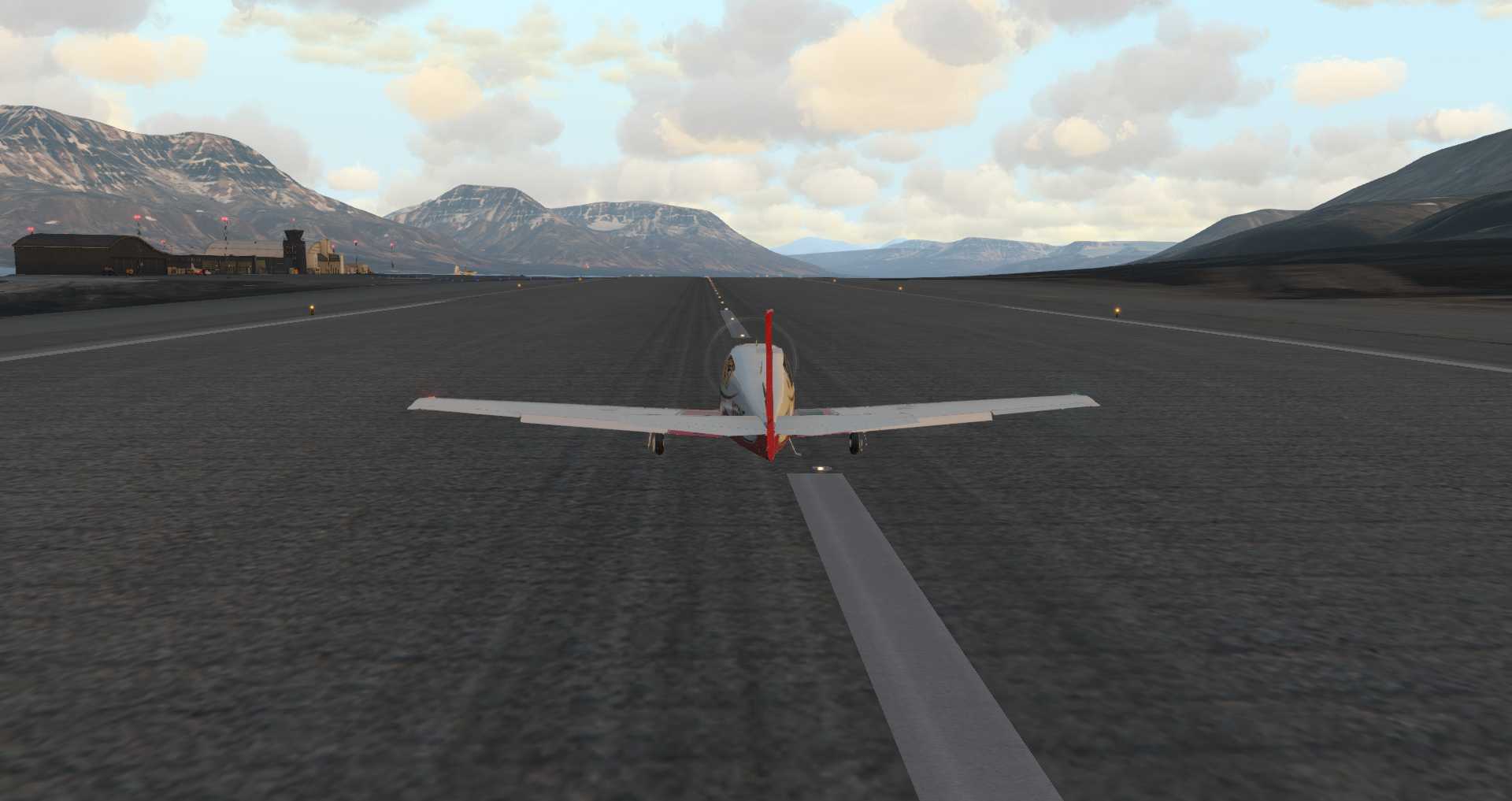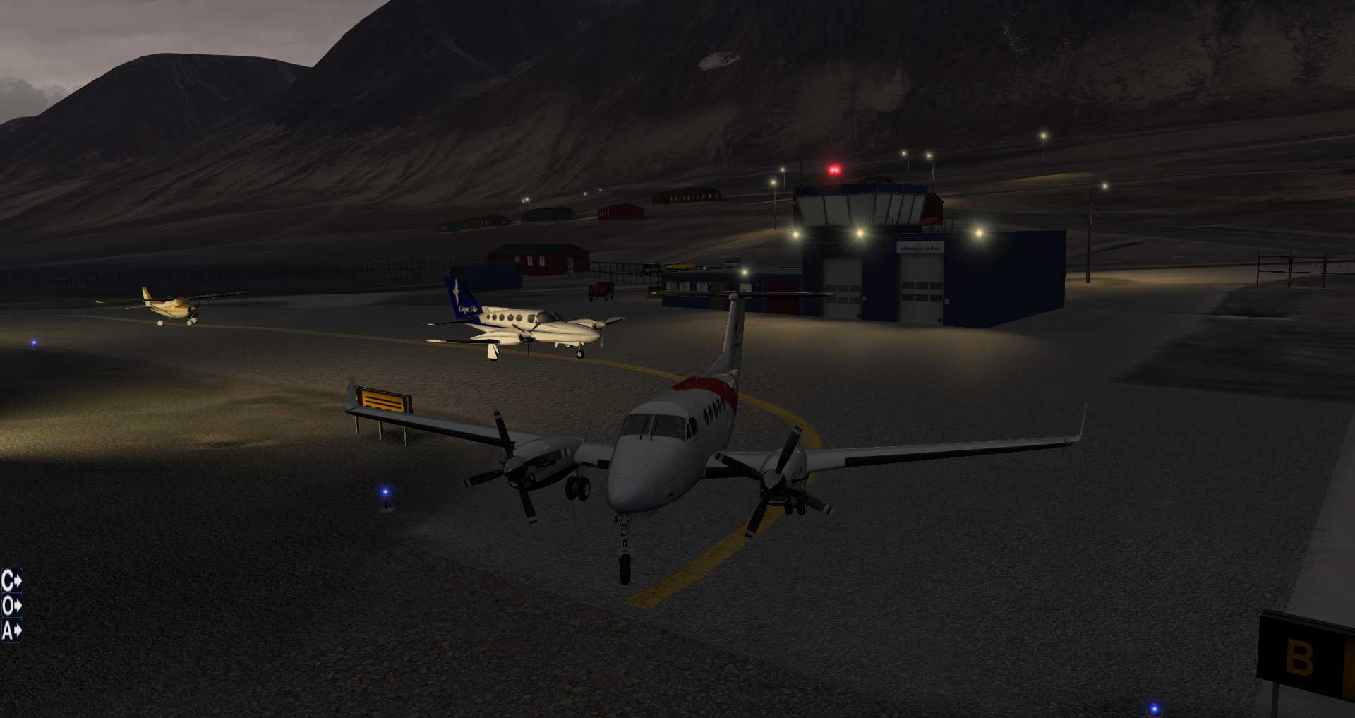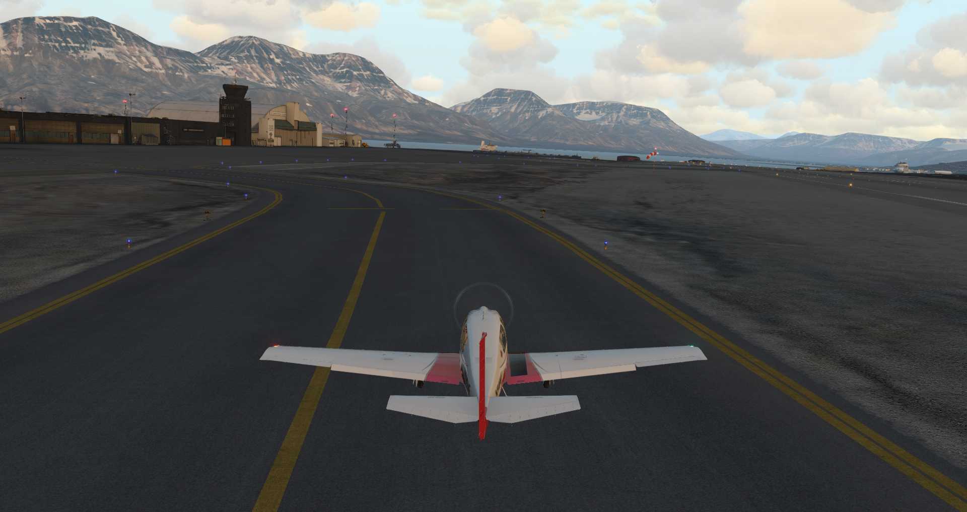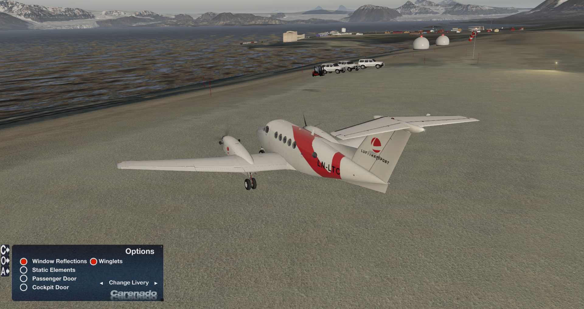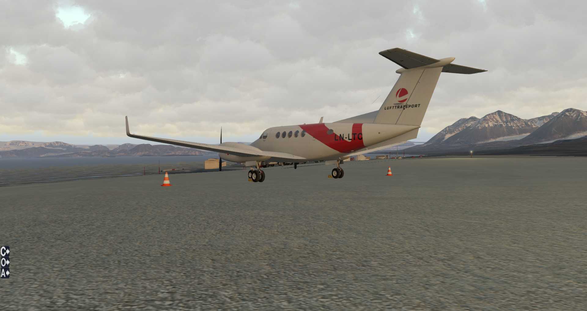 Als erstes starten wir mit einer Carenado B-200 mit der mitgelieferten Livery von Ny-Alesund (ENAS) nach Svea (ENSA).