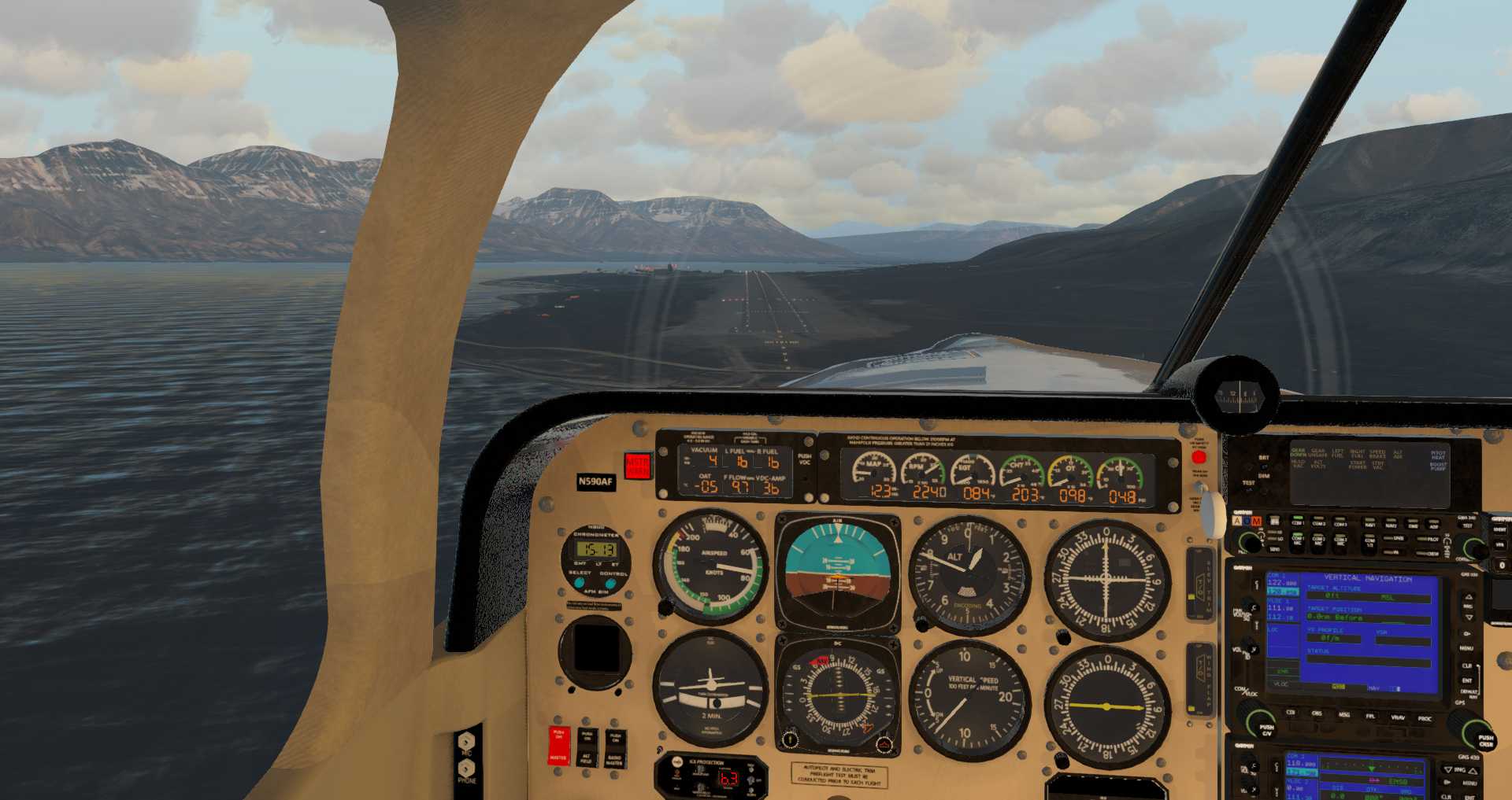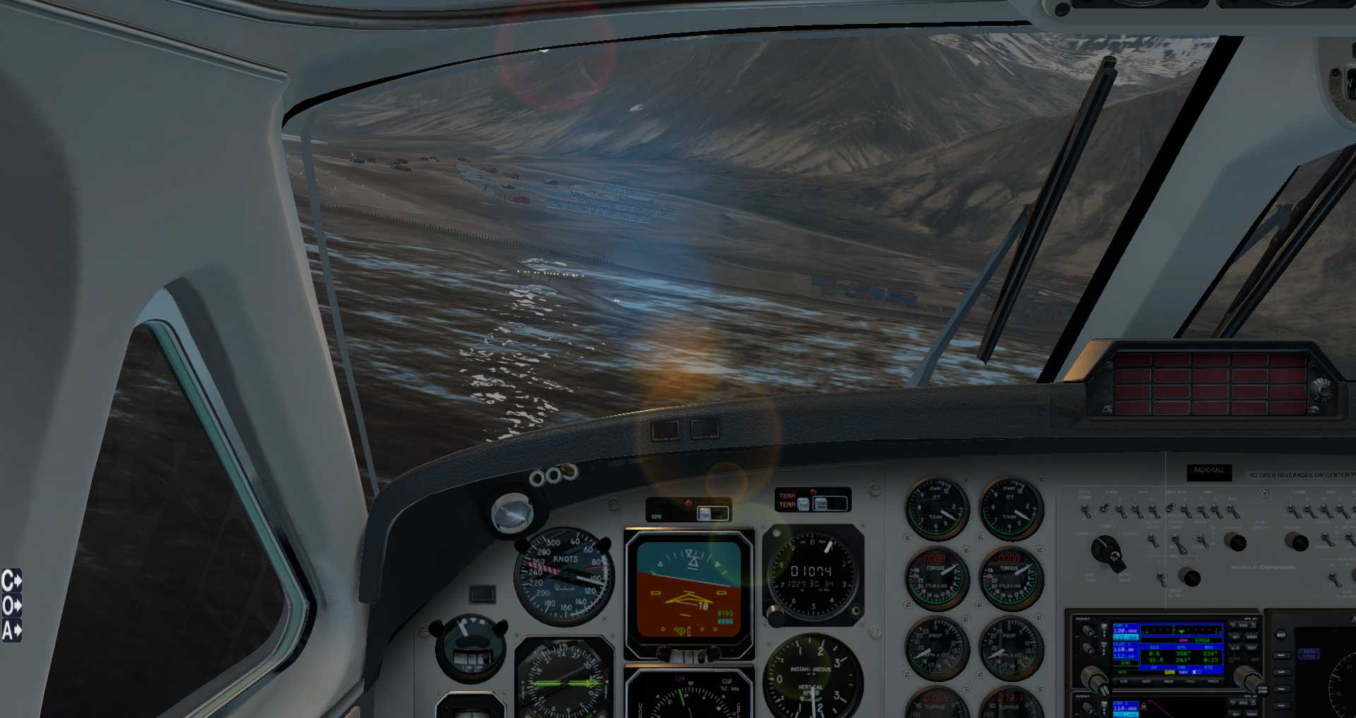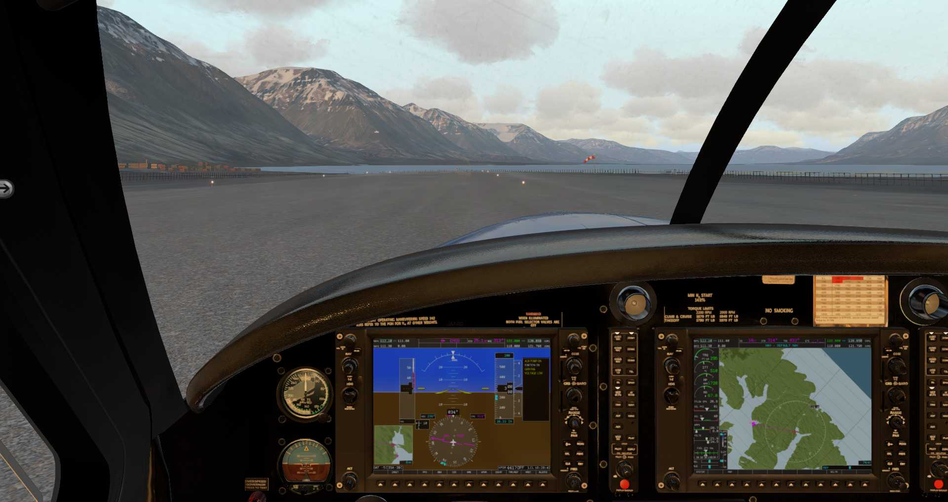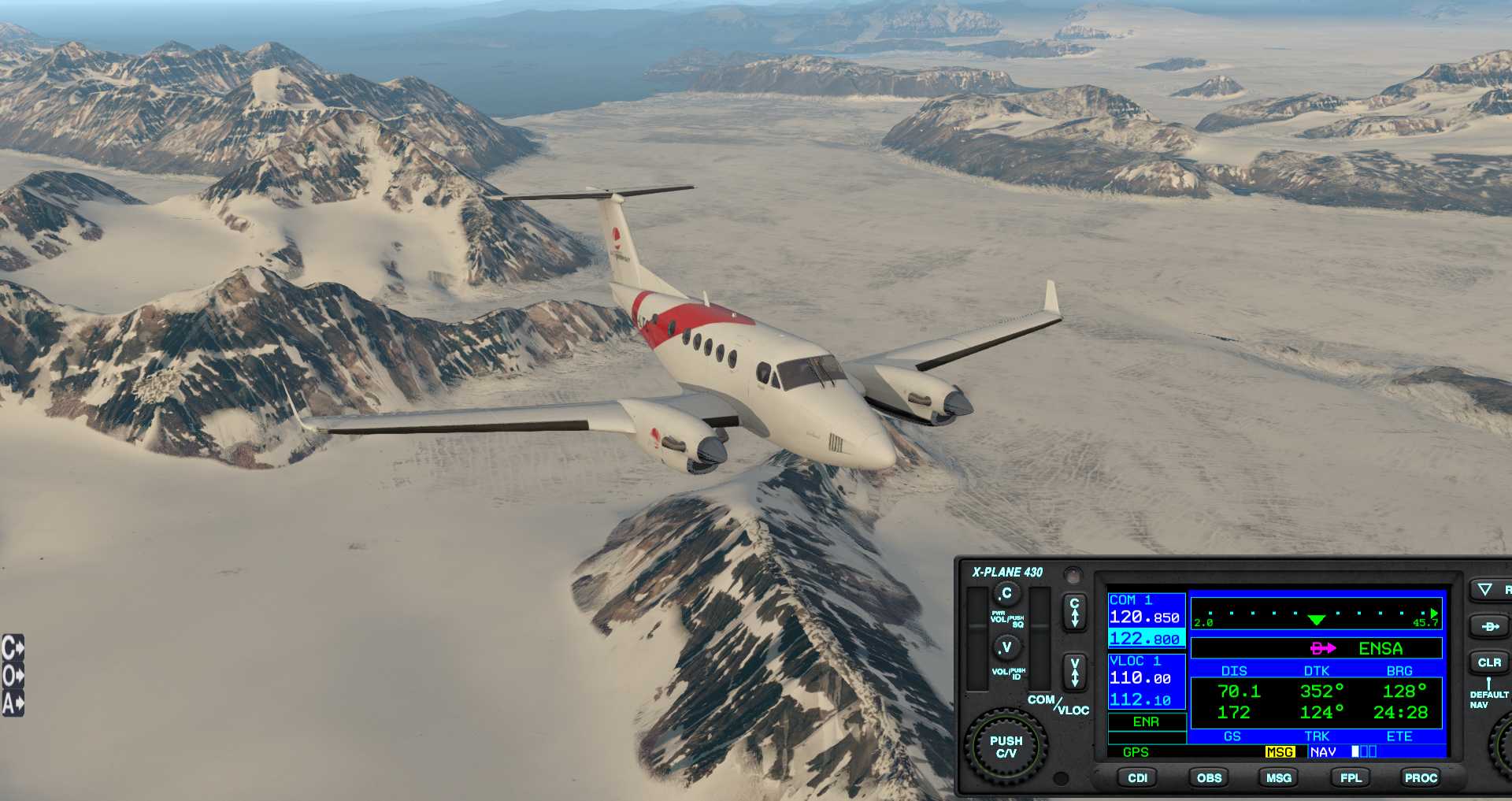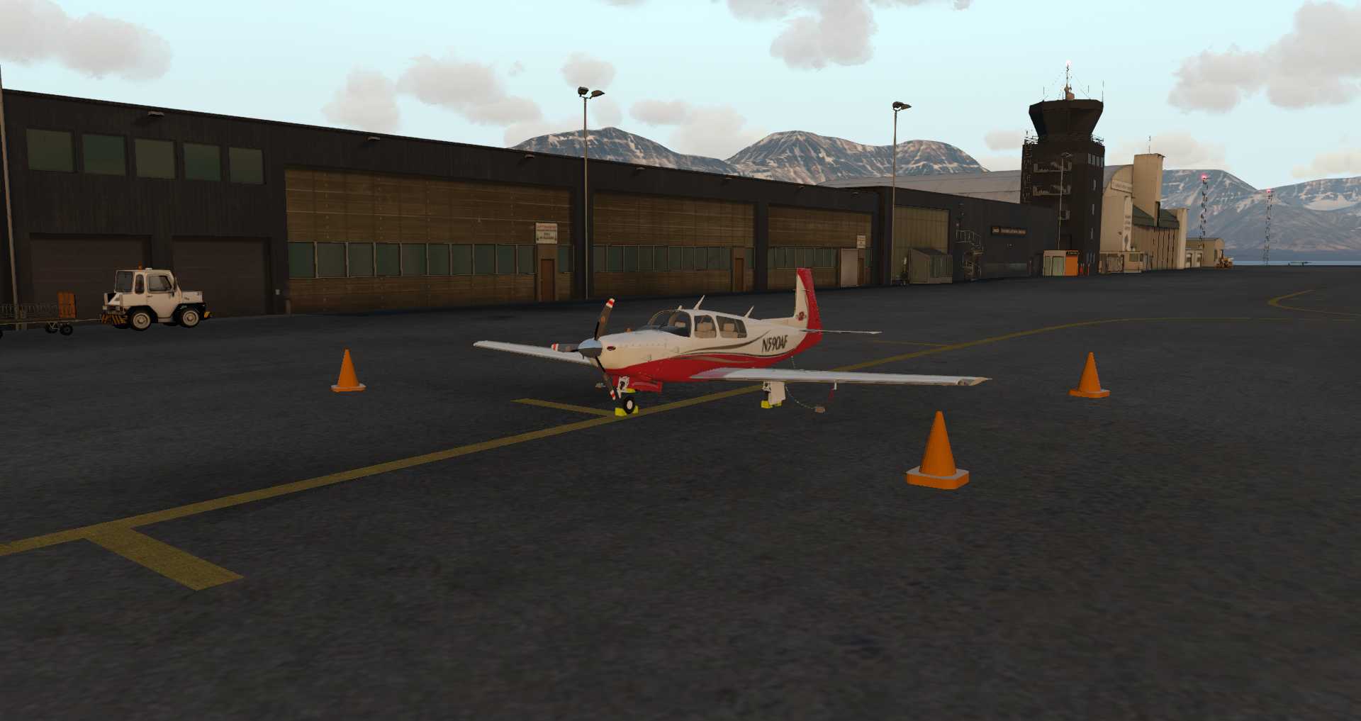 Als erstes starten wir mit einer Carenado B-200 mit der mitgelieferten Livery von Ny-Alesund (ENAS) nach Svea (ENSA).