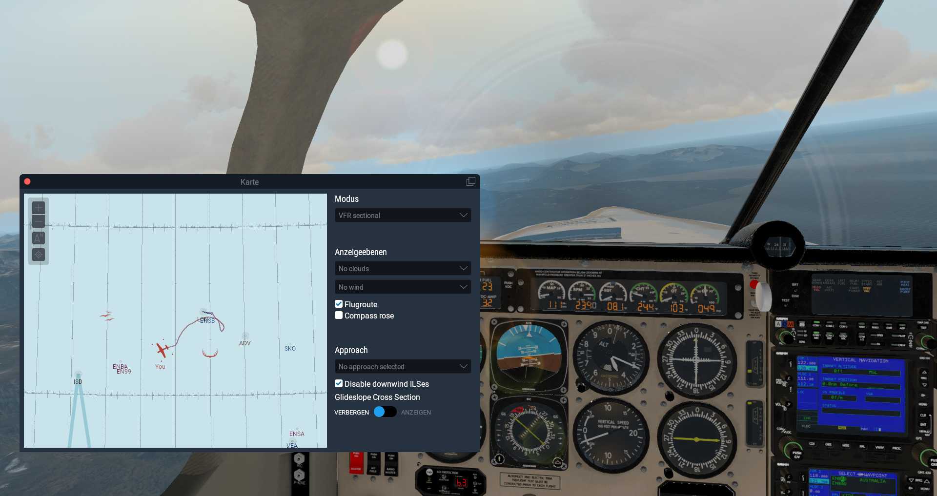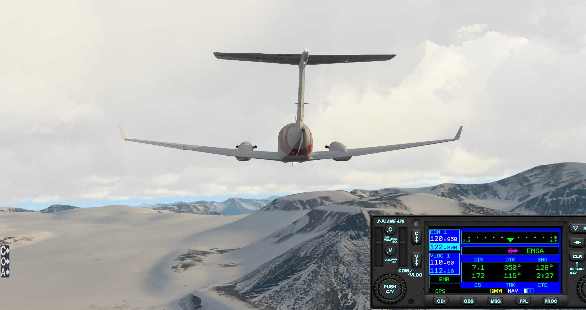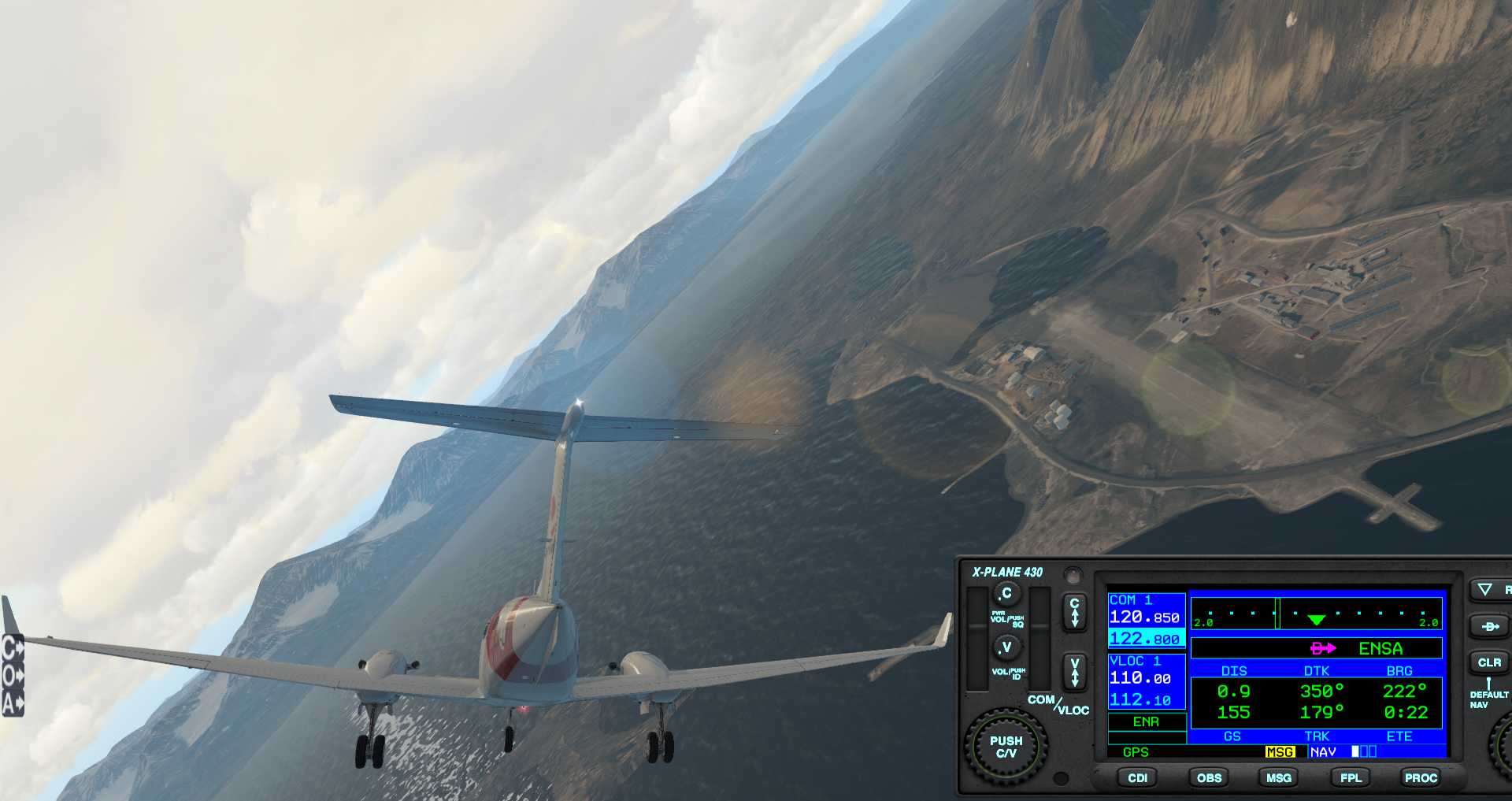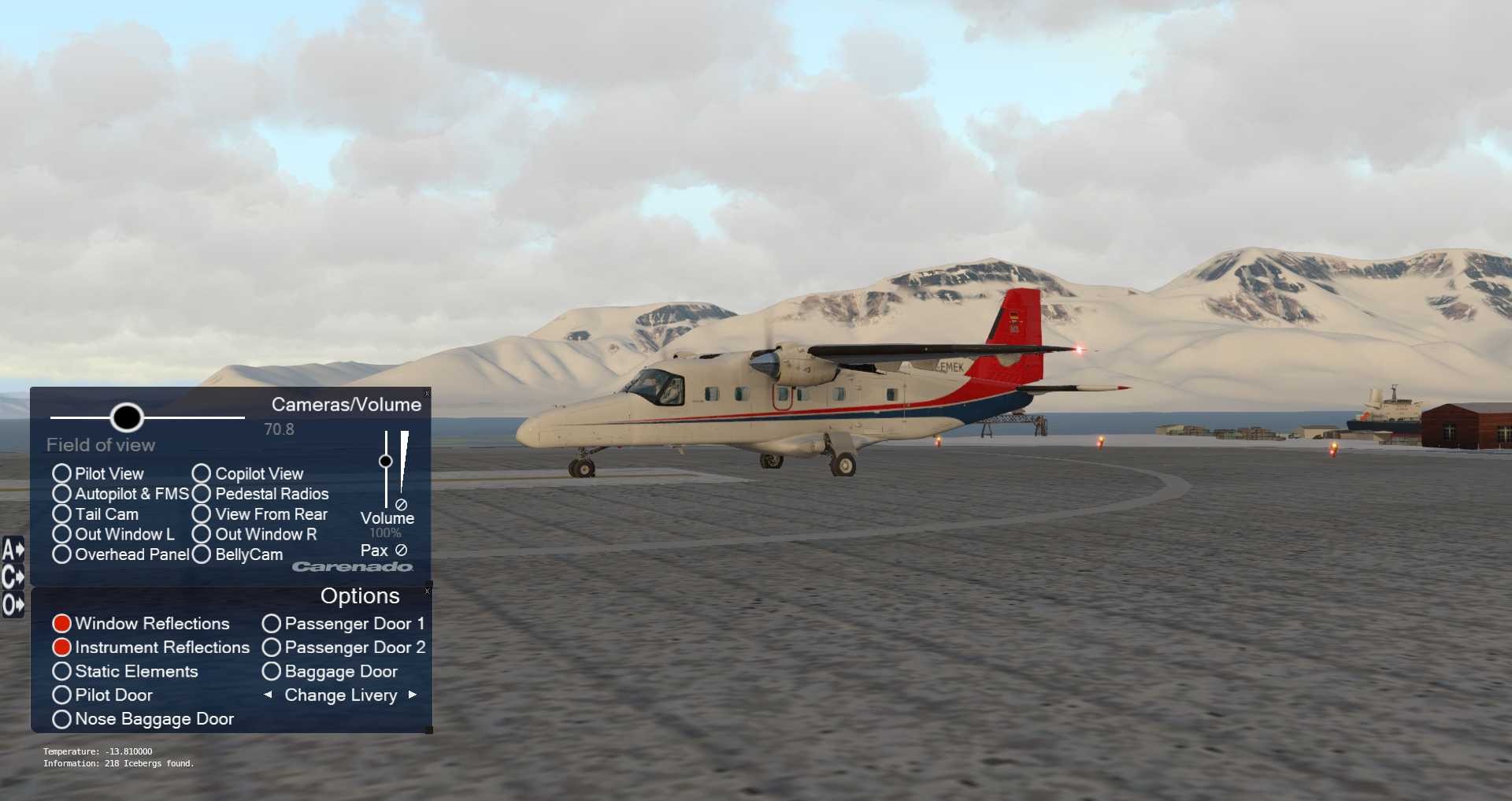Als erstes starten wir mit einer Carenado B-200 mit der mitgelieferten Livery von Ny-Alesund (ENAS) nach Svea (ENSA).