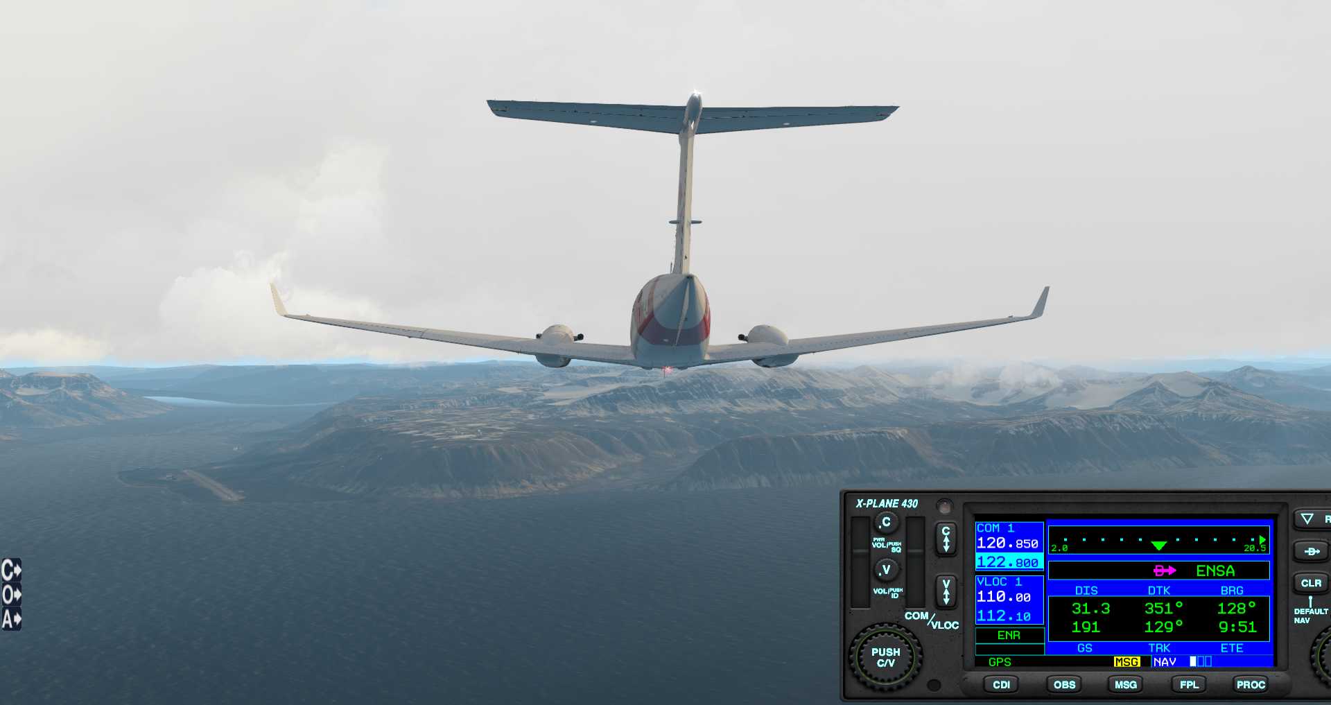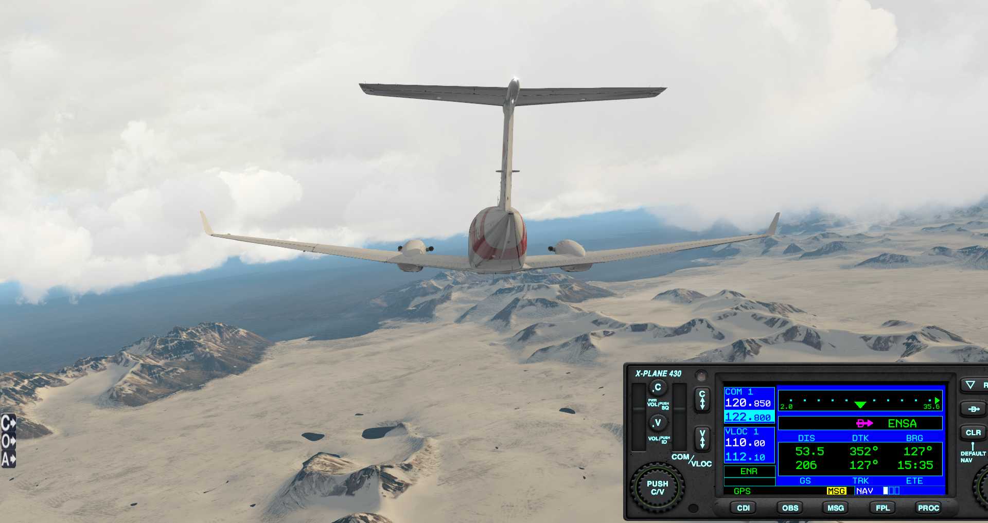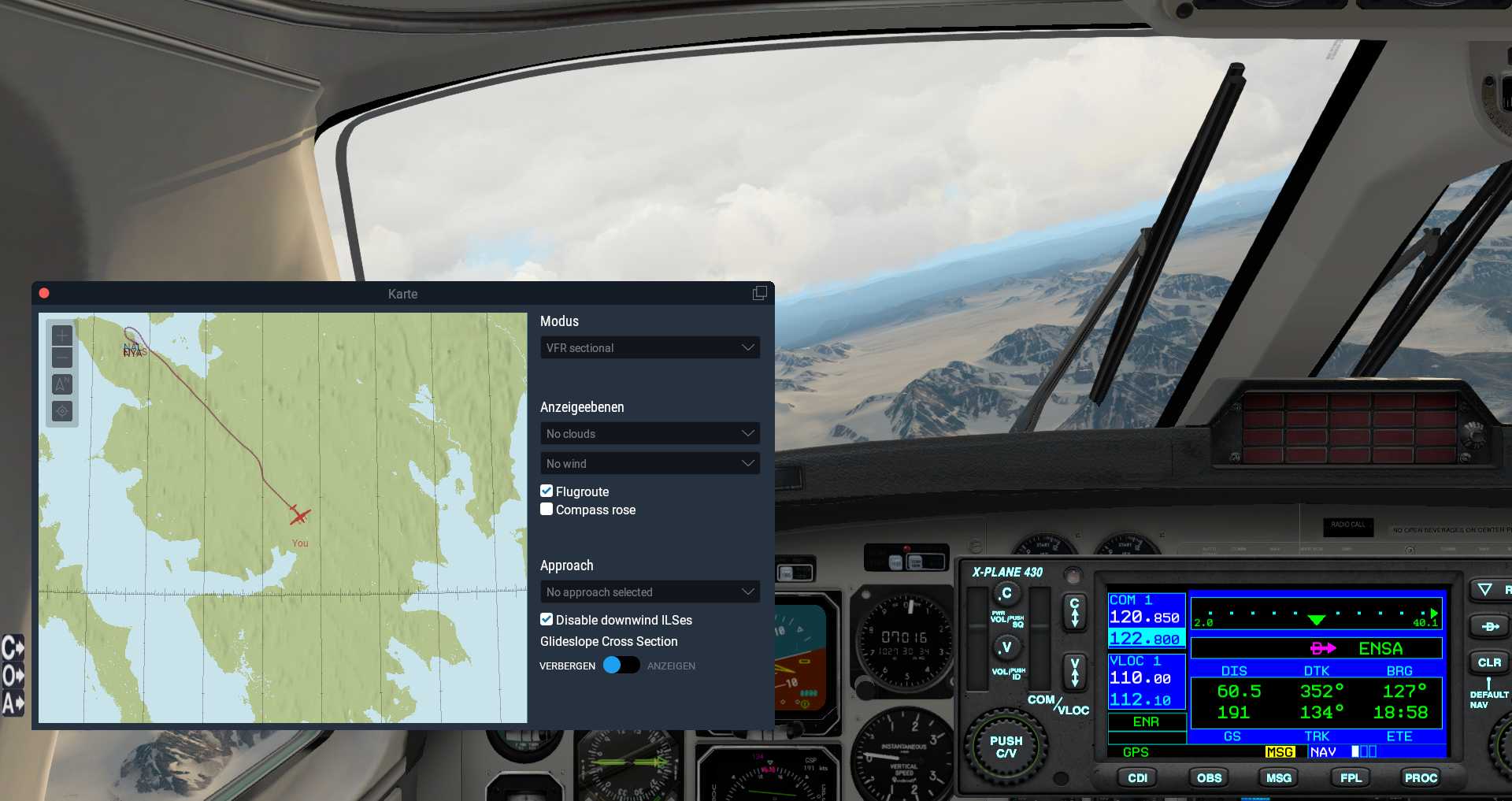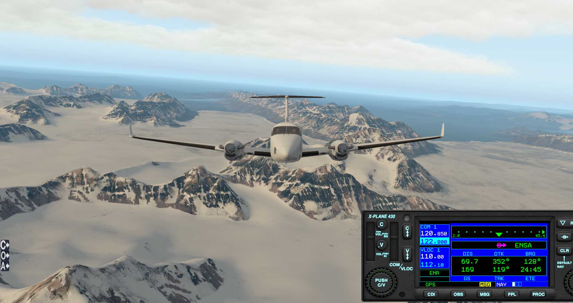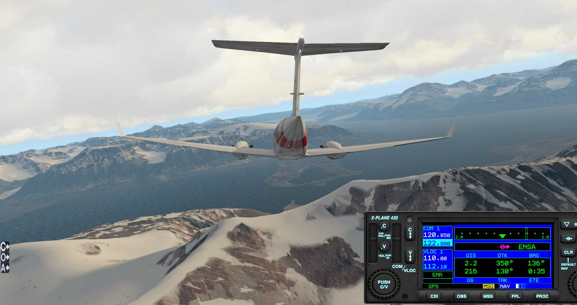 Als erstes starten wir mit einer Carenado B-200 mit der mitgelieferten Livery von Ny-Alesund (ENAS) nach Svea (ENSA).
