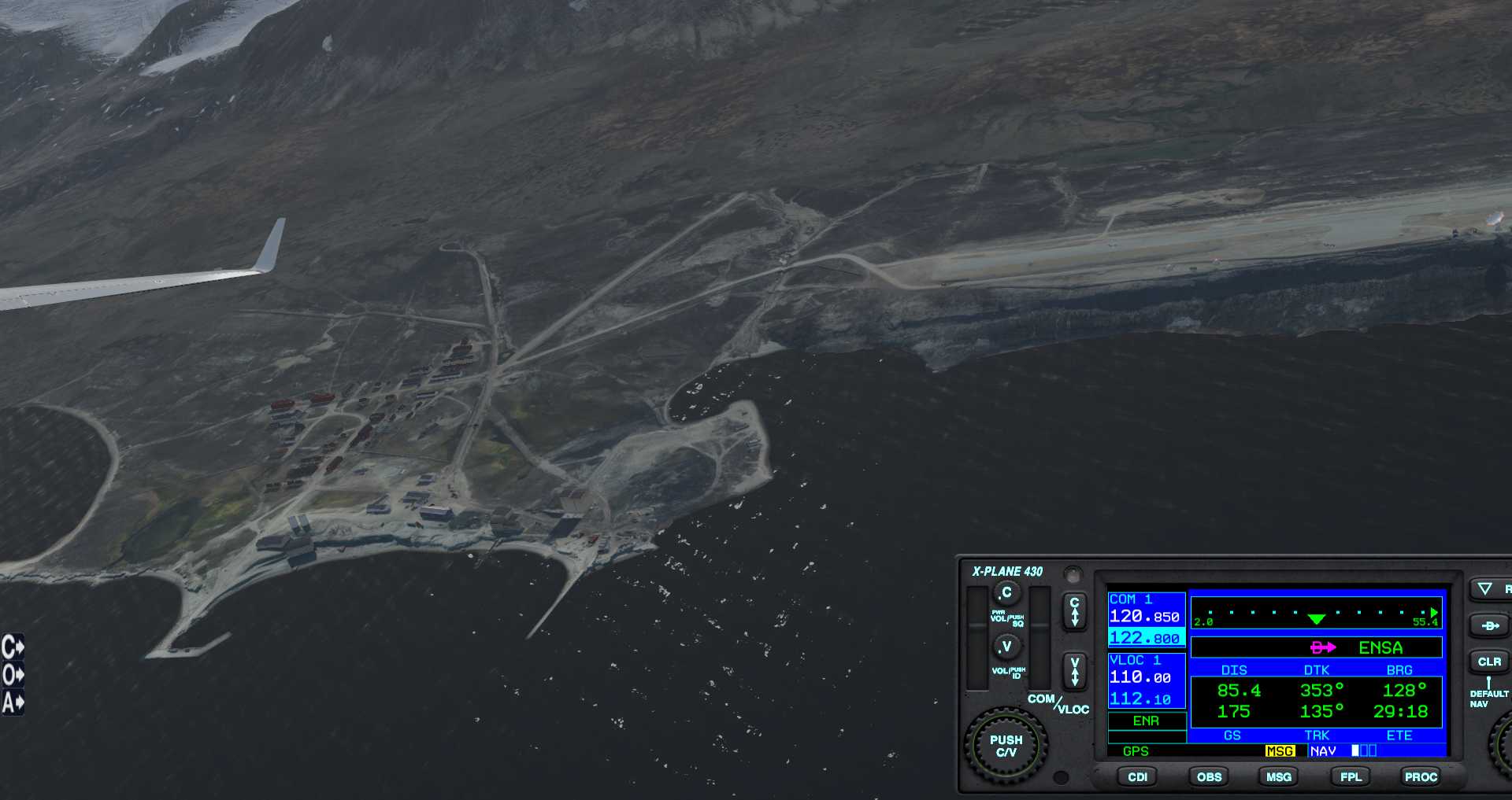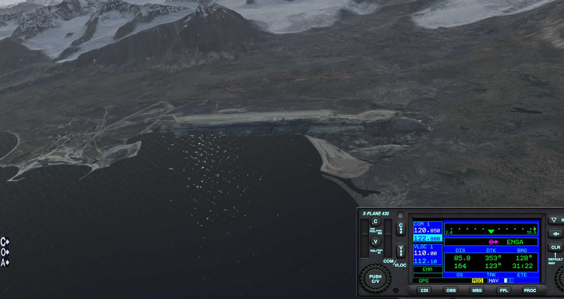 Spitzbergen ,auf norwegisch Svalbard, ist eine Inselgruppe zwischen dem 74. und 81. nördlichen Breitengrad. Es ist damit nicht in den internen Karten von X-Plane 11 enthalten, die beim 71 Breitengrad enden.