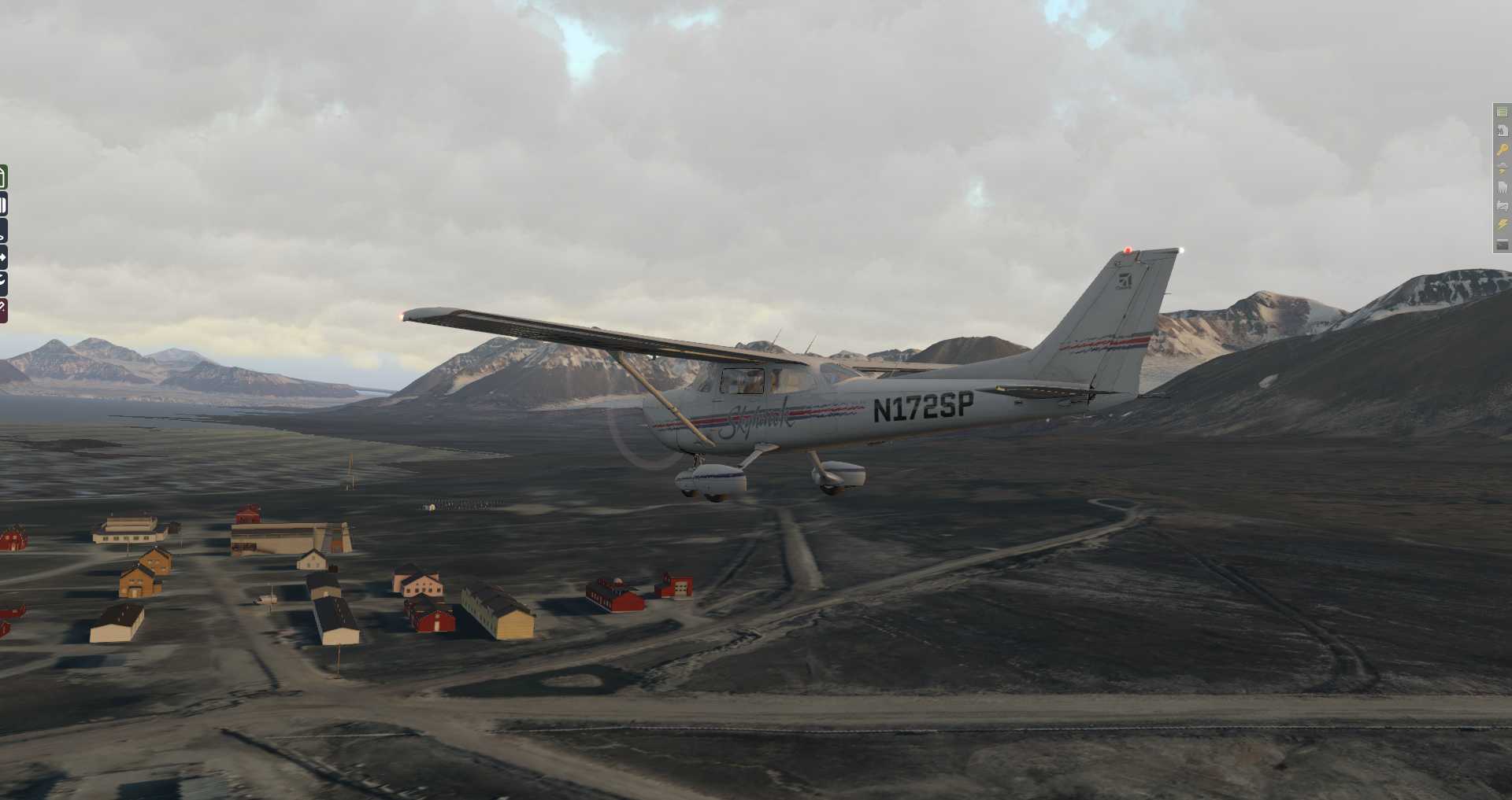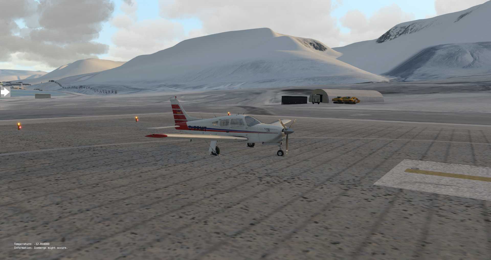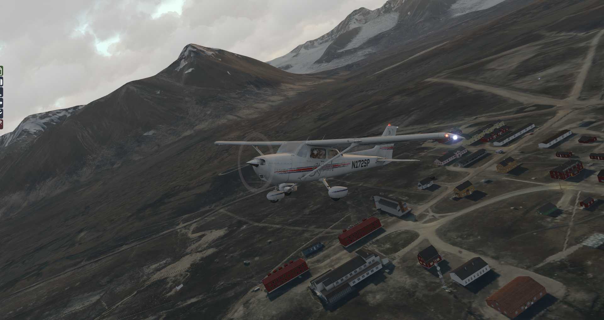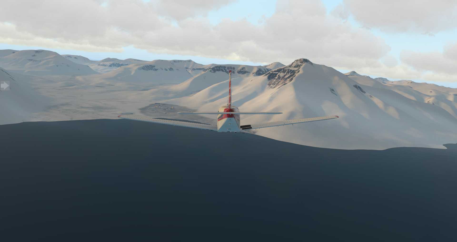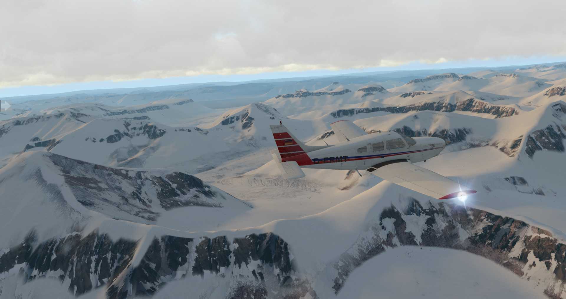 Wir starten mit einer JustFlight Turbo Arrow III in Longyear für einen Flug zu den Pyramiden.