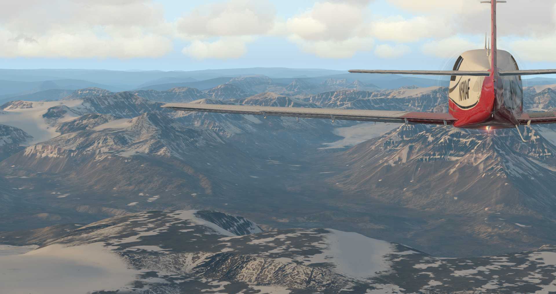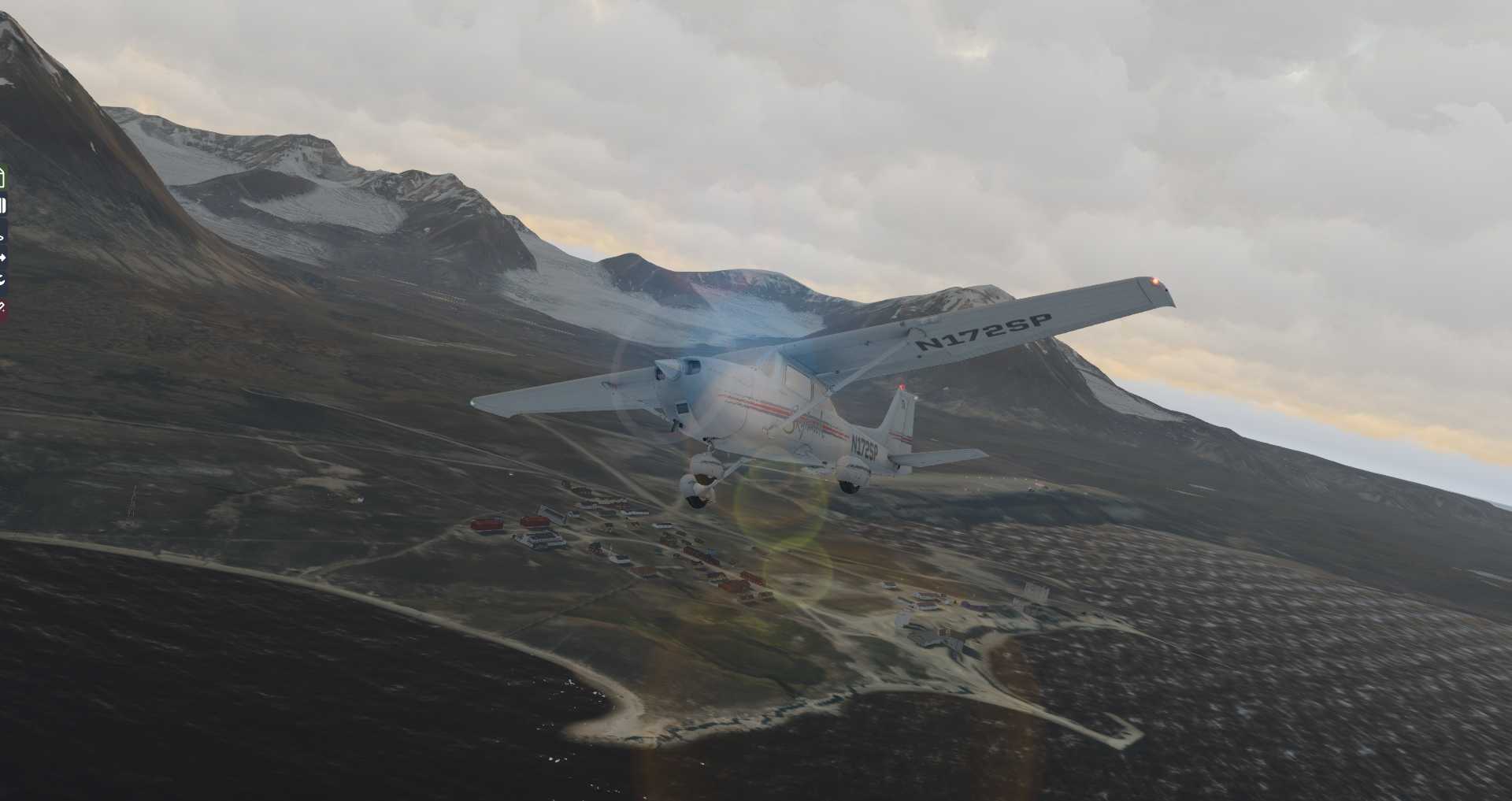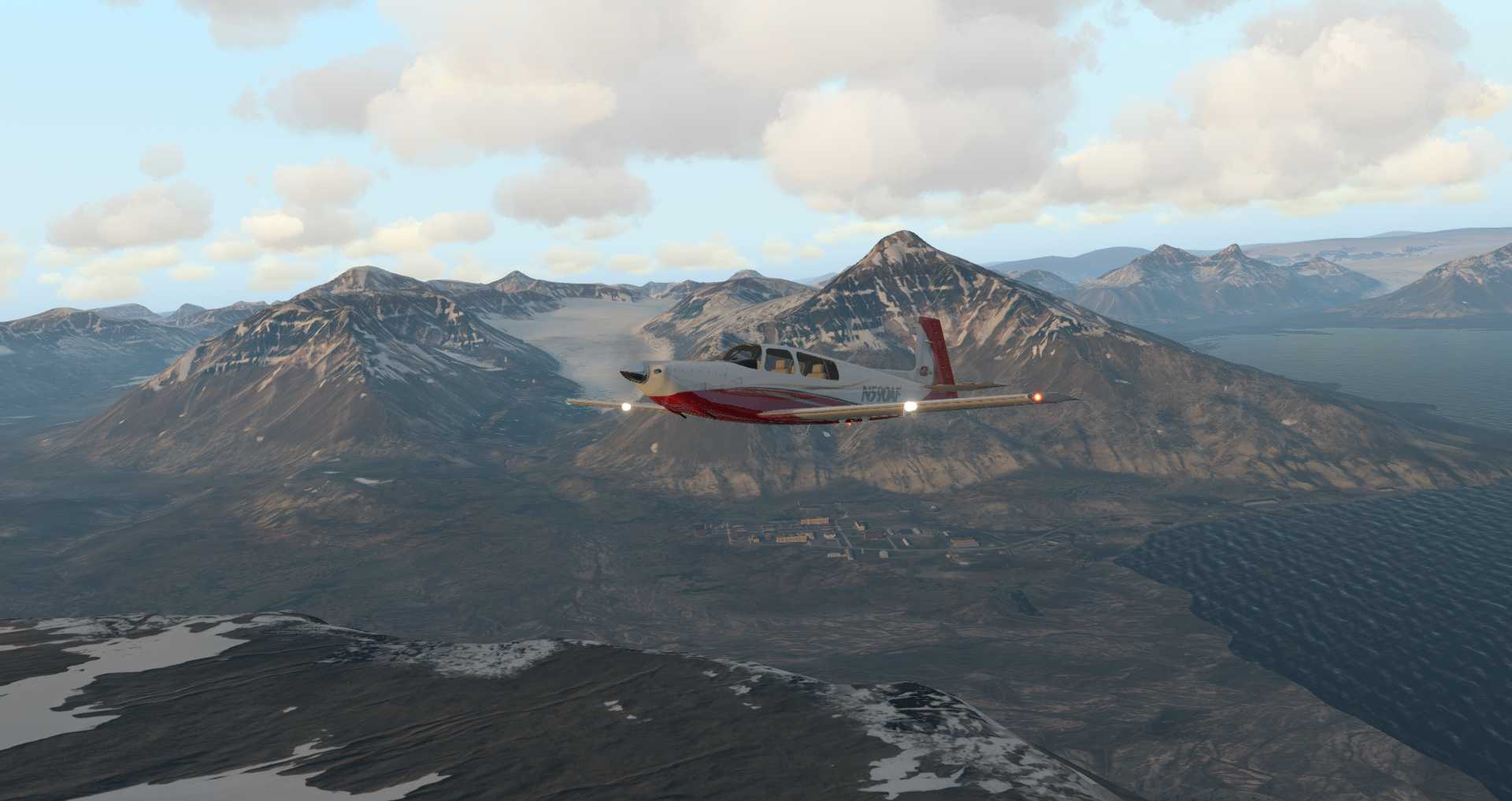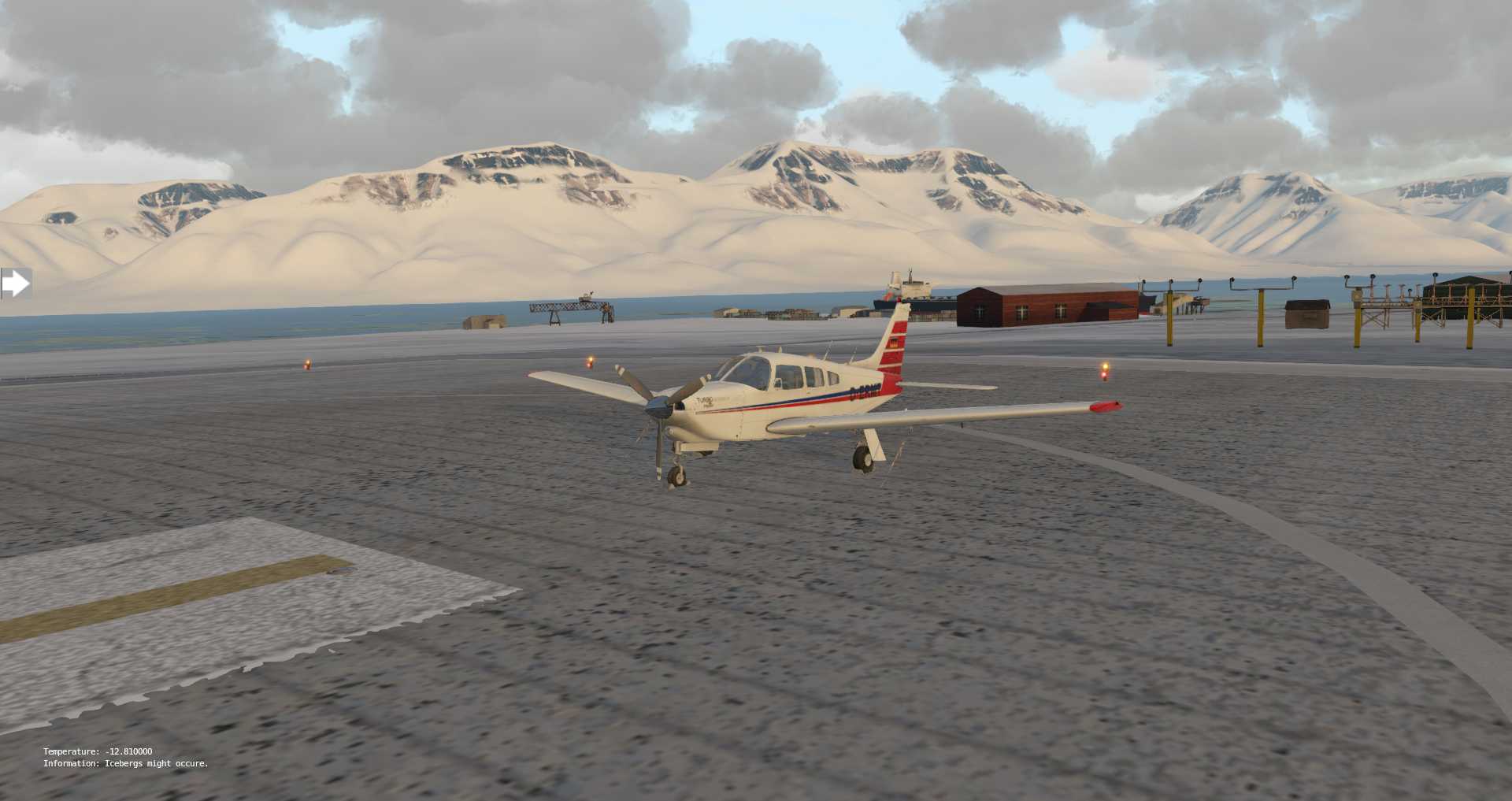 Wir starten mit einer JustFlight Turbo Arrow III in Longyear für einen Flug zu den Pyramiden.