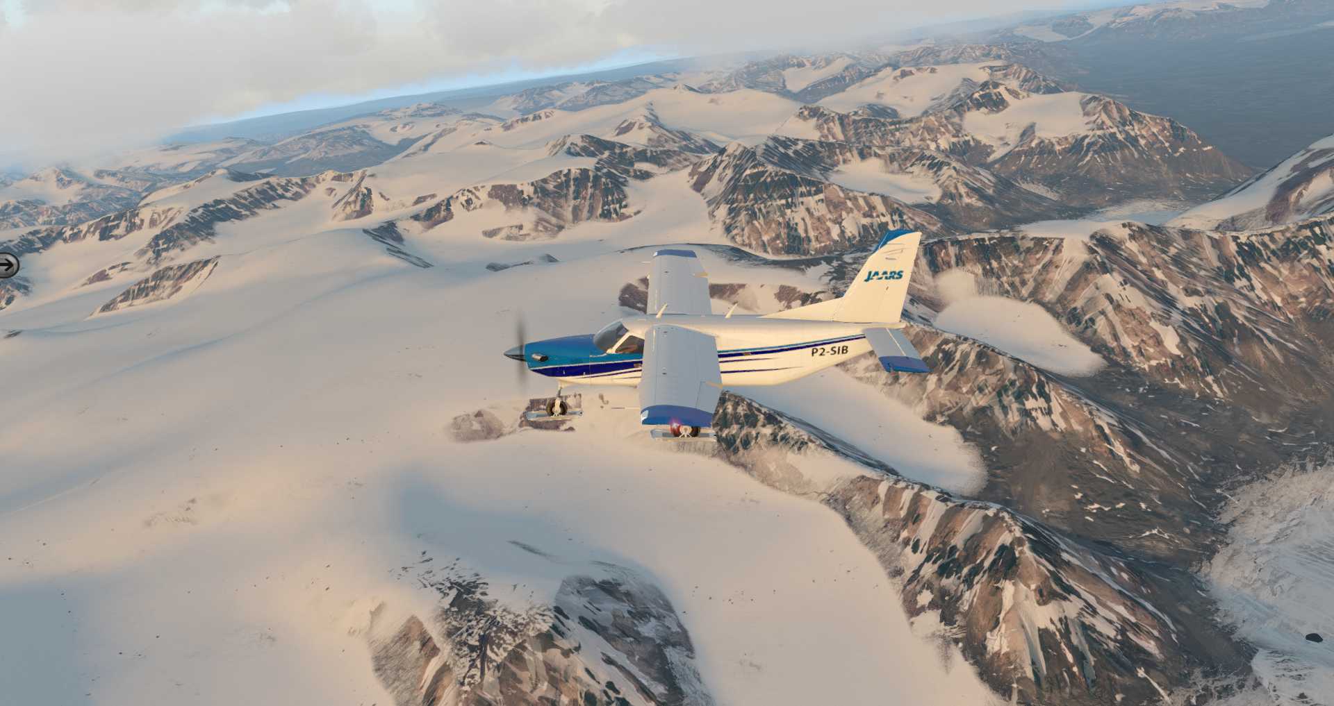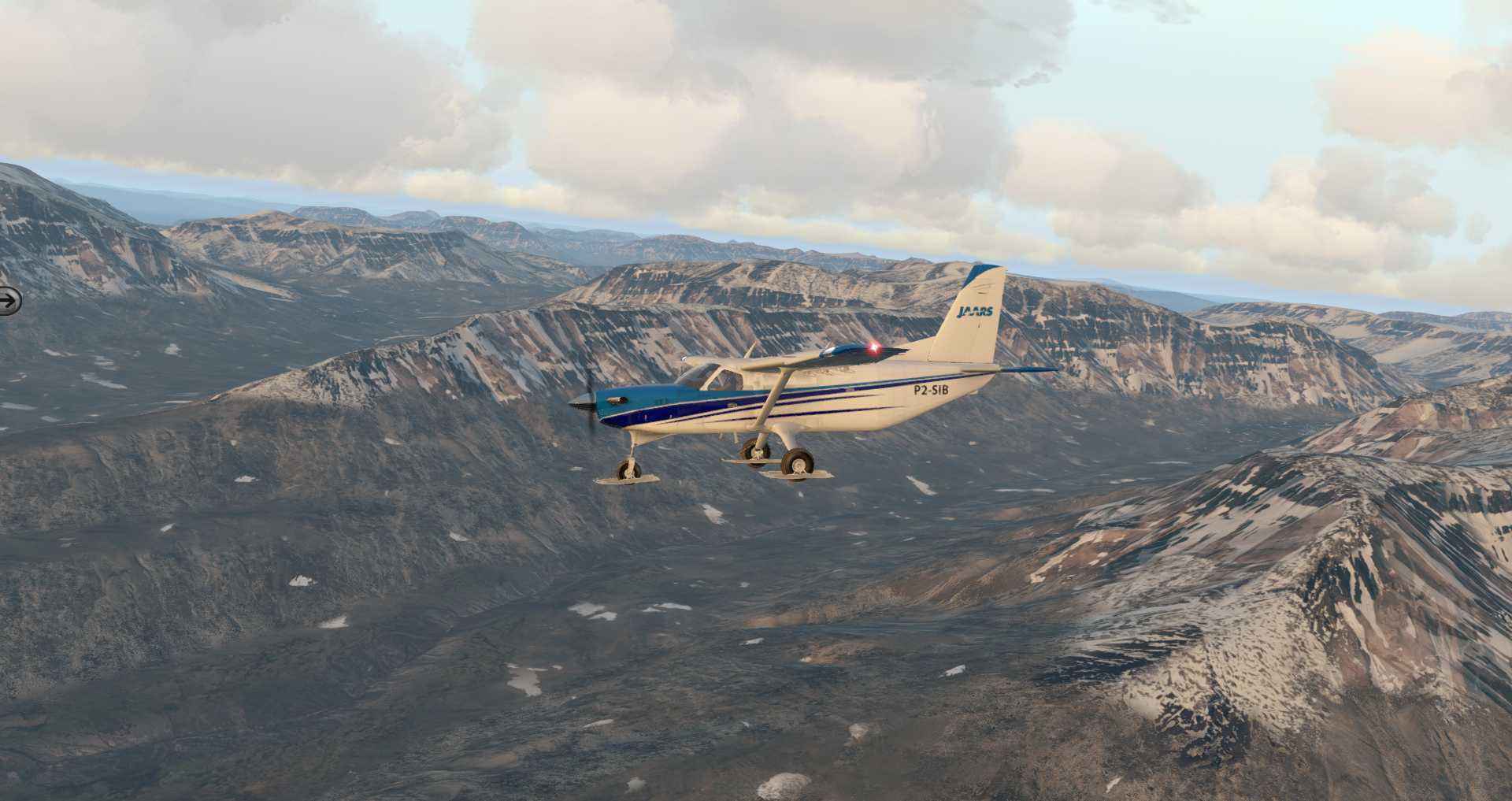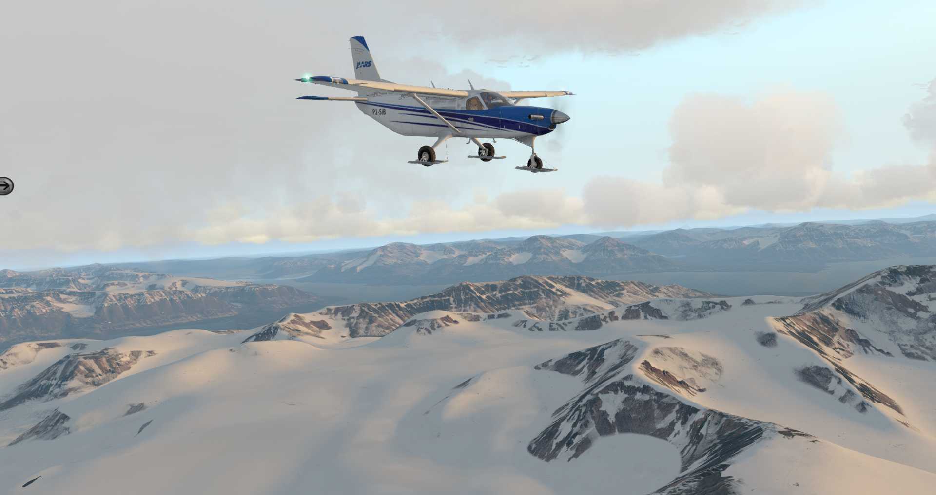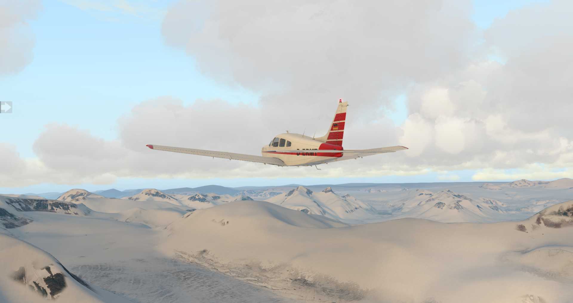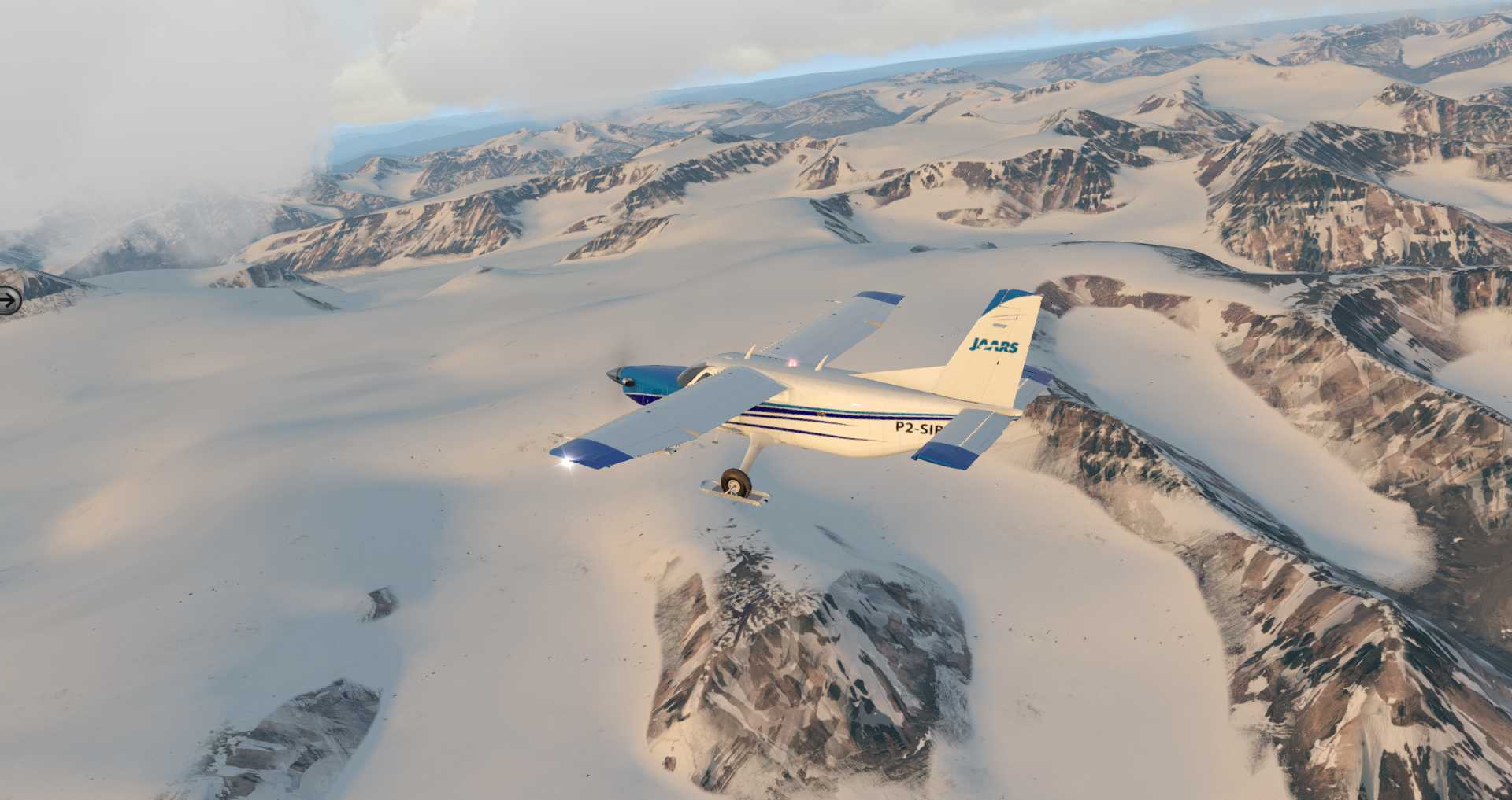 Wir starten mit einer JustFlight Turbo Arrow III in Longyear für einen Flug zu den Pyramiden.