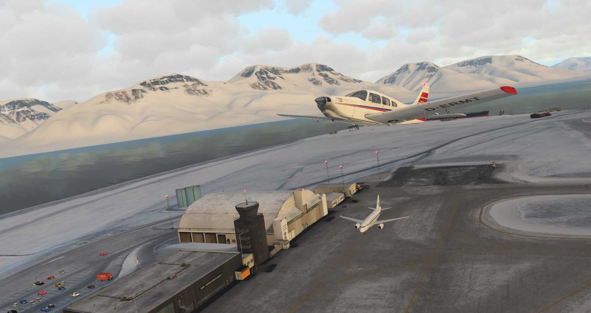 Auch wenn in dieser Szenerie eindeutig das Mesh den Ton angibt, zeigt sich auf den Flughäfen, dass auch die Flughafendesigner ihr Werk verstehen. Die einen könnten ohne die anderen nicht existieren. Ohne die Flughäfen hätte man wenig Grund über das Mesh zu fliegen. Nur gemeinsam funktionieren sie und genau das macht den Reiz dieses Archipels aus. Die kargen Landschaften, zusammen mit den Gletschern, dem Meer und den Wolken und nur hier und da ein Zeichen menschlicher Besiedlung.