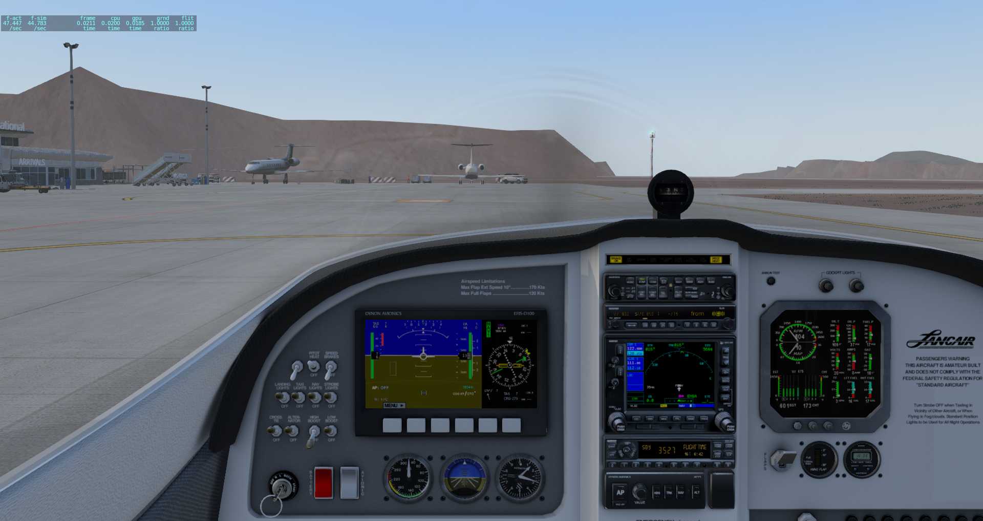 Wir nutzen für den Testflug die inzwischen zur Freeware deklarierte Aerobask Lancair Legacy. Sie wurde zwar weitestgehend an X-Plane 11 angepasst, aber der Aufwand sie auf heutiges Payware Niveau zu bringen, wäre zu hoch gewesen.