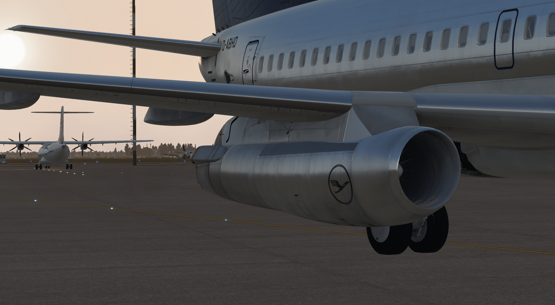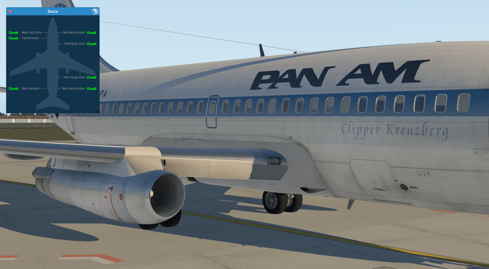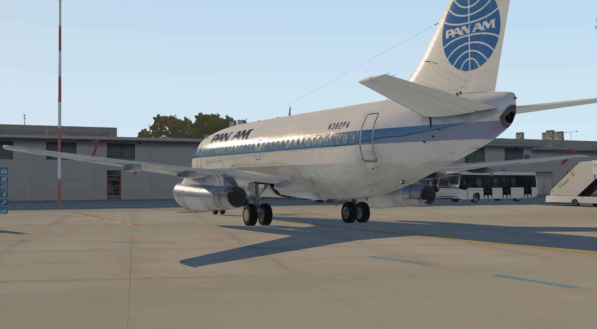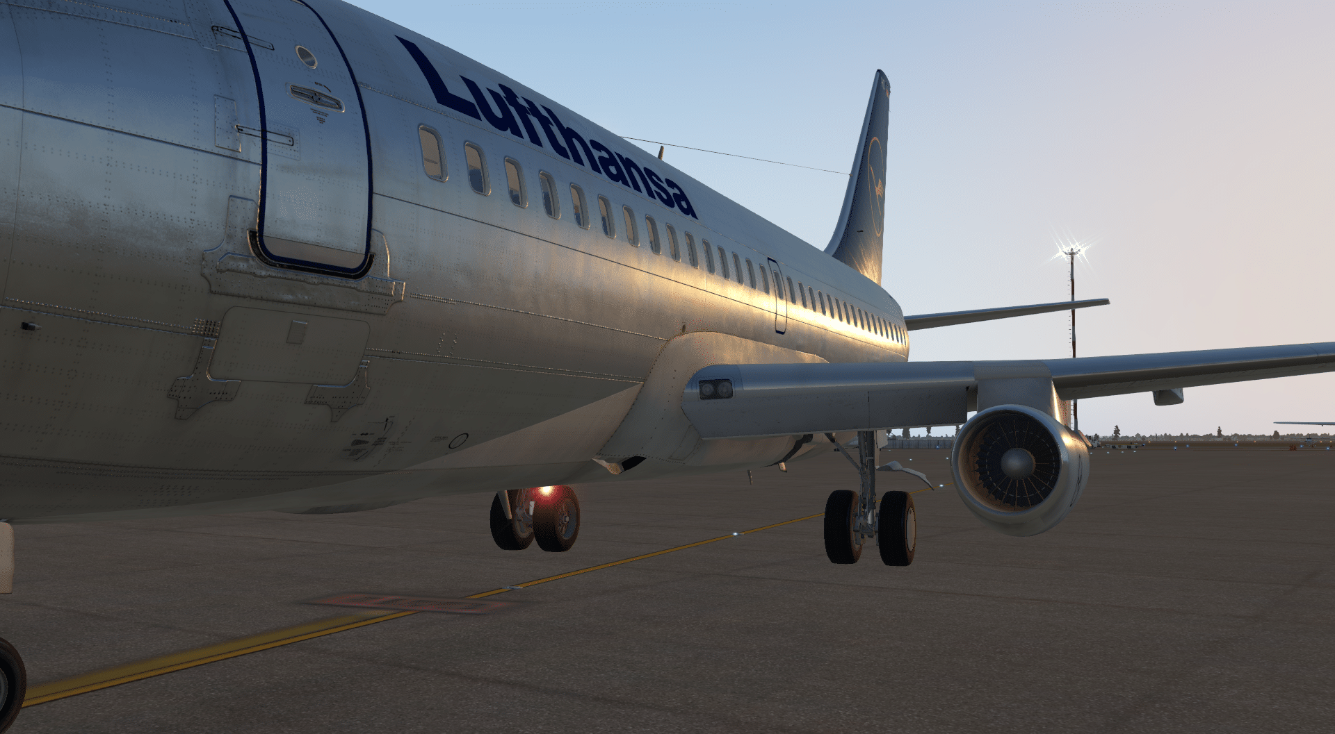 Die PBR-Texturen wirken klasse und die hohe Auflösung trägt ihren Teil dazu bei, dass man ohne Probleme einige Zeit damit zubringen kann, sich die Maschine in allen möglichen Blickwinkeln und Lichteinfällen anzusehen, insbesondere mit Lackierungen wie der von Pan Am oder der Lufthansa, die zumindest teilweise den Bare-Metal-Look haben. So überzeugend habe ich solche Liveries bisher noch nicht gesehen, großes Kino.