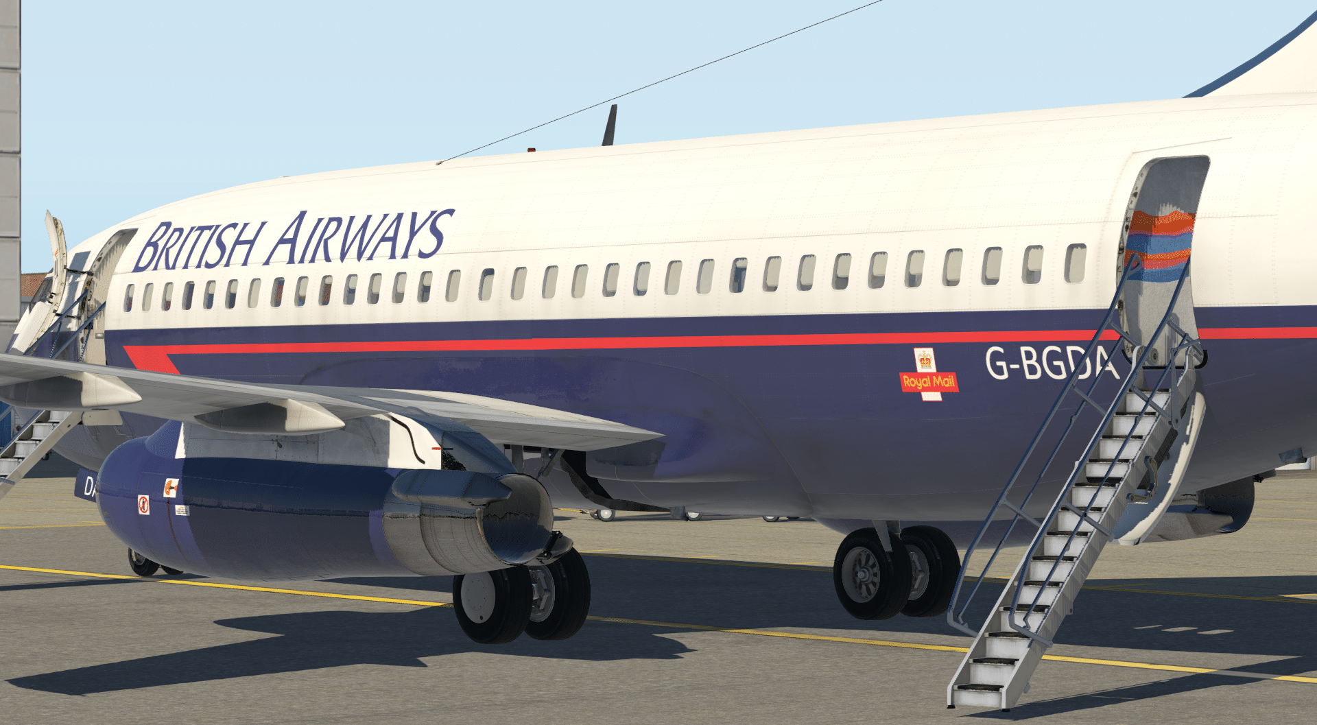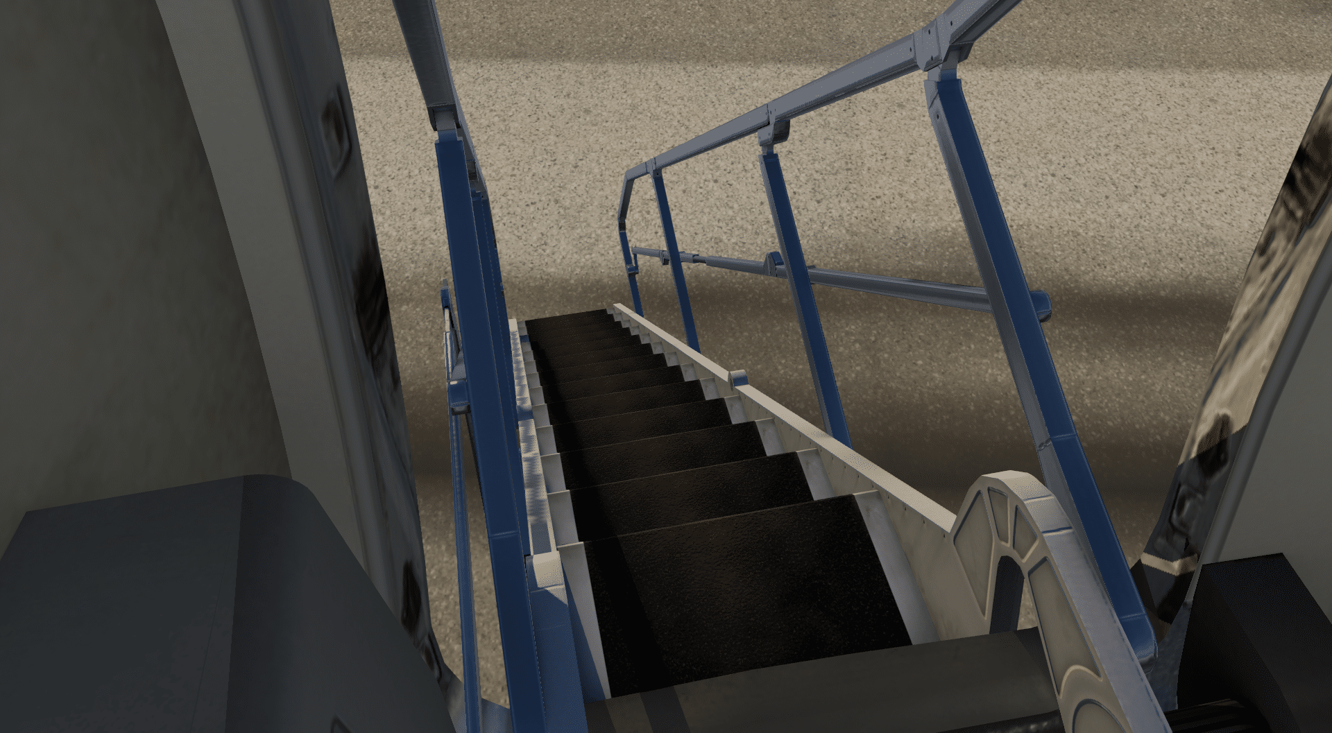Für viele sind sicherlich auch die Animationen der ausfahrbaren Passagiertreppen ein netter Anblick. Und das, obwohl diese nun nicht besonders ausgeklügelt ist. Vorn links taucht die Airstair unter der Tür auf, von wo sie herausgeschoben und schließlich aufgeklappt wird, während die Treppe an der Tür hinten links angebracht ist und beim Öffnen der Tür ausgefahren wird. Trotzdem sind es Details, die akkurat und liebevoll umgesetzt sind.