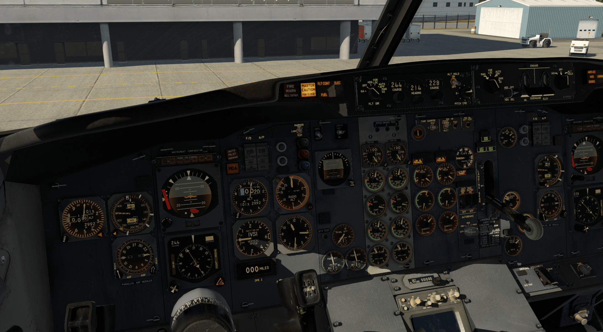 Die Königdisziplin. Und in Anbetracht der Tatsache, dass FlyJSim die 737-200 als Study-Level-Addon anpreist, sind die Erwartungen entsprechend hoch. Ich nehme es hier auch vorweg: für mich werden sie erfüllt. Das bedeutet nicht, dass man hier nichts findet, woran man – je nach persönlichem Anspruch – entsprechend etwas aussetzen könnte. Schon gar nicht ist hier jede real vorhandene Funktion umgesetzt, aber der Rotstift wurde mit Köpfchen angesetzt, man vermisst insofern grundsätzlich nichts.