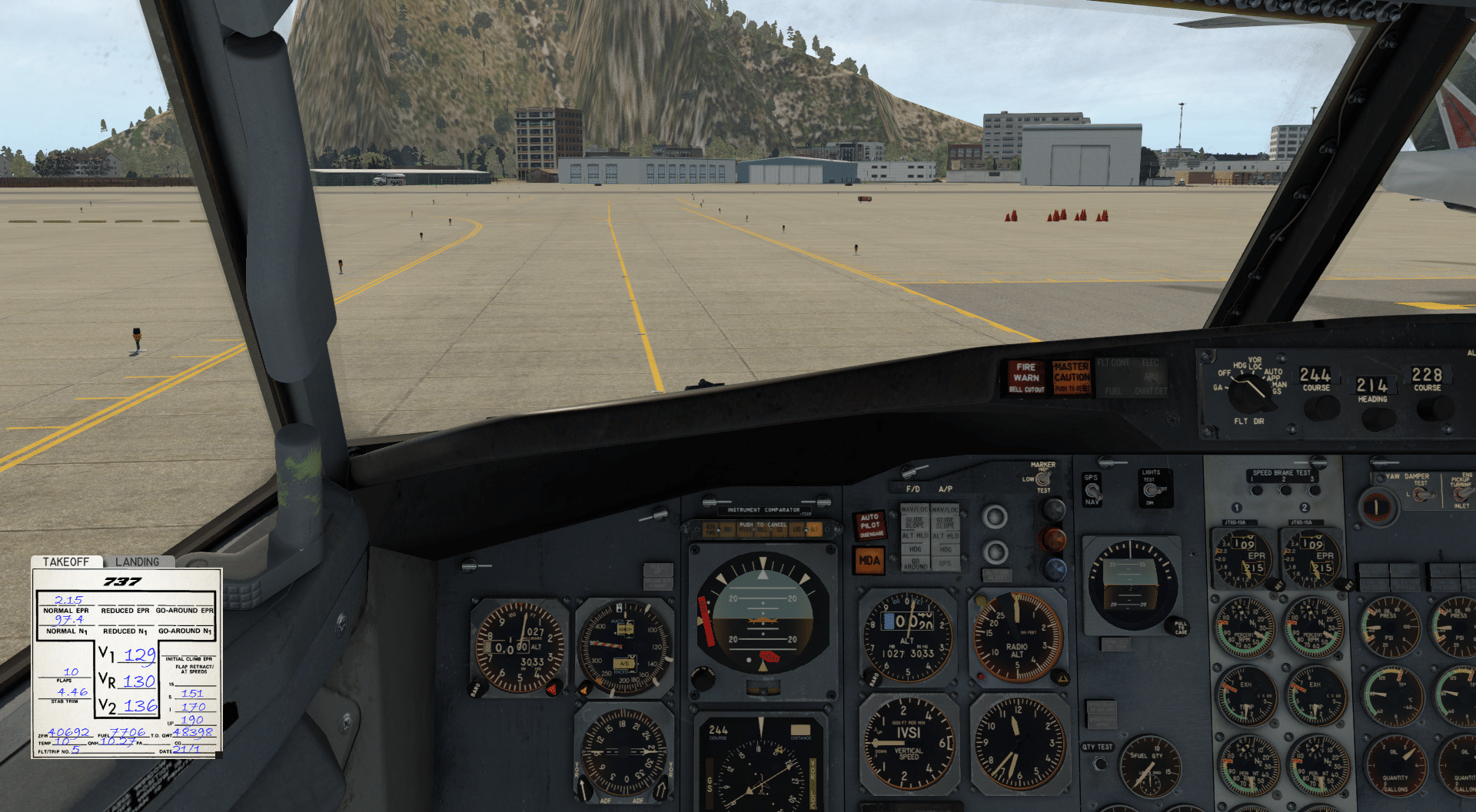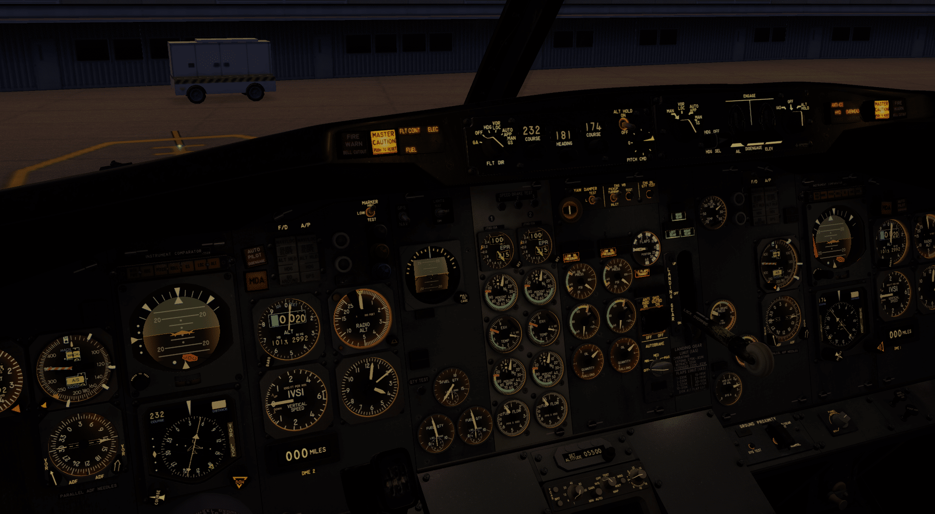 Ich fahre das Flugzeug hoch und richte alles für einen kleinen Flug ein. Navigatorisch ein herrlich rudimentärer Airliner, kein Inertial Reference System, das sich erst einige Minuten ausrichten lassen muss, kein FMC, das man aufwendig programmieren muss, was einem aber so viele Dinge abnimmt, um die man sich hier spätestens im Verlaufe des Fluges kümmern muss. Aber nun, vielen macht genau das Spaß – mich eingeschlossen.