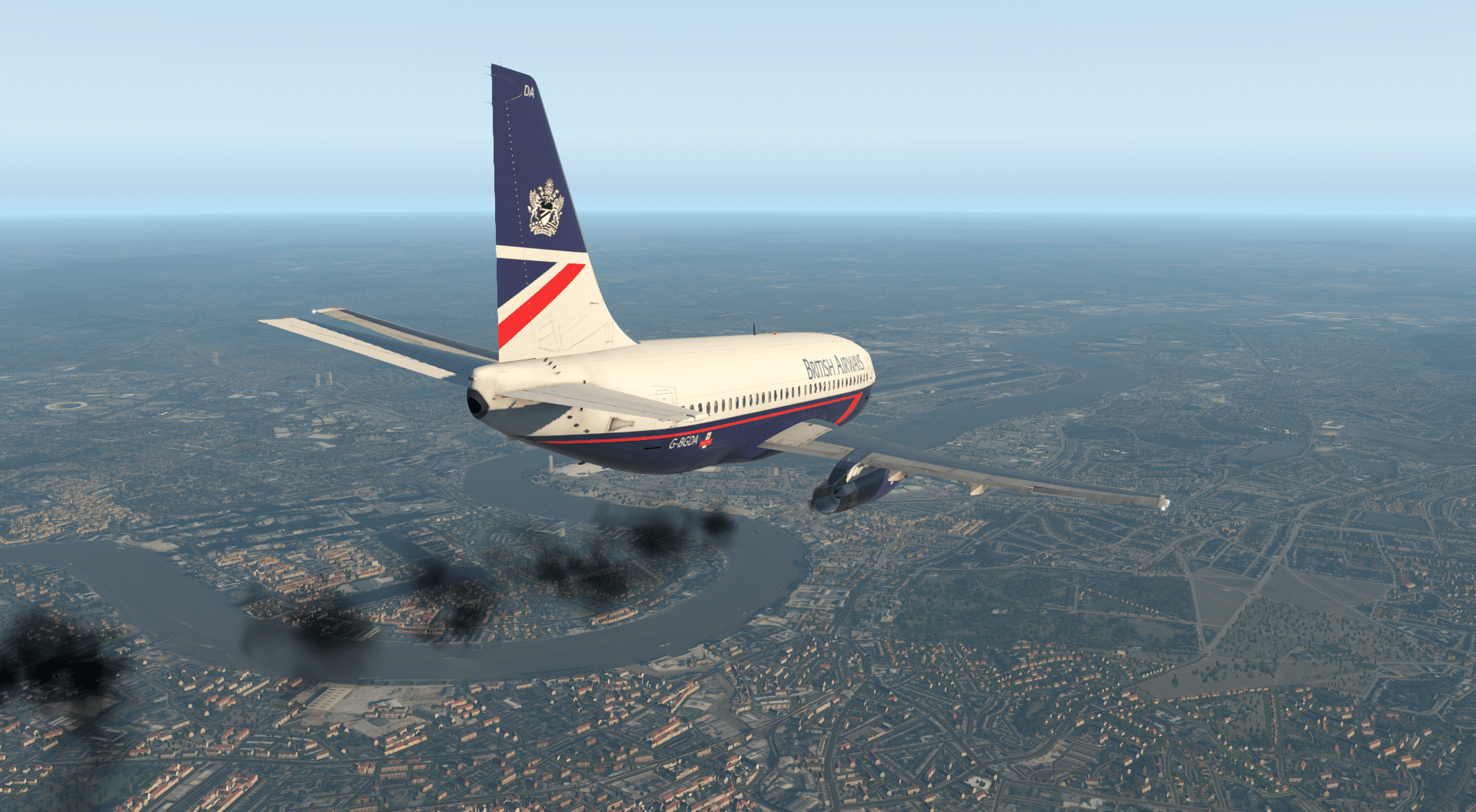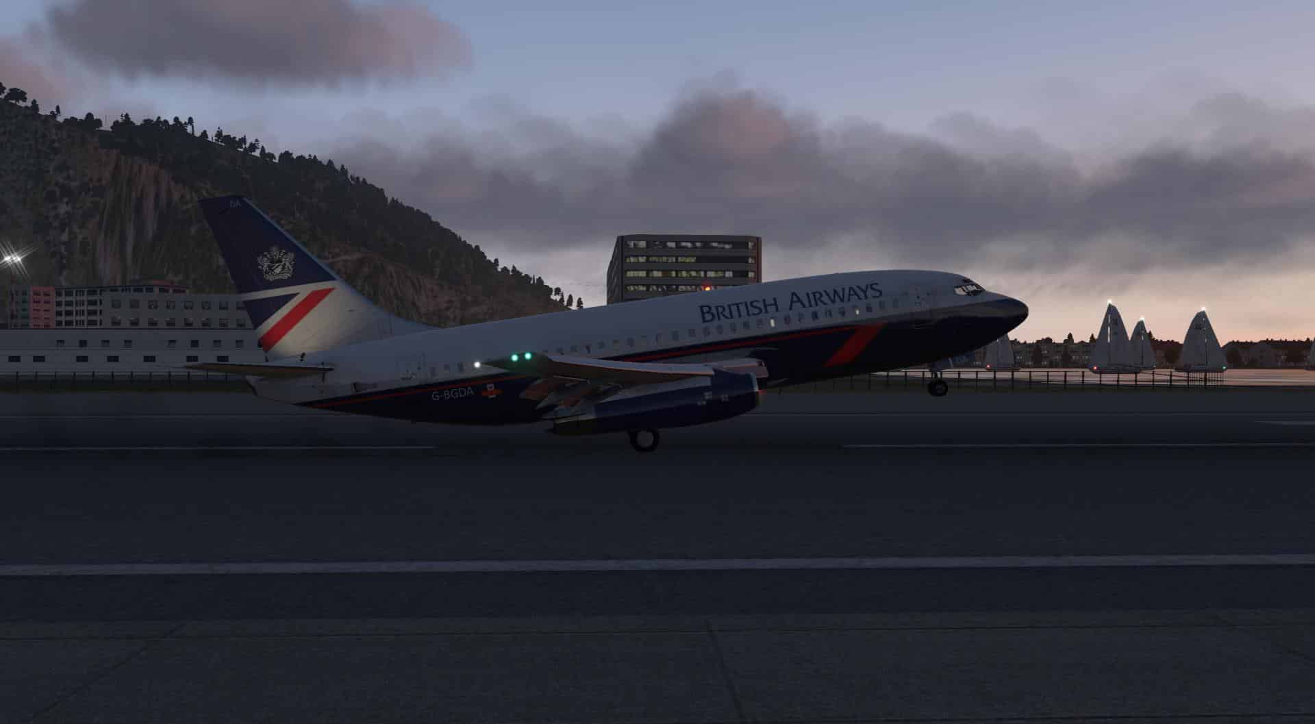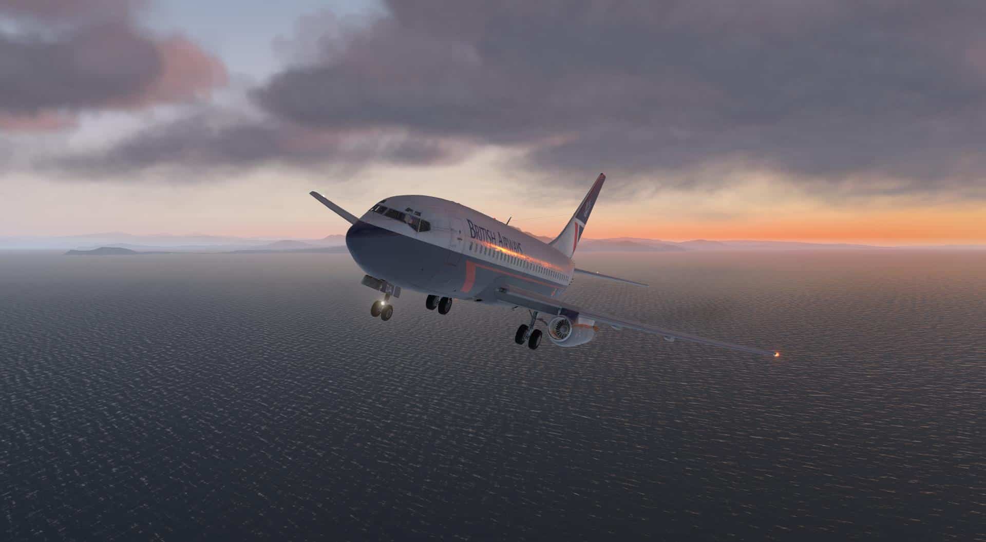 Also wieder ein wenig beschleunigen, um den AoA zu reduzieren und nun setze ich den Gegenanflug fort, bevor ich auf den Queranflug drehe. Ich fange an, Klappen zu fahren, das Fahrwerk auszufahren und drehe schließlich auf den Endanflug. Und auch hier: die 737-200 lässt sich mehr als angenehm handhaben und austrimmen. Ähnlich wie andere 737-Umsetzungen, ist bei der Landung nur ein sehr schwaches Anheben der Nase fürs Ausschweben erforderlich, ansonsten findet man sich sehr schnell wieder, wie man über die Piste floatet und damit wertvollen Asphalt verschenkt.