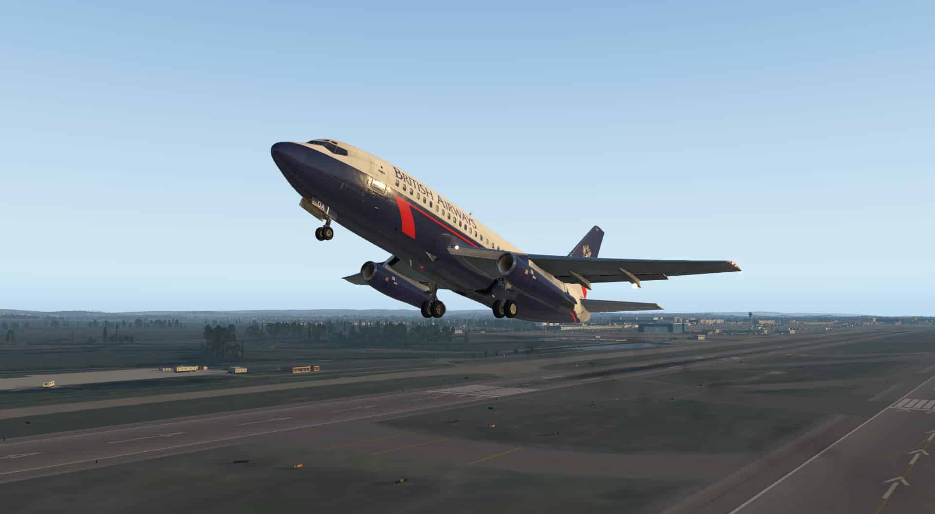 An der Startbahn angekommen, stelle ich sicher, dass das Flugzeug für den Start konfiguriert ist, die gewünschten Frequenzen eingedreht sind und mache mich an den Startlauf. Das ist der Zeitpunkt, wo der wunderbare Sound durchkommt, sowohl im Cockpit als auch von außen – die beiden markanten JT8D-Triebwerke machen richtig Spaß, trotz der eher mäßigen Leistung für das bis zu 52.390 kg hohe Startgewicht. Aber so war es damals eben.