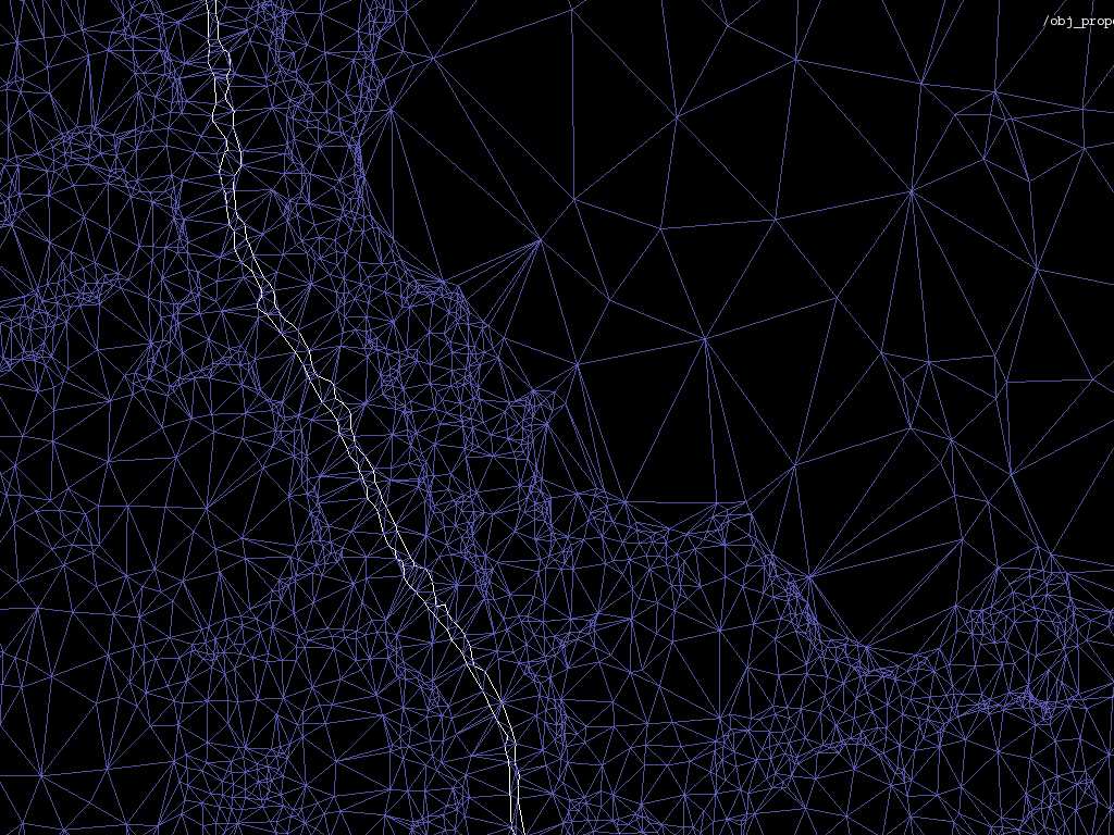 Dies hat eine Reihe von Vorteilen. Im flachen Land kommt die Szenerie mit weit weniger Daten aus., doch wenn es interessanter wird, kann man die Auflösung deutlich erhöhen. Damit kann die Spitze eines Berges wirklich da sitzen, wo die Spitze des Berges in der Realität sitzt. Beim regulären Mesh hat man keine Wahl. Die Spitze eines Berges muß auf einem festen Fußpunkt sitzen.