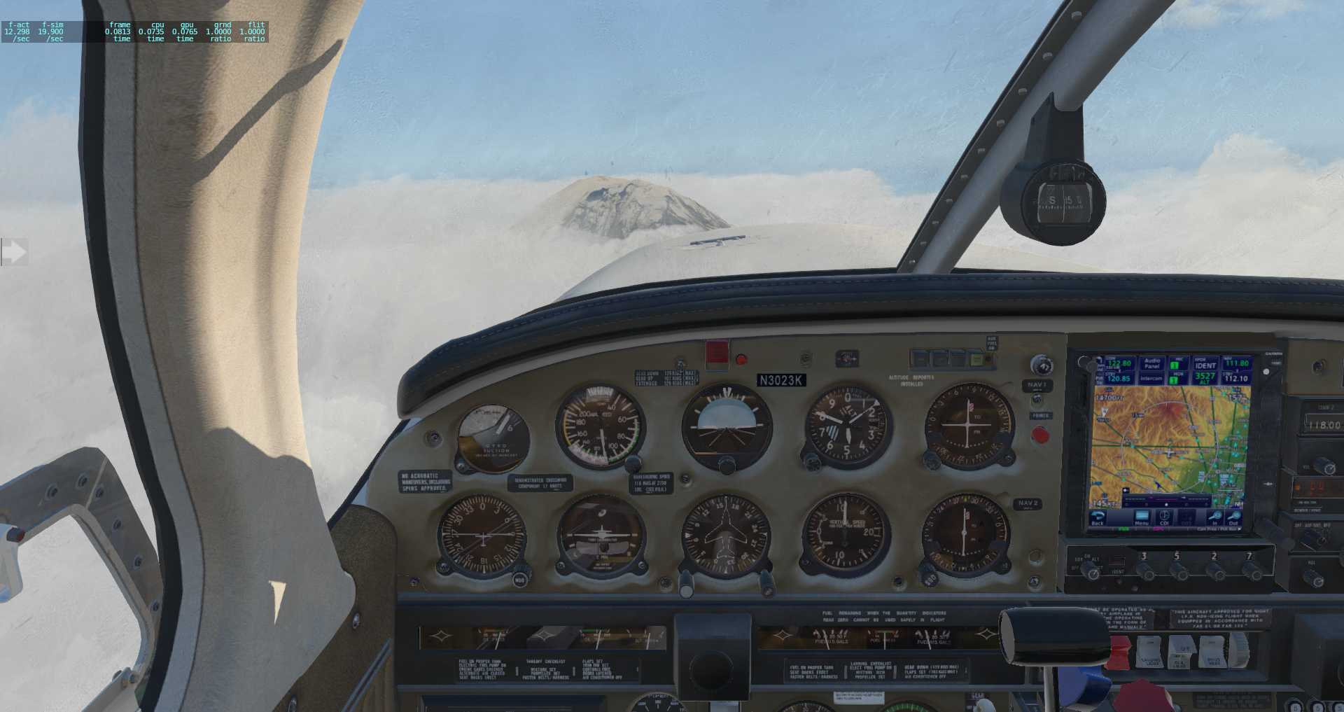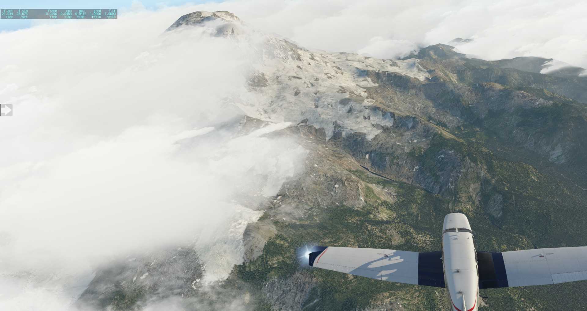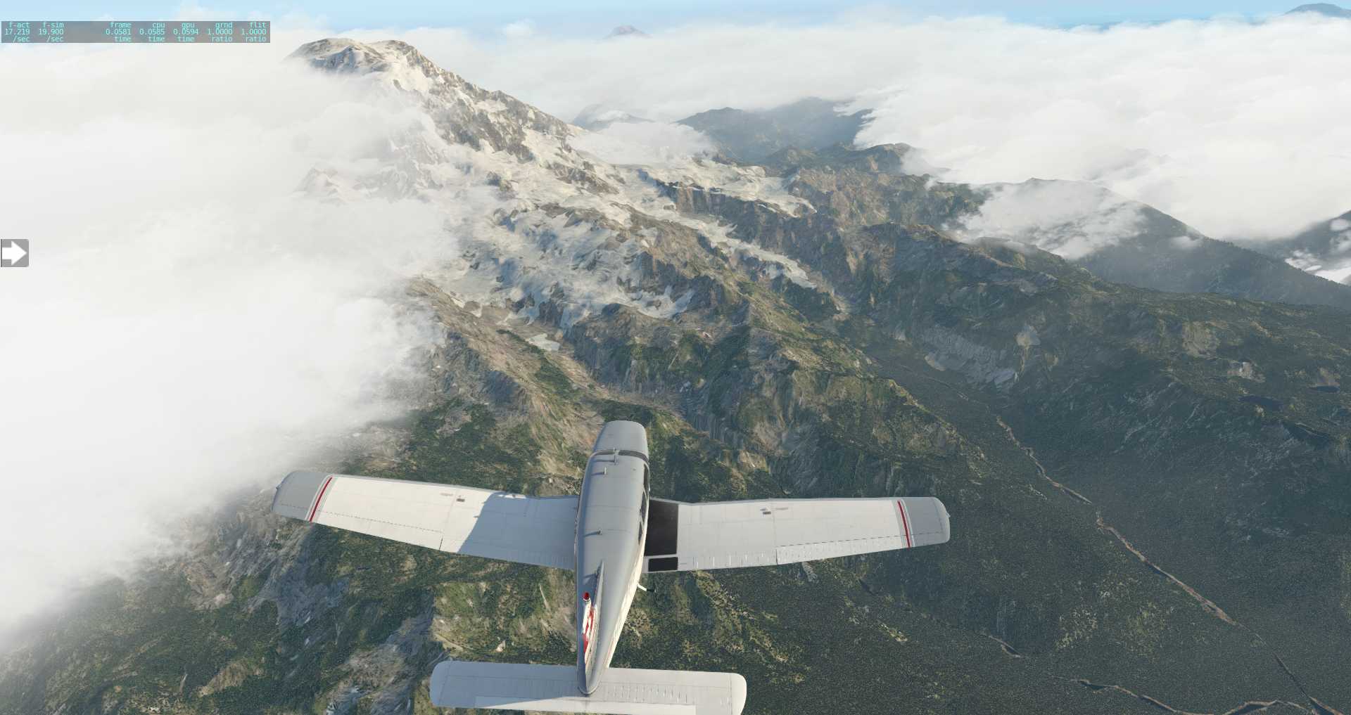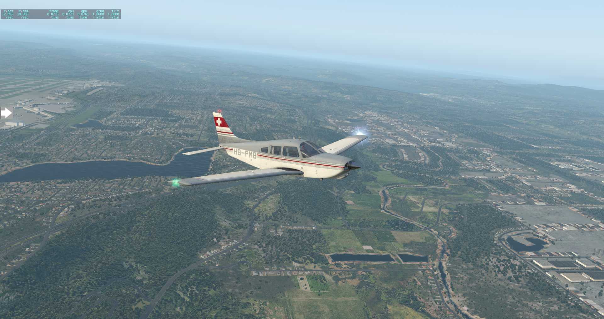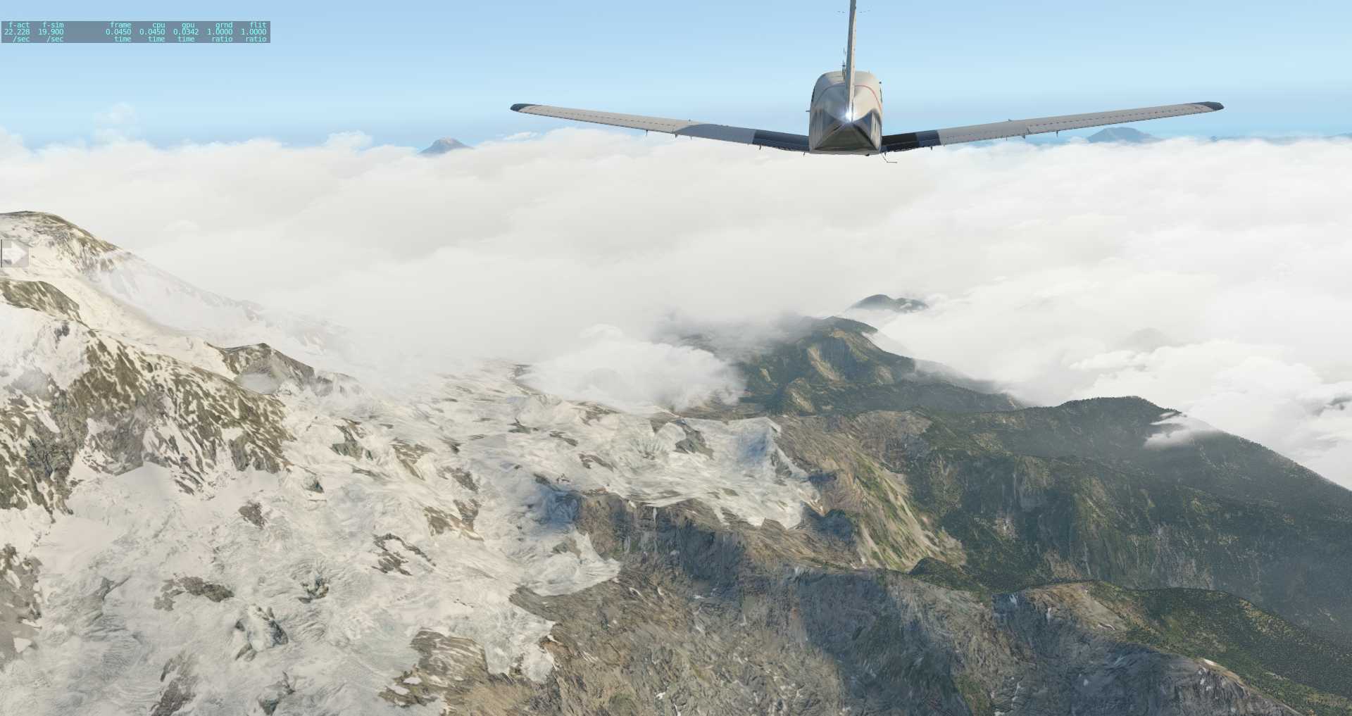 Wir starten jeweils vom Default-Flughafen Seattle International (KSEA) mit einer JustFlight Turbo Arrow und fliegen zum Mount Rainier. Dabei picken wir uns 3 spezielle Stellen heraus, wo wir die Szenerien miteinander vergleichen.
