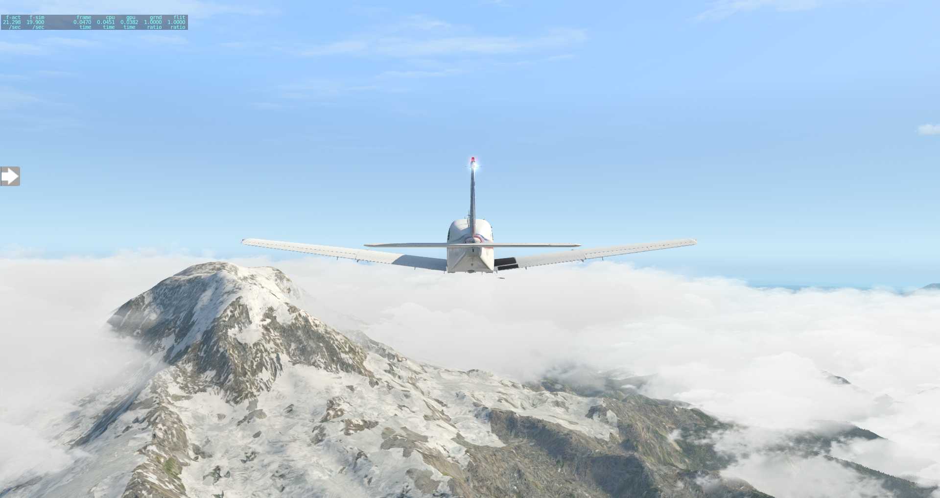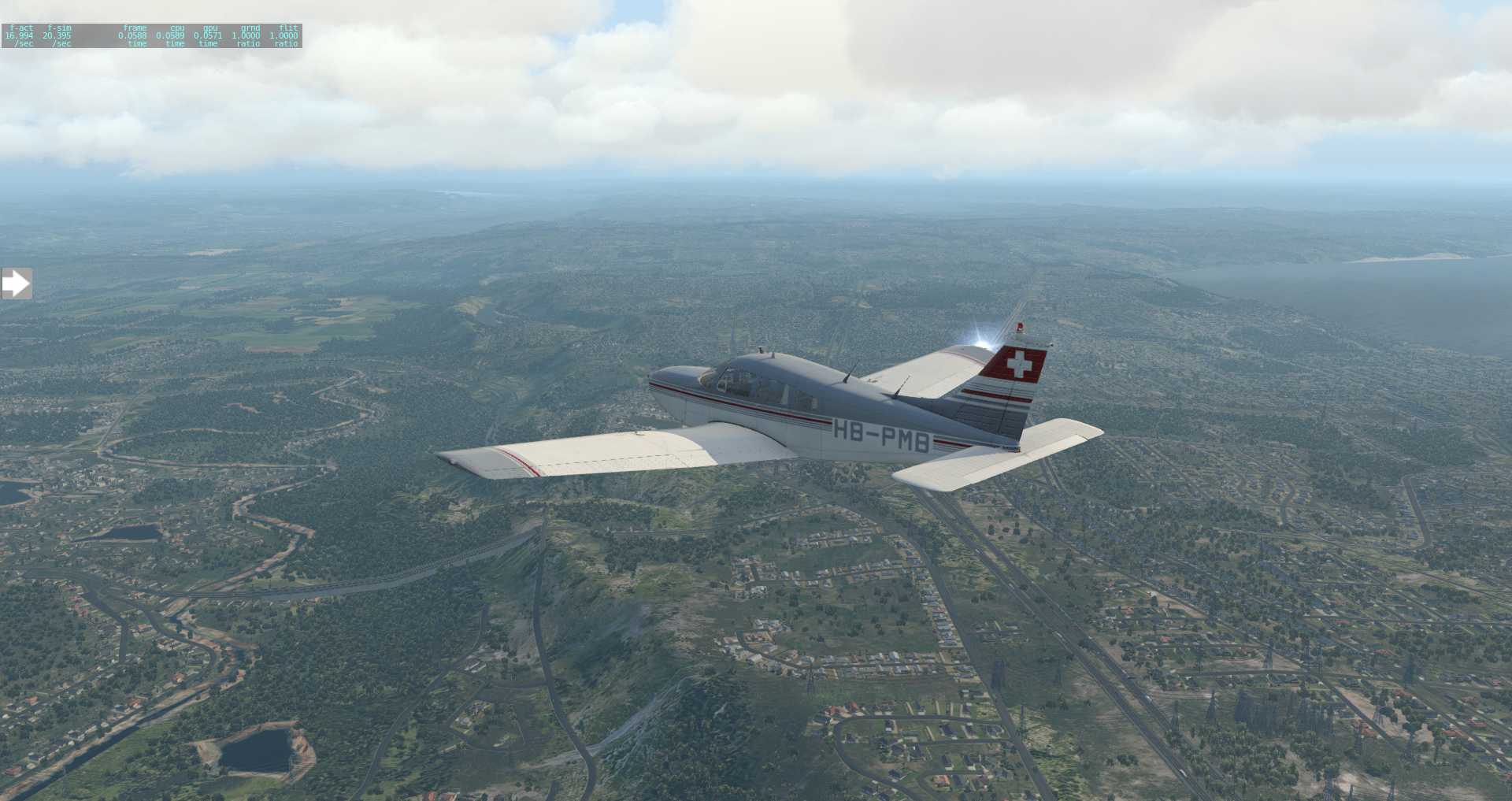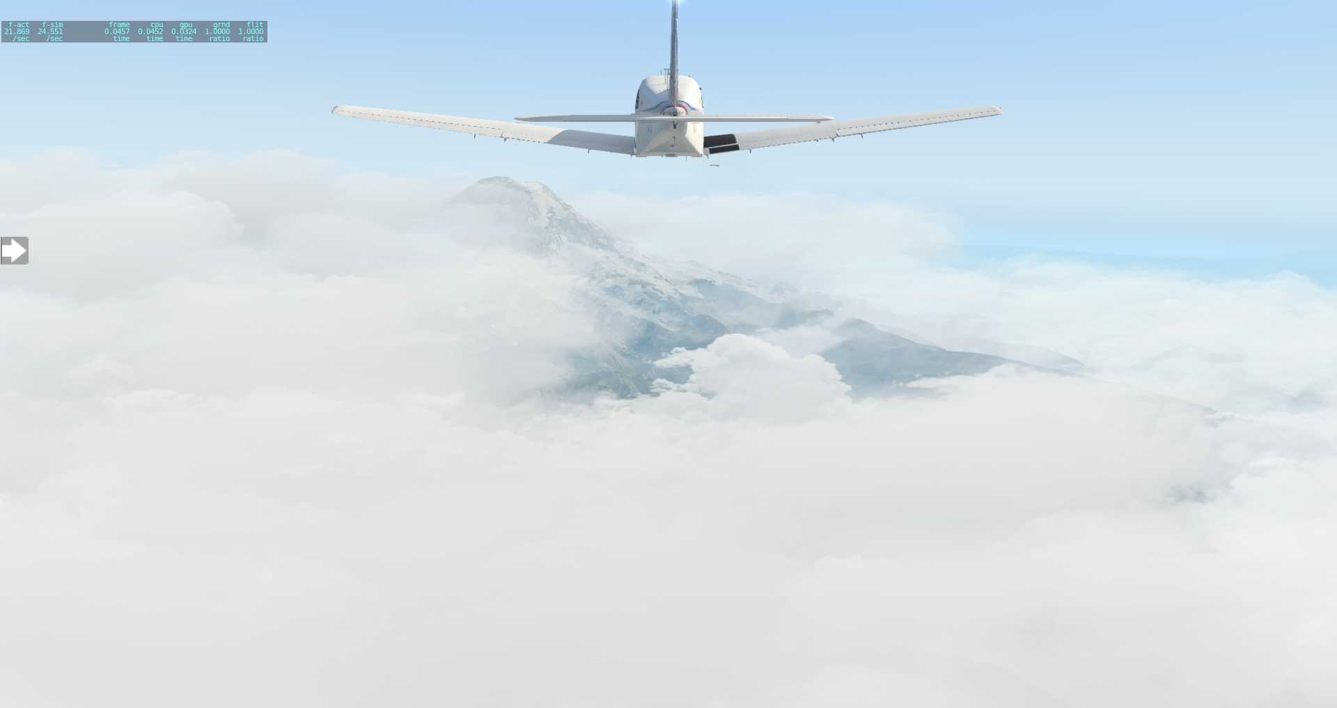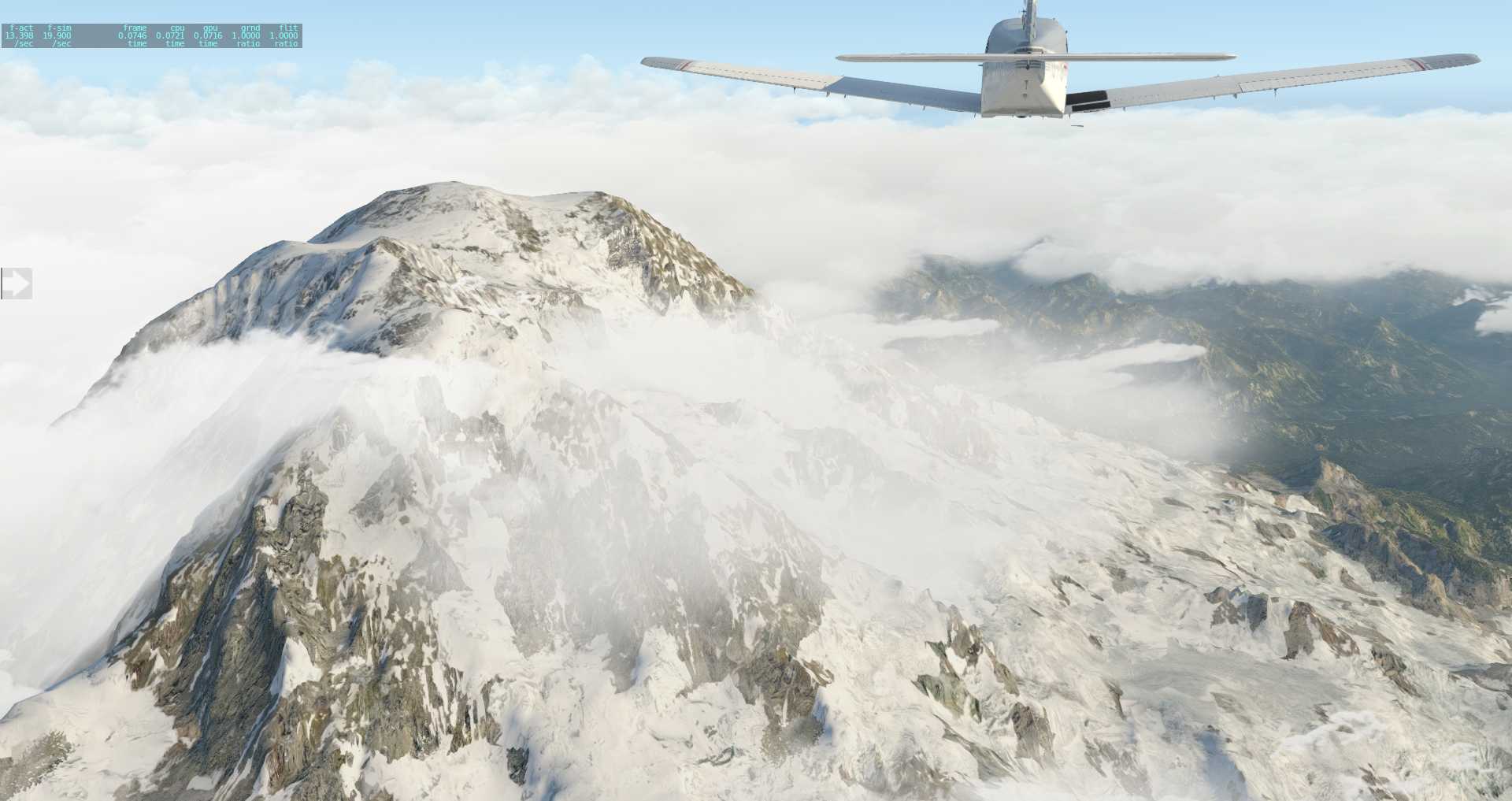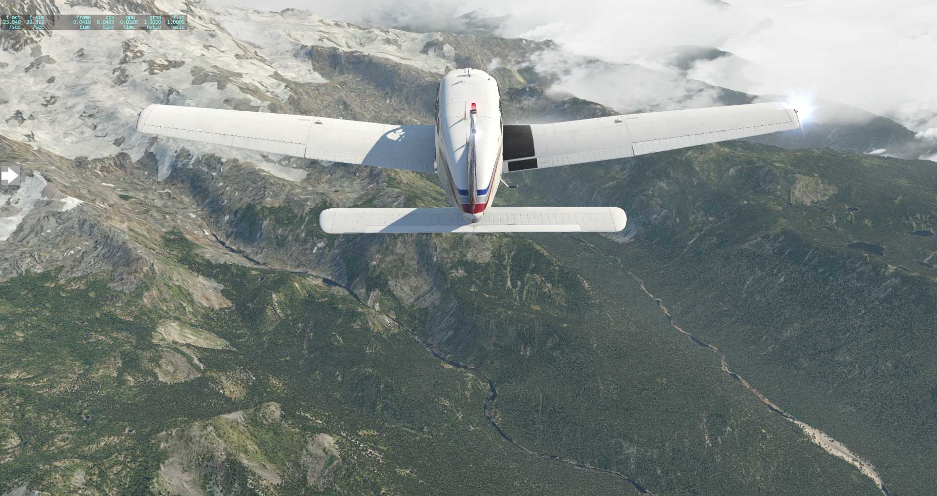 Wir starten jeweils vom Default-Flughafen Seattle International (KSEA) mit einer JustFlight Turbo Arrow und fliegen zum Mount Rainier. Dabei picken wir uns 3 spezielle Stellen heraus, wo wir die Szenerien miteinander vergleichen.