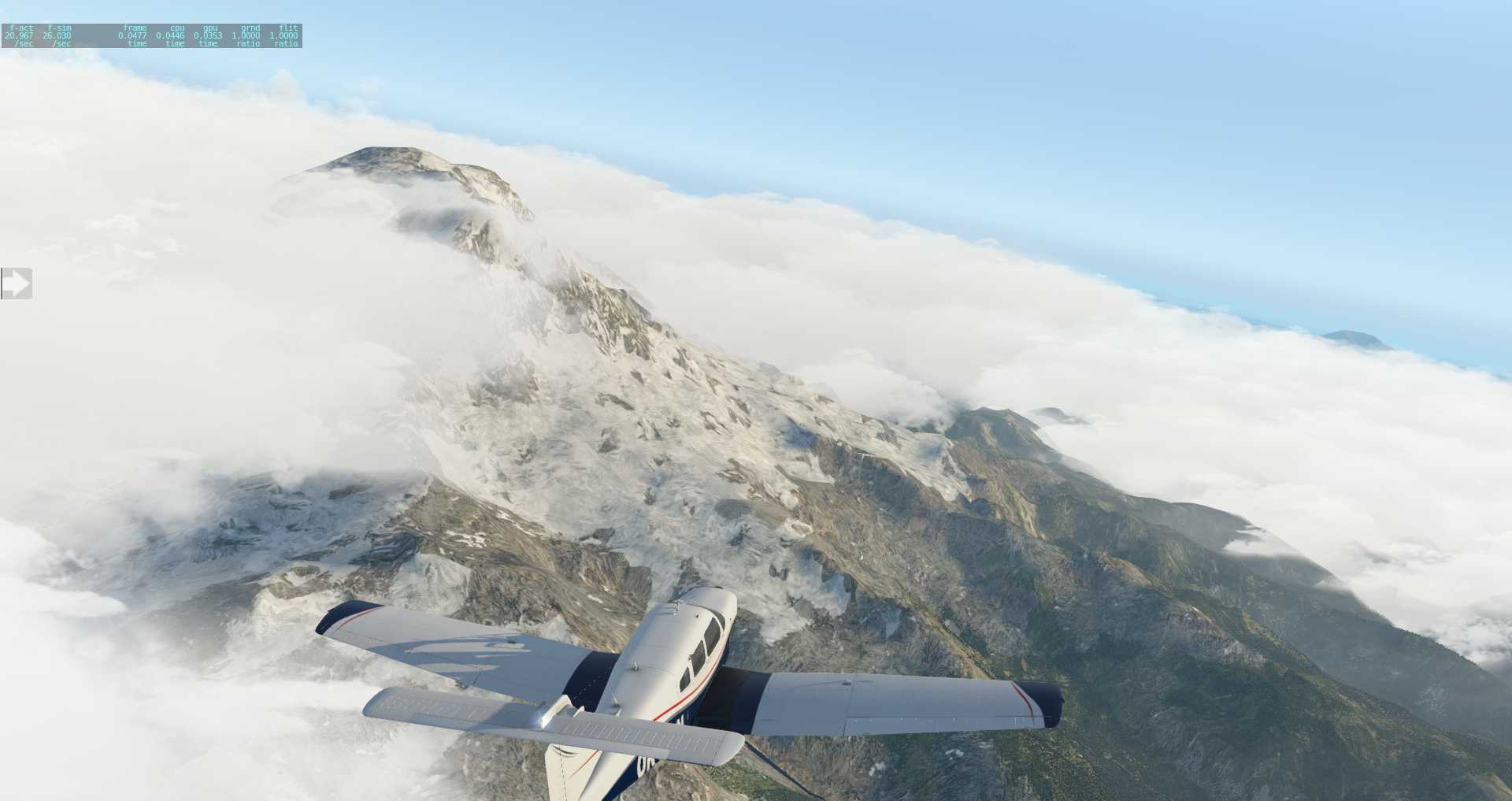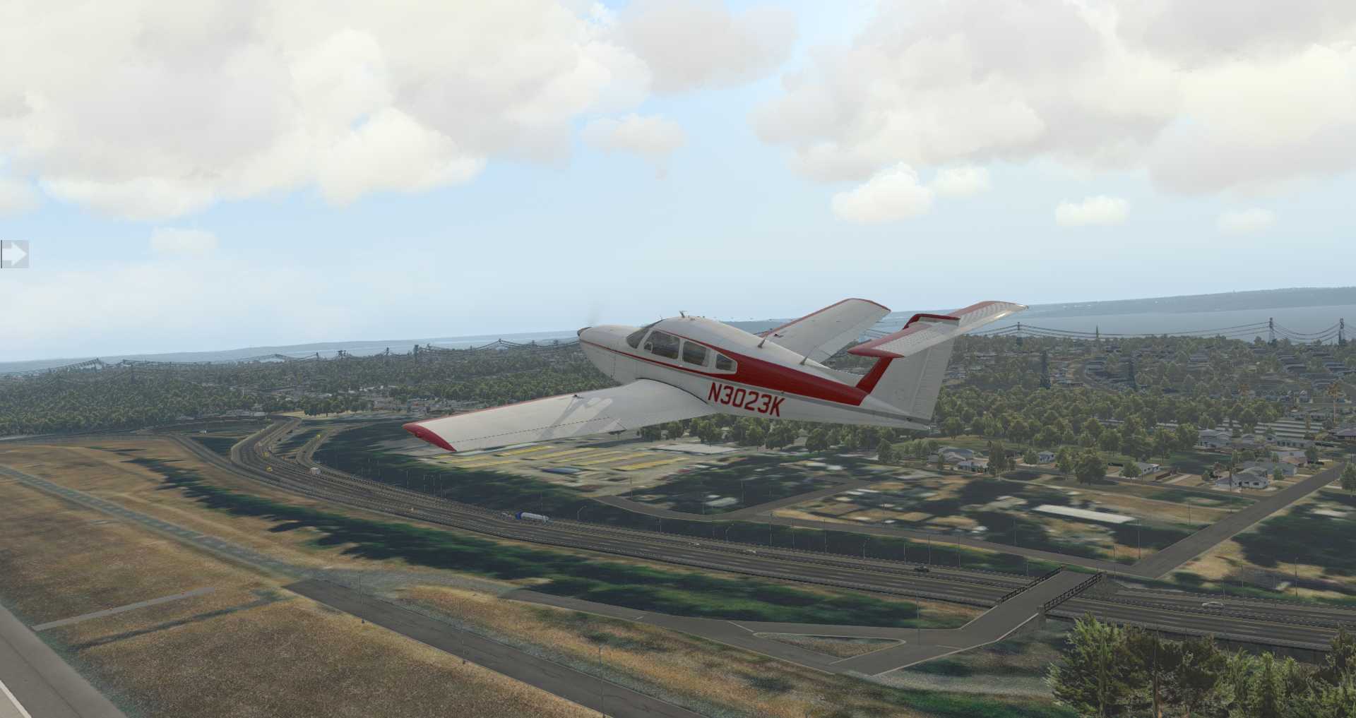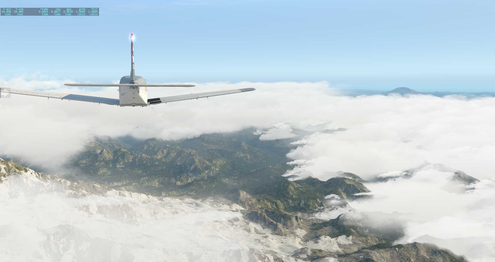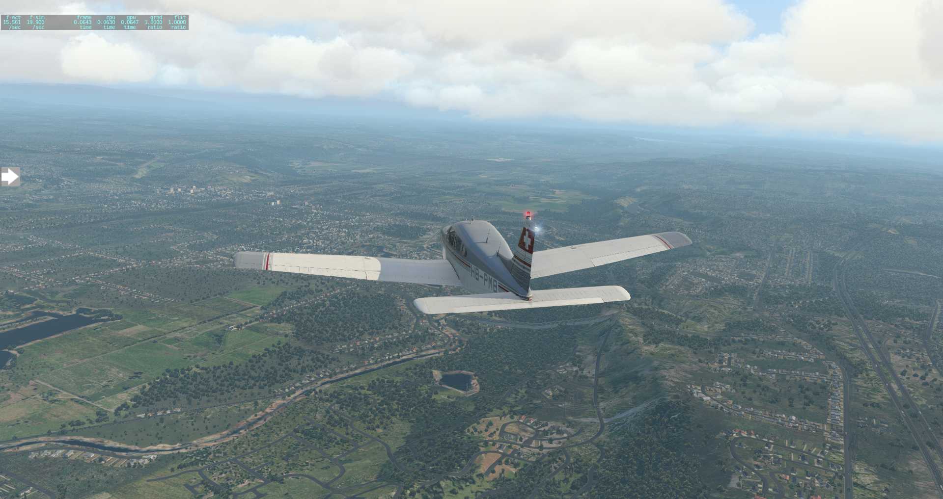 Wir starten jeweils vom Default-Flughafen Seattle International (KSEA) mit einer JustFlight Turbo Arrow und fliegen zum Mount Rainier. Dabei picken wir uns 3 spezielle Stellen heraus, wo wir die Szenerien miteinander vergleichen.